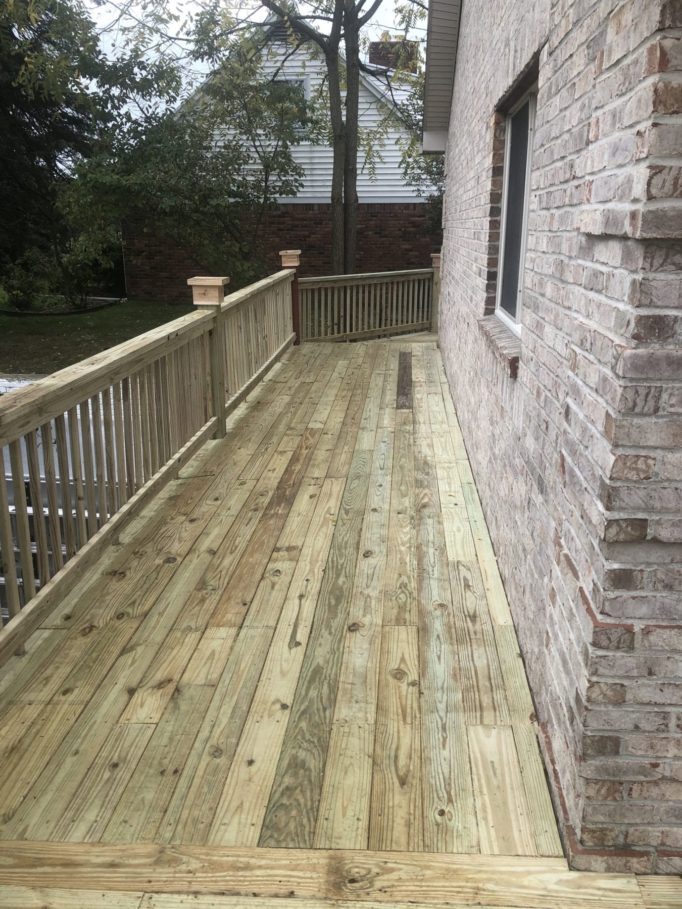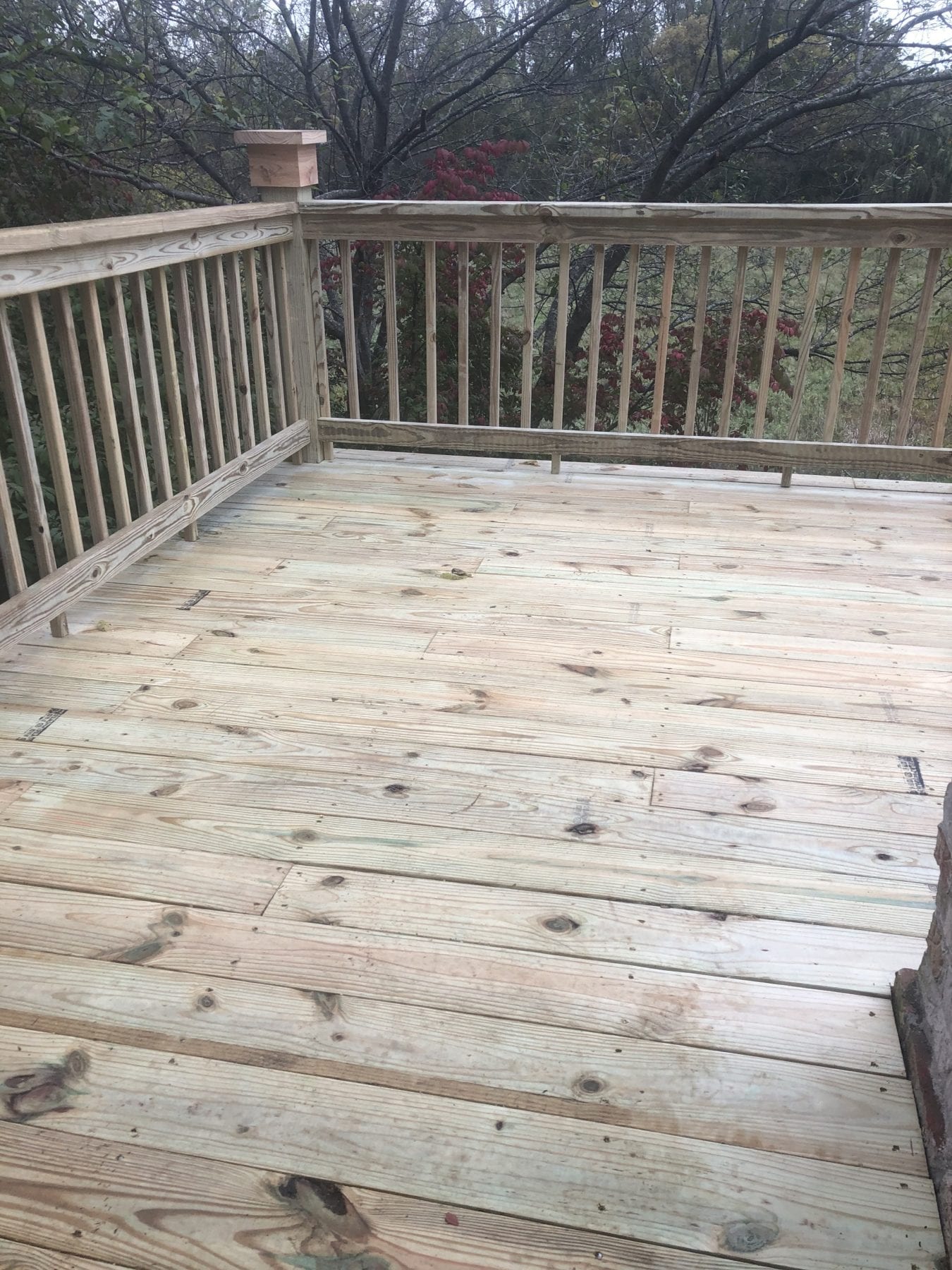 Talk about an undertaking! Our client’s 2nd floor deck wrapped the home and provided an amazing view of wild life, while also providing a quiet place place to relax and soak in the serenity of the surrounds. One problem though – time had taken its toll on this structure. When going over the scope of the project, we had to make sure we walked on the joists to ensure that we wouldn’t fall through the rotten boards. To add to the headache, a few of the 20 foot tall 8×8 structural posts where rotting off in the ground and needed to be replaced. Quite a project, but we were up for the task!
