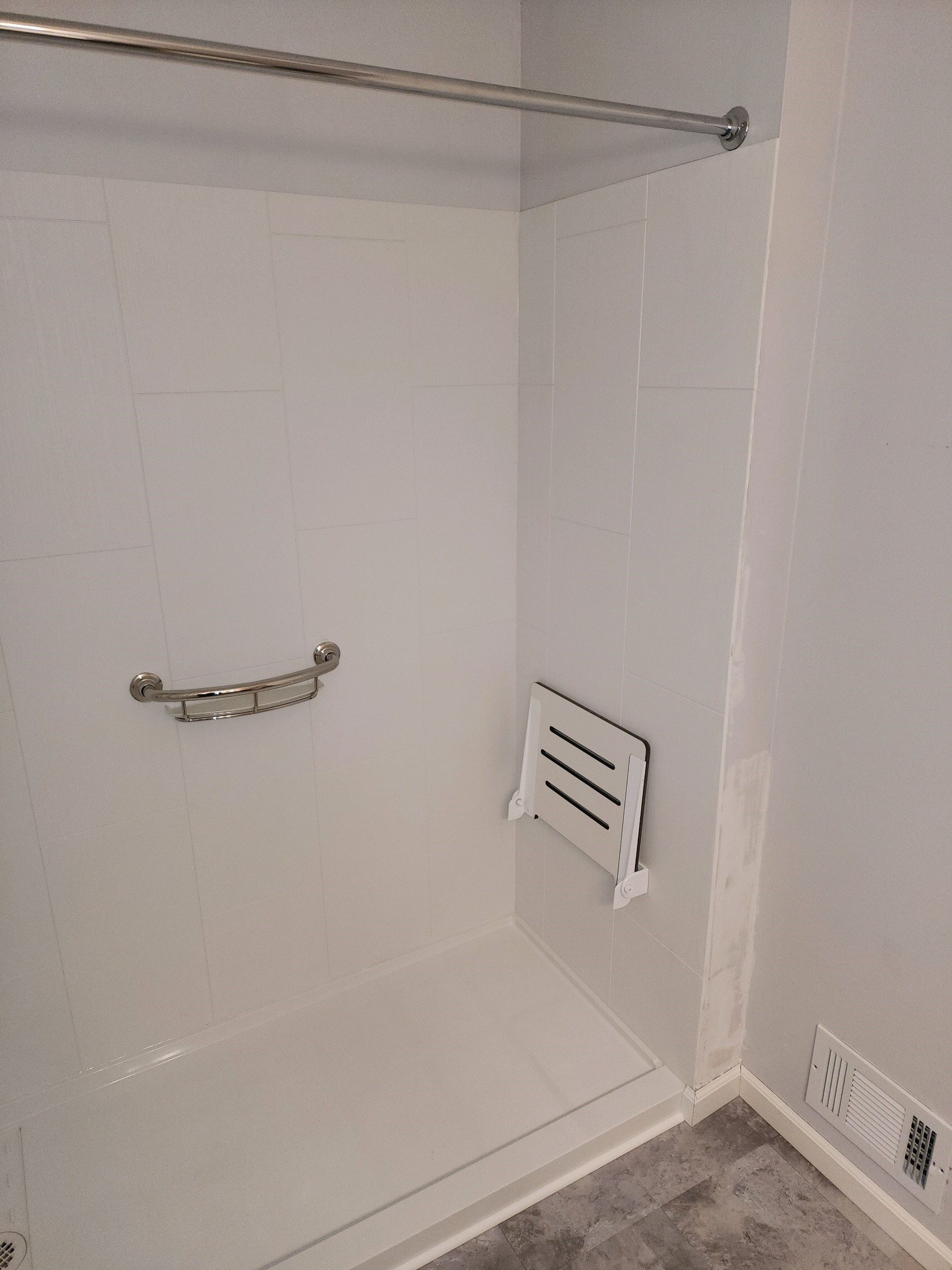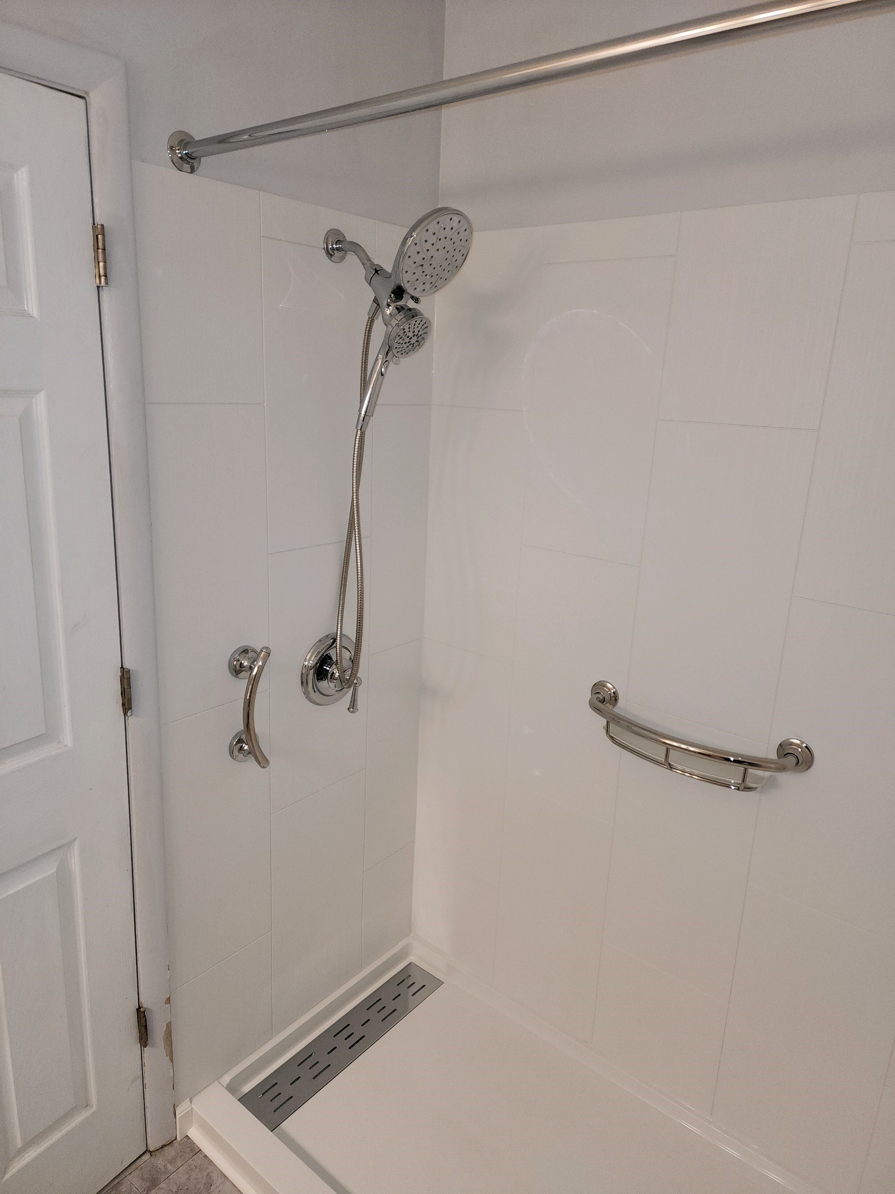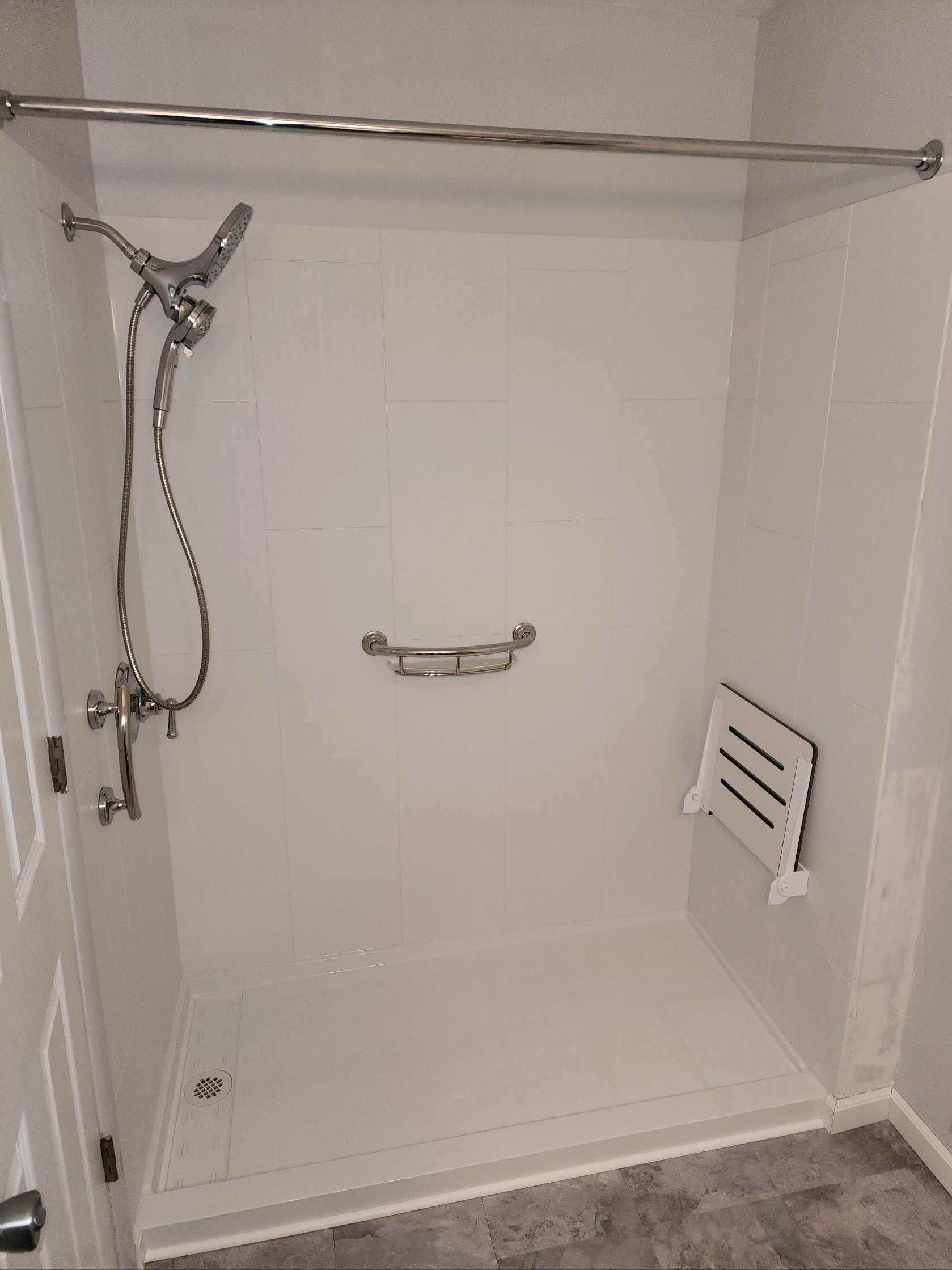Awesome difference! We hit the mark and thrilled our client with a safe space to shower. Our crew also provided prompt, courteous service that put our client at ease. What obstacles do you wish to overcome? Tell us what you need! A+ Home Improvements loves to help our clients age-in-place with renovations like this. Quality of life remains paramount, and we strive to provide this for home owners. Give us a call to get your project started today. We want to help out!