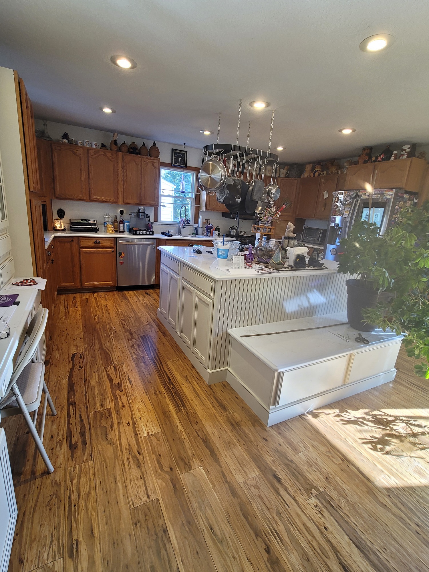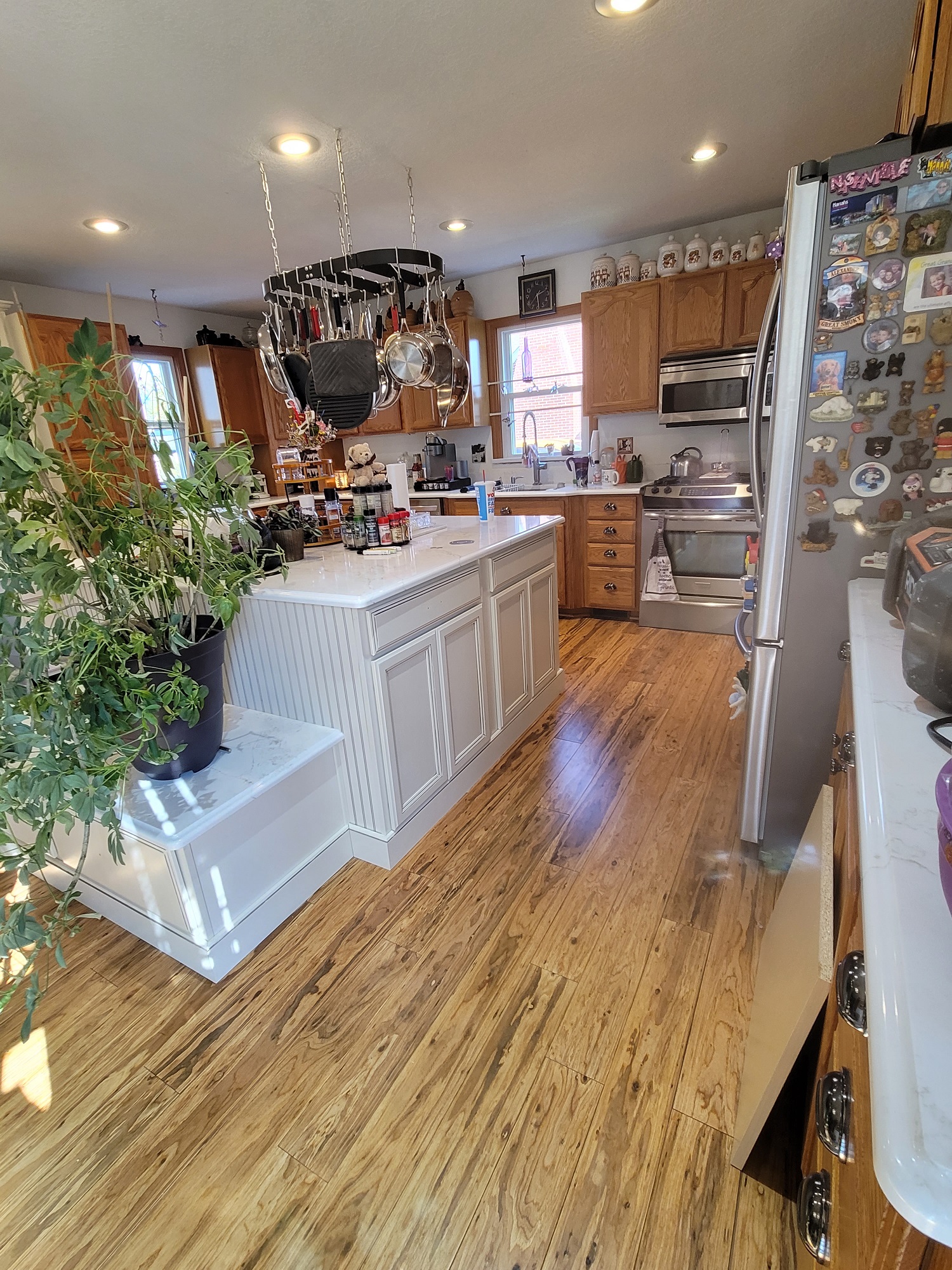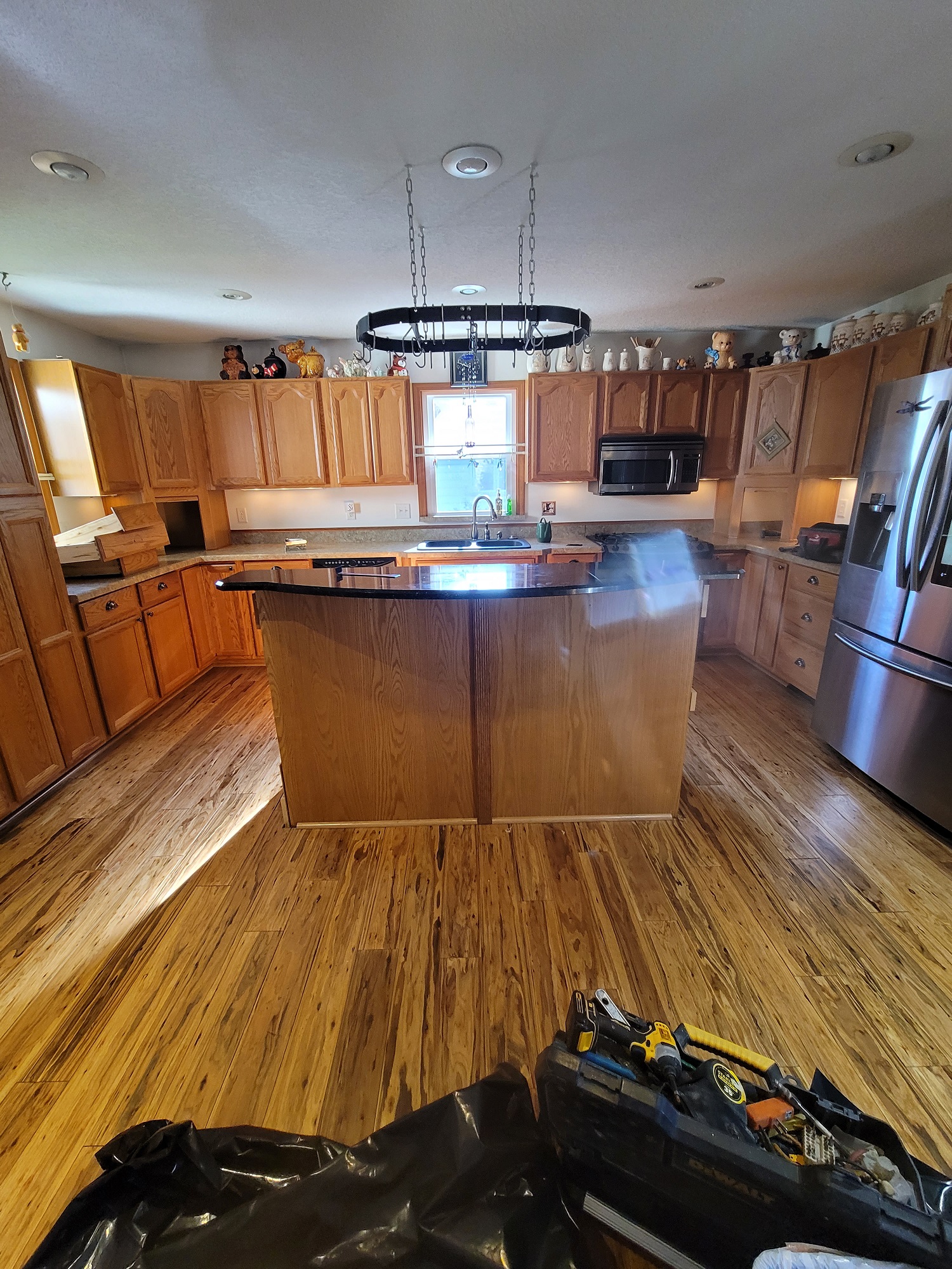 Here we go again! Your kitchen presents an opportunity to express your style and flair. The layout of your kitchen often determines what applications will work, but you can typically achieve your look with a little creativity. Keep in mind that a total reconfiguration is not always needed. Sometimes you just need to change the layout to create a new space. Our client enjoyed the general layout of their kitchen, but wanted to add an island to the kitchen.