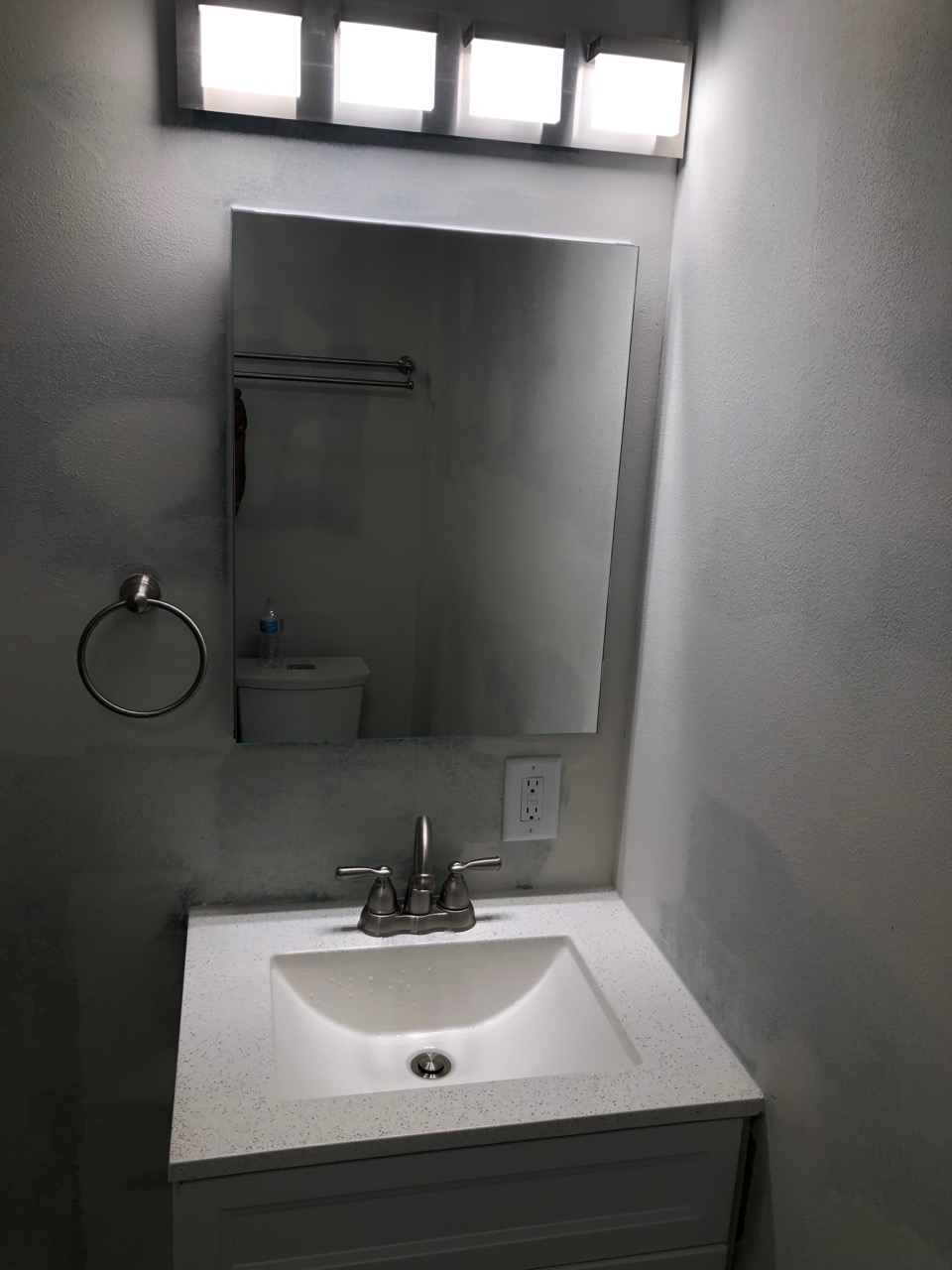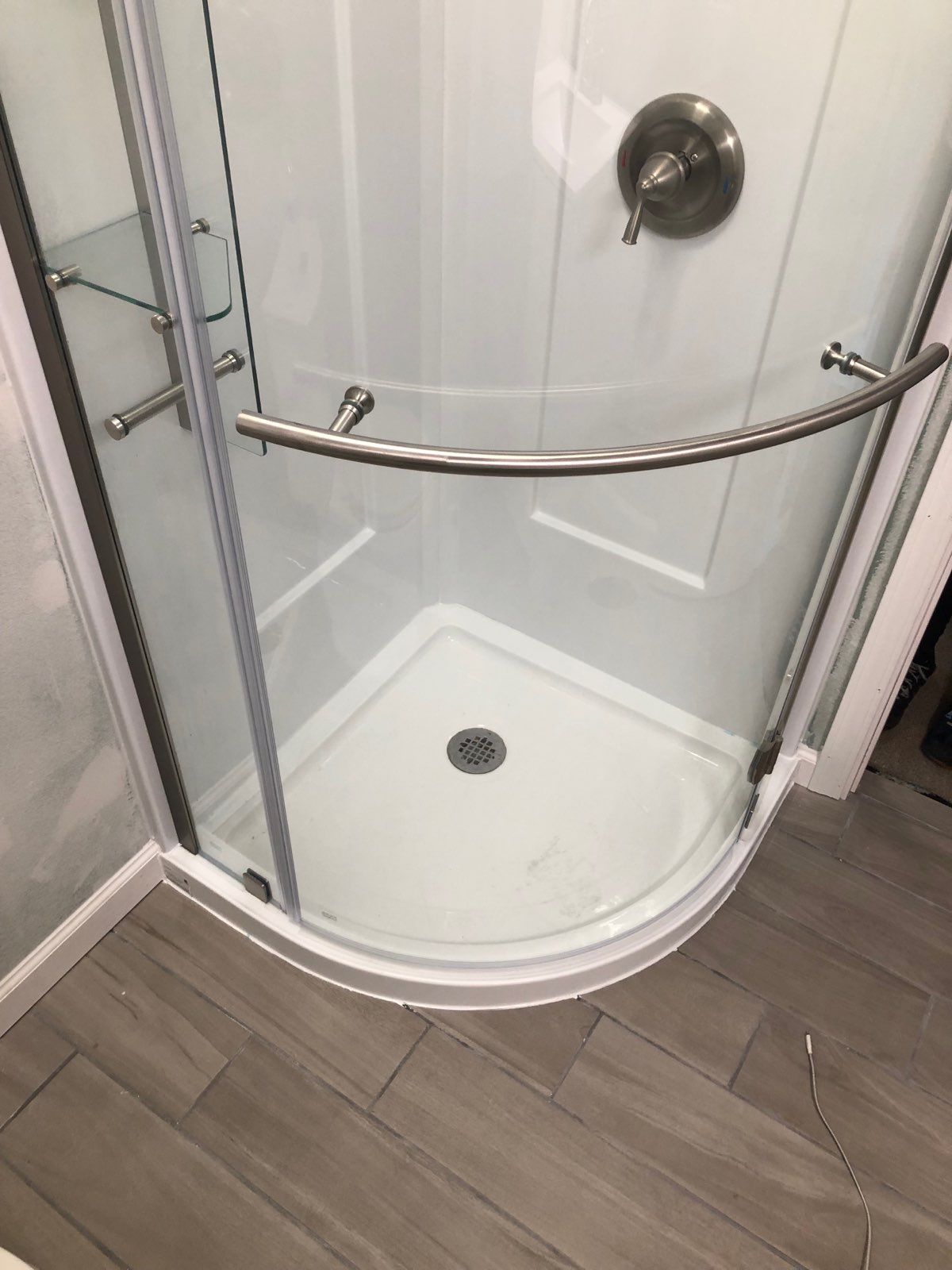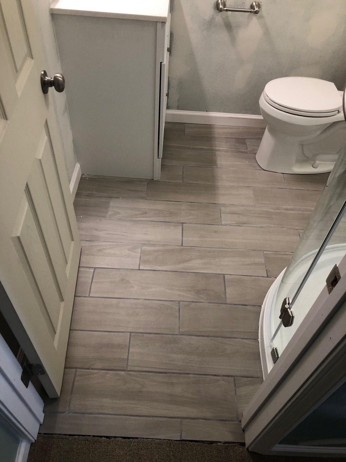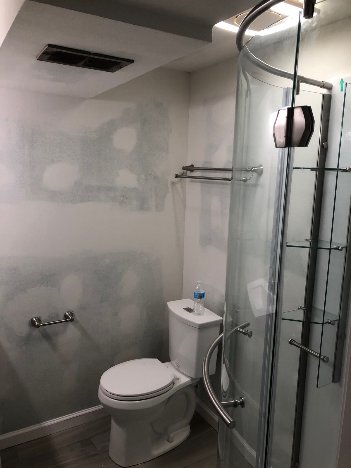 This bathroom looks a little unfinished without lipstick on the walls, but talk about a great addition to the basement! The corner shower unit fit nicely, and the layout allowed room for movement in a limited space. Whether you have a large space to work with, or have cramped quarters, a bathroom is not out of reach. Our client loved their new space, and allowed their guests to have there own bathroom to use downstairs. Give A+ Home Improvements a call and start planning your bathroom today!!
