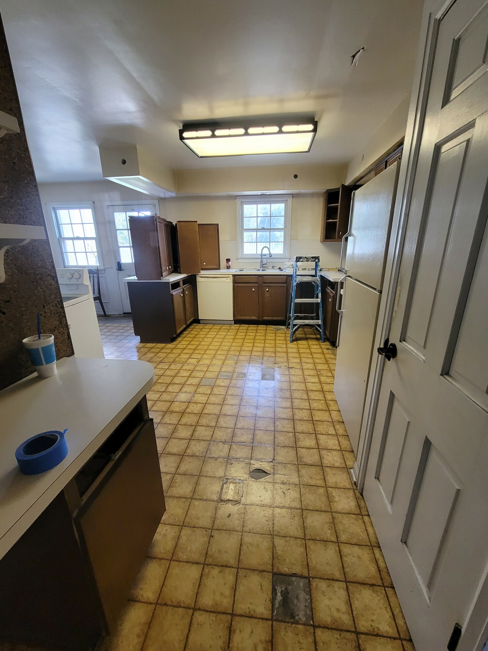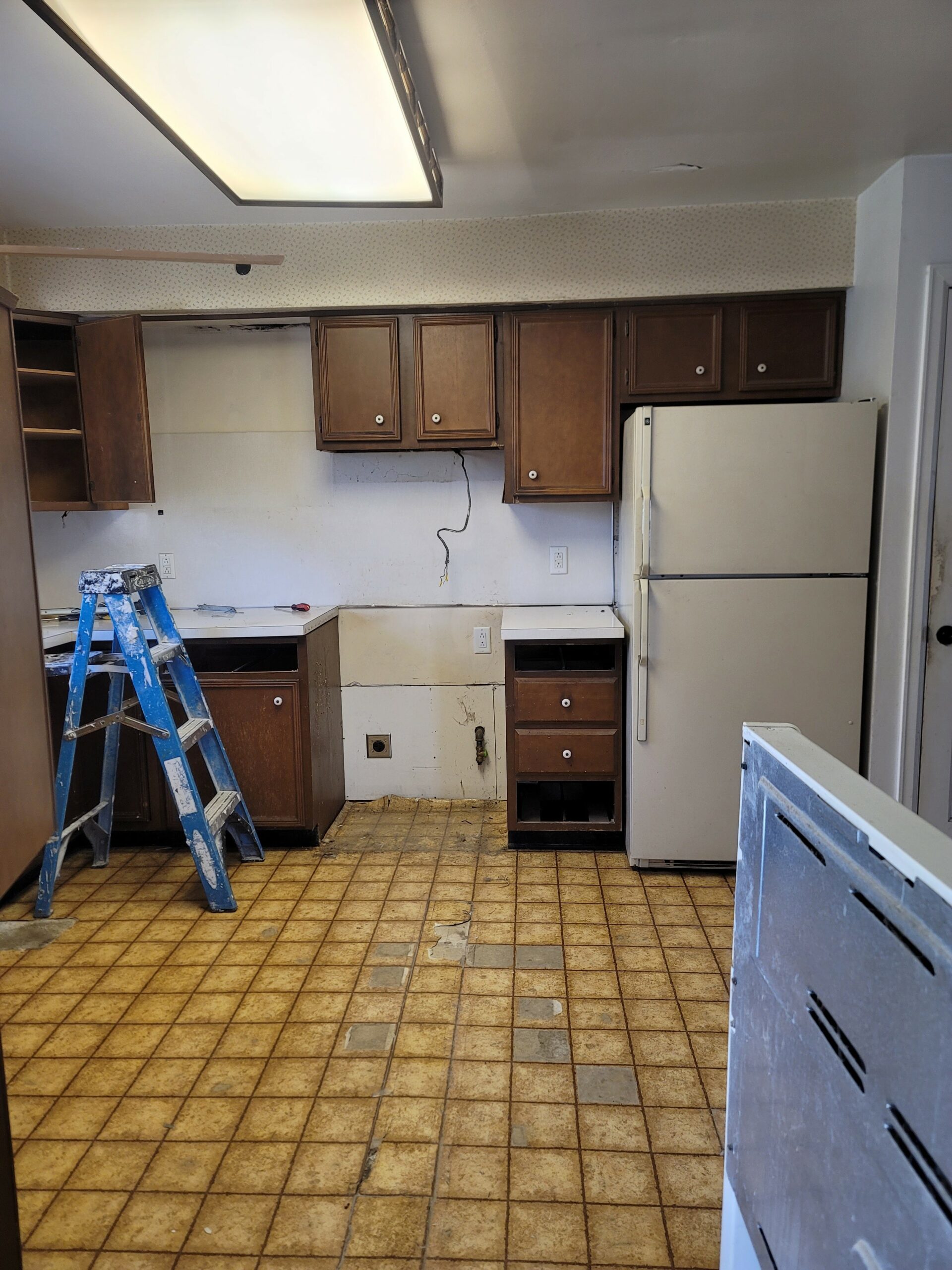 The kitchen definitely needed an overhaul. The lighting was sparse, and the cabinets had seen better days. The decades old flooring needed some attention as well. This portion of the home was situated on a slab, creating some obstacles for running electrical for the new island concept. Once we understood our clients wants and needs, we formulated the new design and got to work.