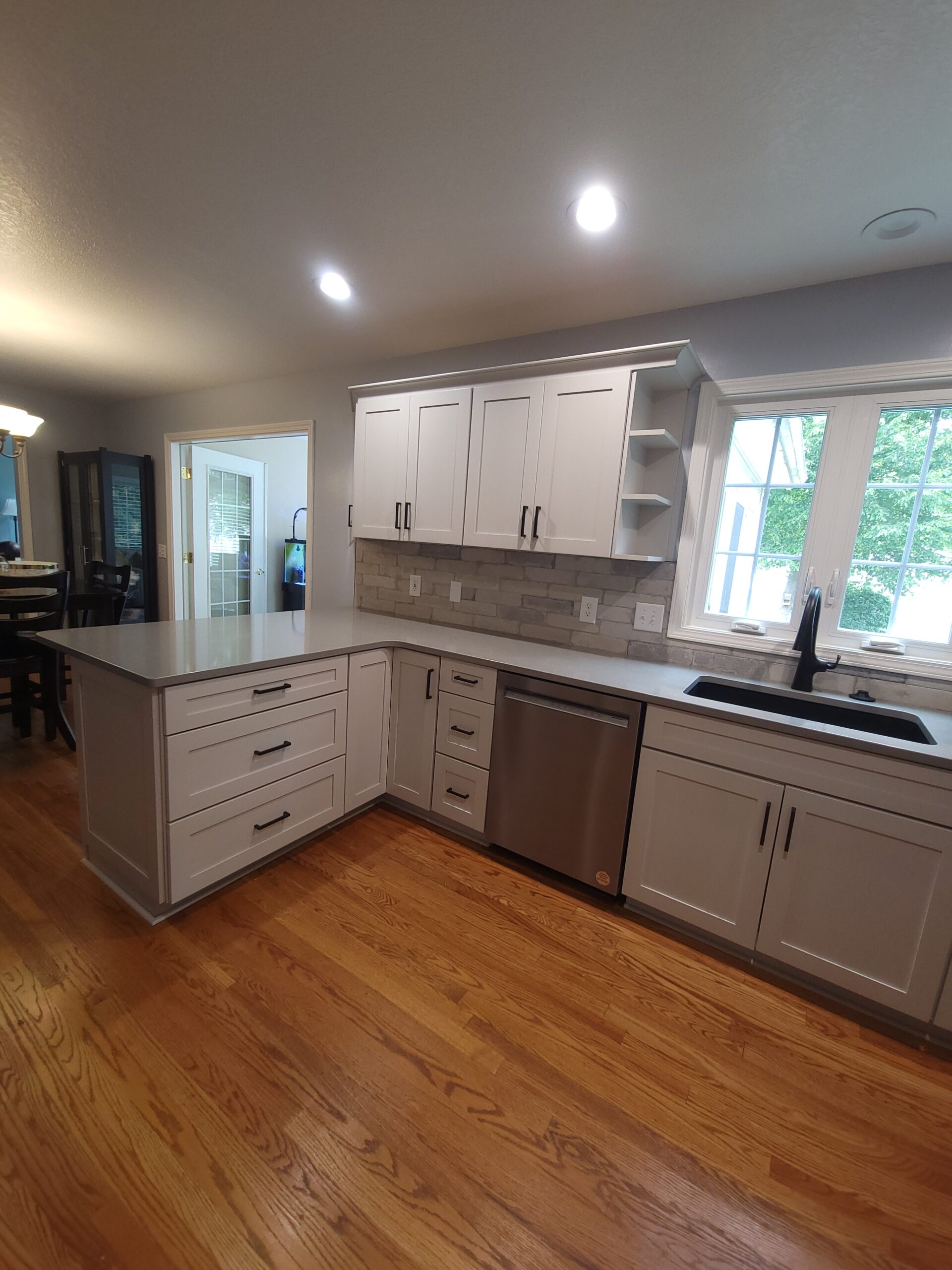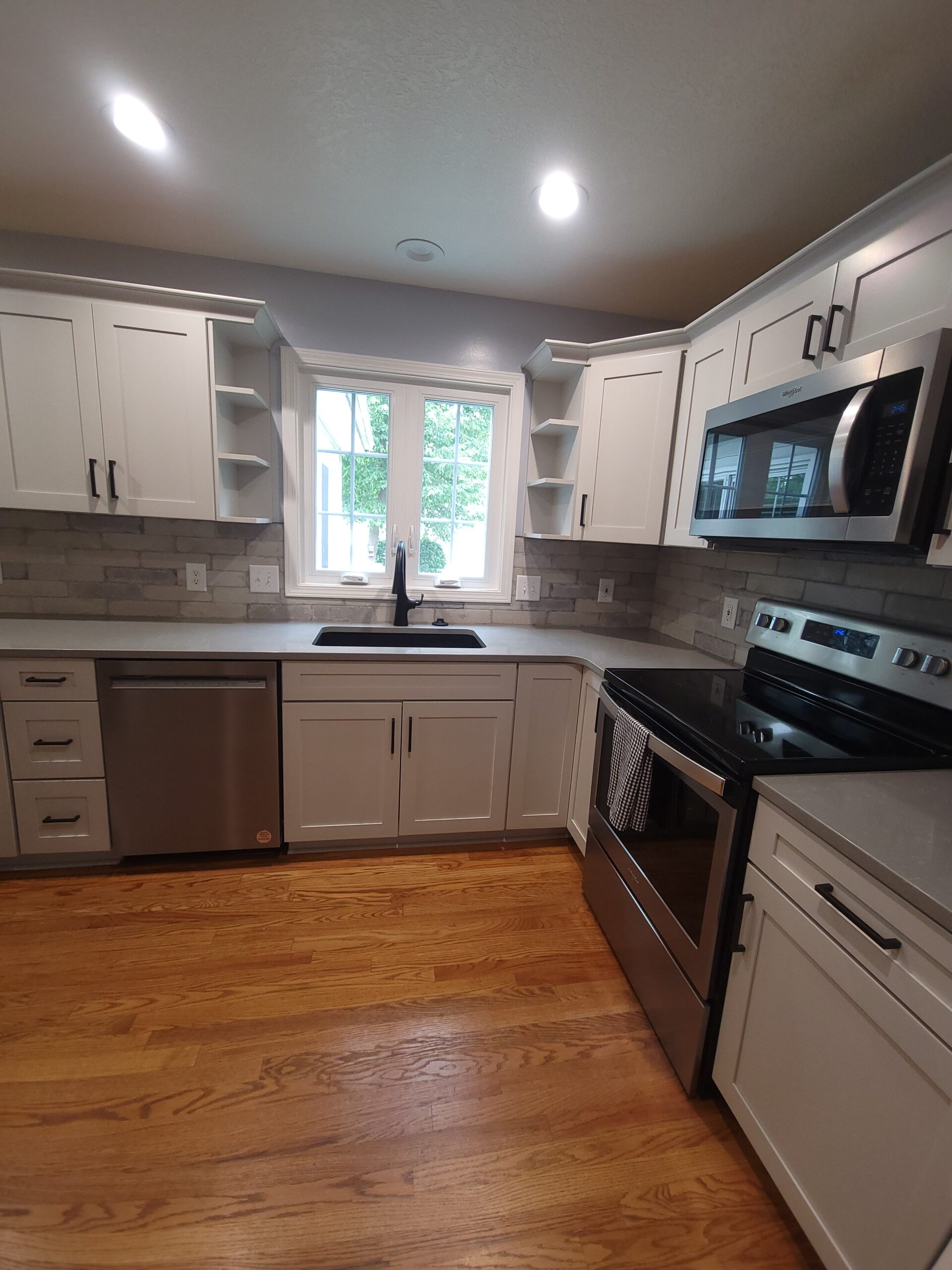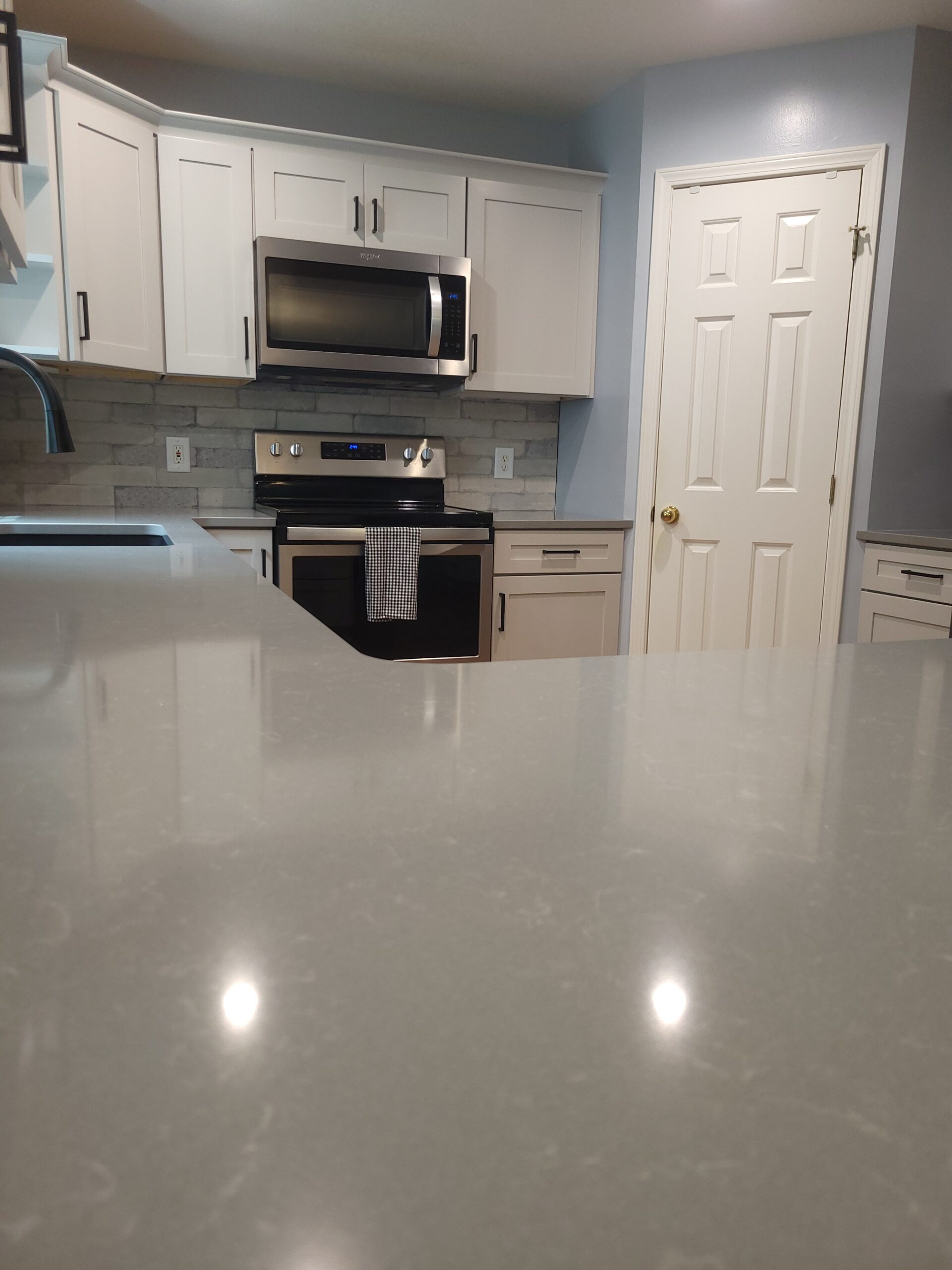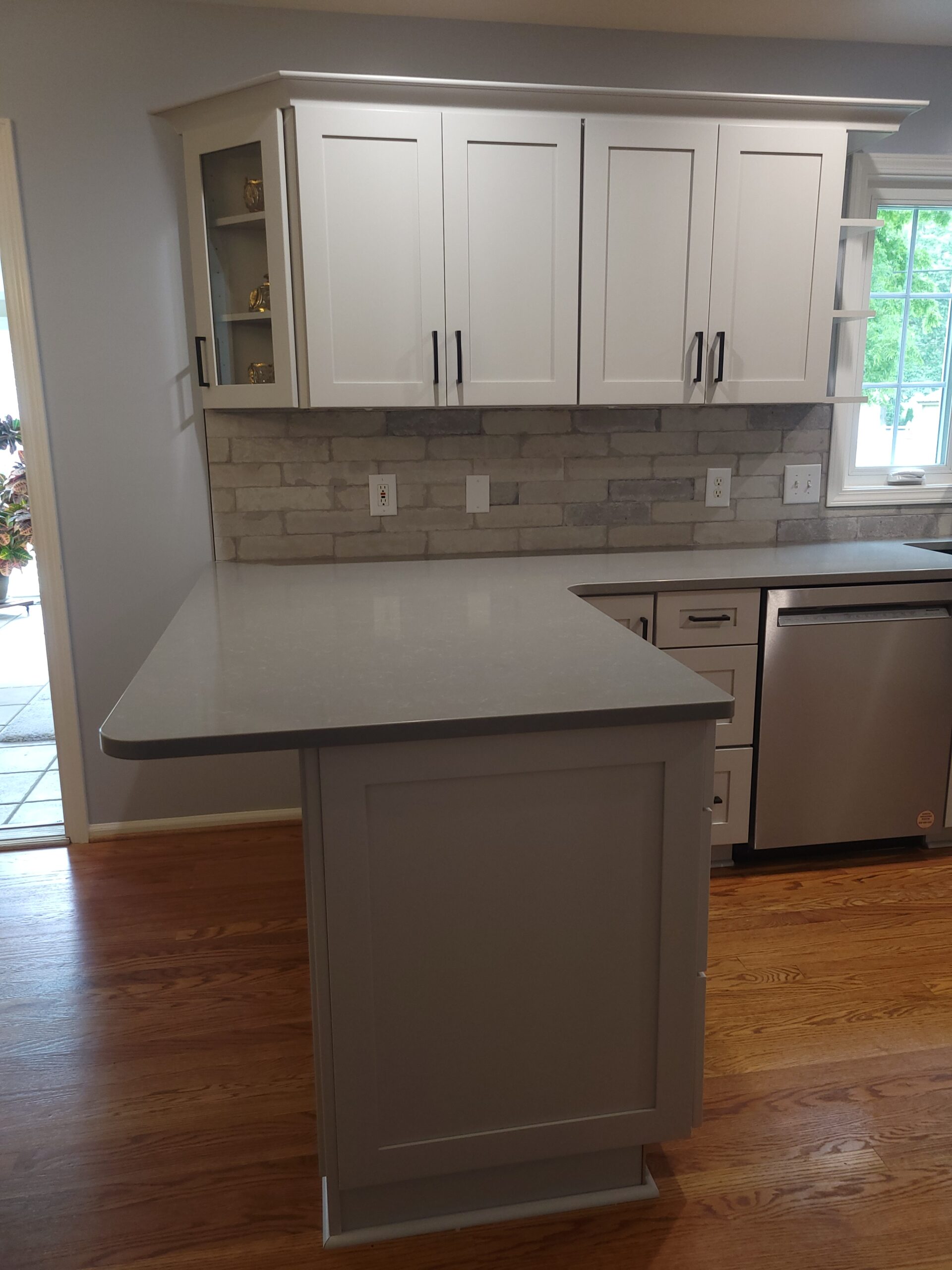 There we go!! This classic white kitchen provided exactly what our client dreamed of. The cabinets, tile splash and countertops blended together seamlessly for the perfect look. We want to work on you kitchen next!! Give us a call to get your project started today – we look forward to hearing from you!