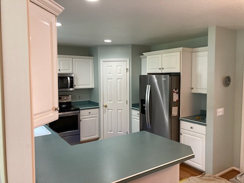 Welcome back to another A+ Home Improvements’ project! We continue to knock out projects as the spring gets underway, and our next client wanted a fresh, classic white kitchen. To get started, we want to point out that the existing kitchen remained perfectly functional. The downside, however, was the dated look. Our client already had a good idea of the result they wanted to see, so we helped with the product selection to pull it off. Our client desired to stay with white cabinets, but wanted to update the door style. We selected a classic shaker style cabinet for the renovation. The layout remained similar, with a few tweaks to better serve our client’s needs. Let’s see what we started with:
