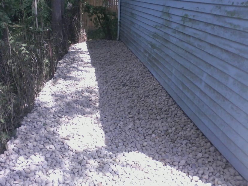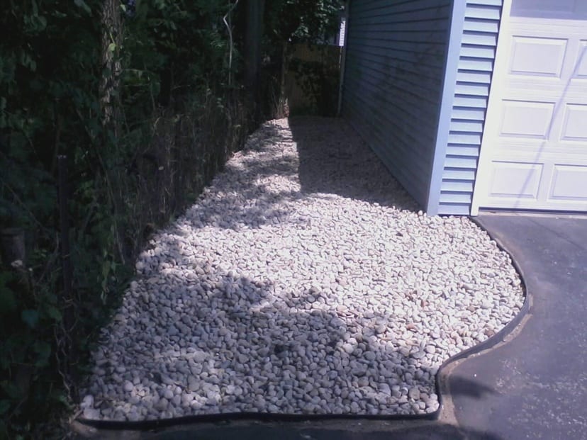 Looky there – there is a whole fence after all! And look at the gain storage area next to the garage! To help our client maintain the new look, we installed stone to make maintaining the area easier and less time consuming. On thing to remember is that while we can help get your yard back in shape, you must still keep up with it so you don’t end up back in the same situation. Give us a call for a helping hand, and take back control of your spring time!
