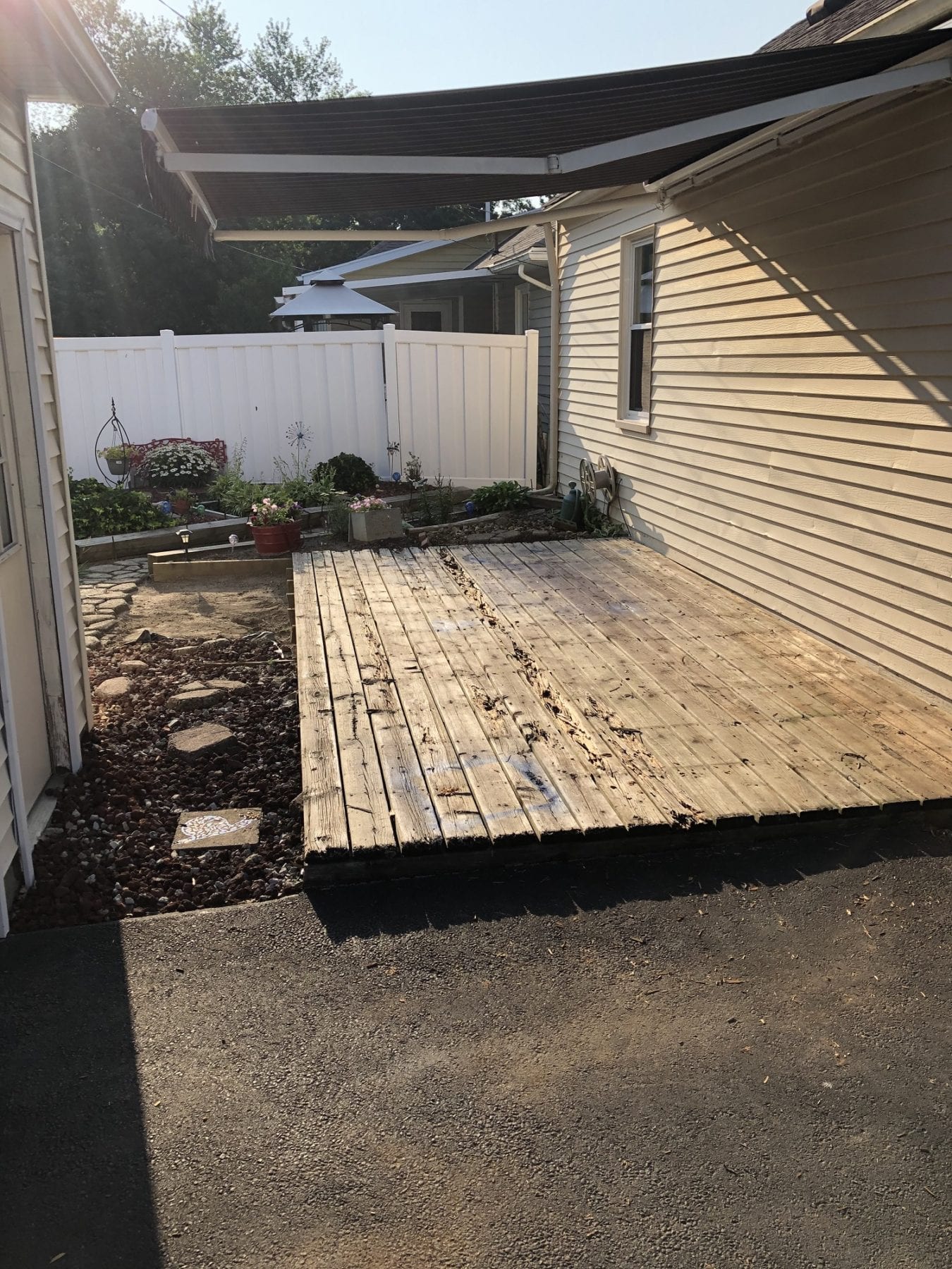This deck needed some help for sure! While not a large deck, you can see how much use our client would be able to get out of it due to its location and layout. We went to work putting together the deck she wanted: