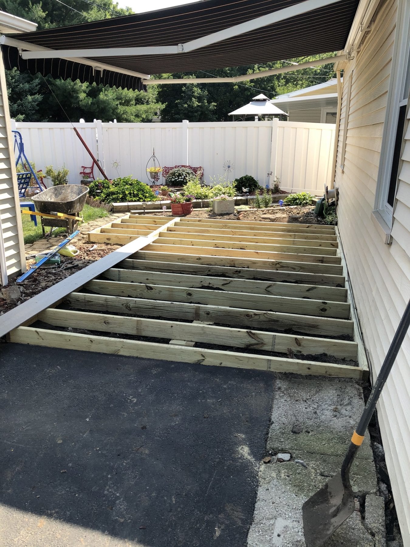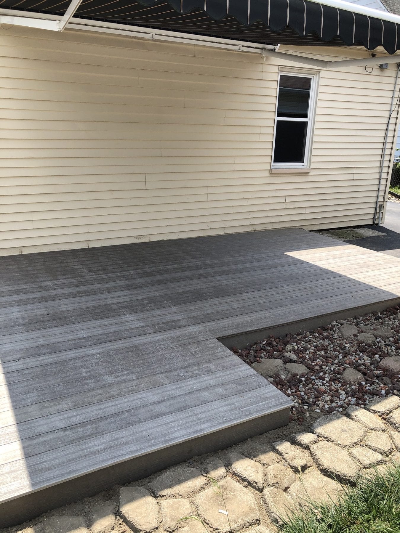 Composite decking provides a fairly maintenance free surface to enjoy for years. While most of the decks that we frame for our clients are composed of traditional pressure treated lumber, some clients prefer to spend the extra money and have composite decking material installed. Now, keep in mind that a substantial gap exists between the two styles. With that said, make sure you get what you want. Our client had a smaller deck that she wanted to redo. The size of the deck allowed us to install it affordably, and she loved the finished result.