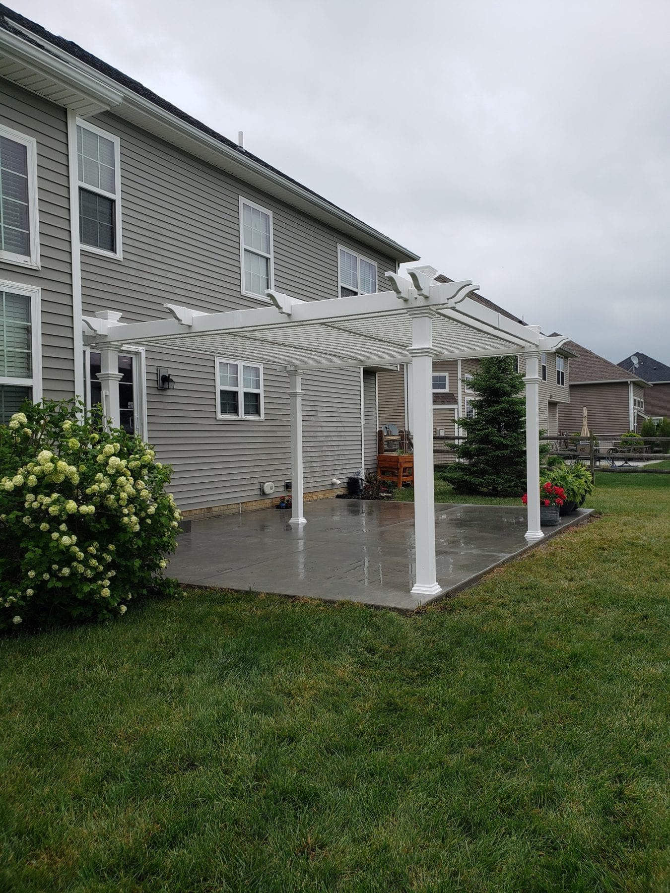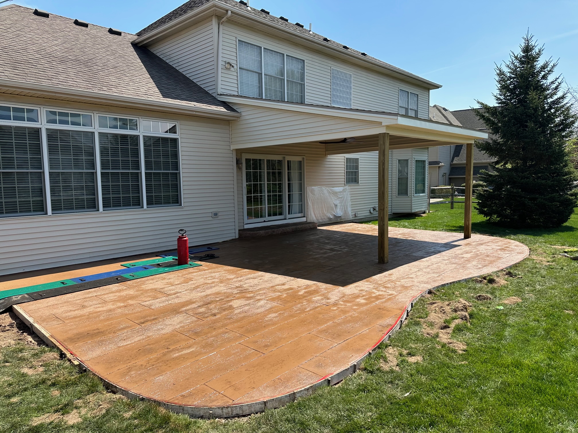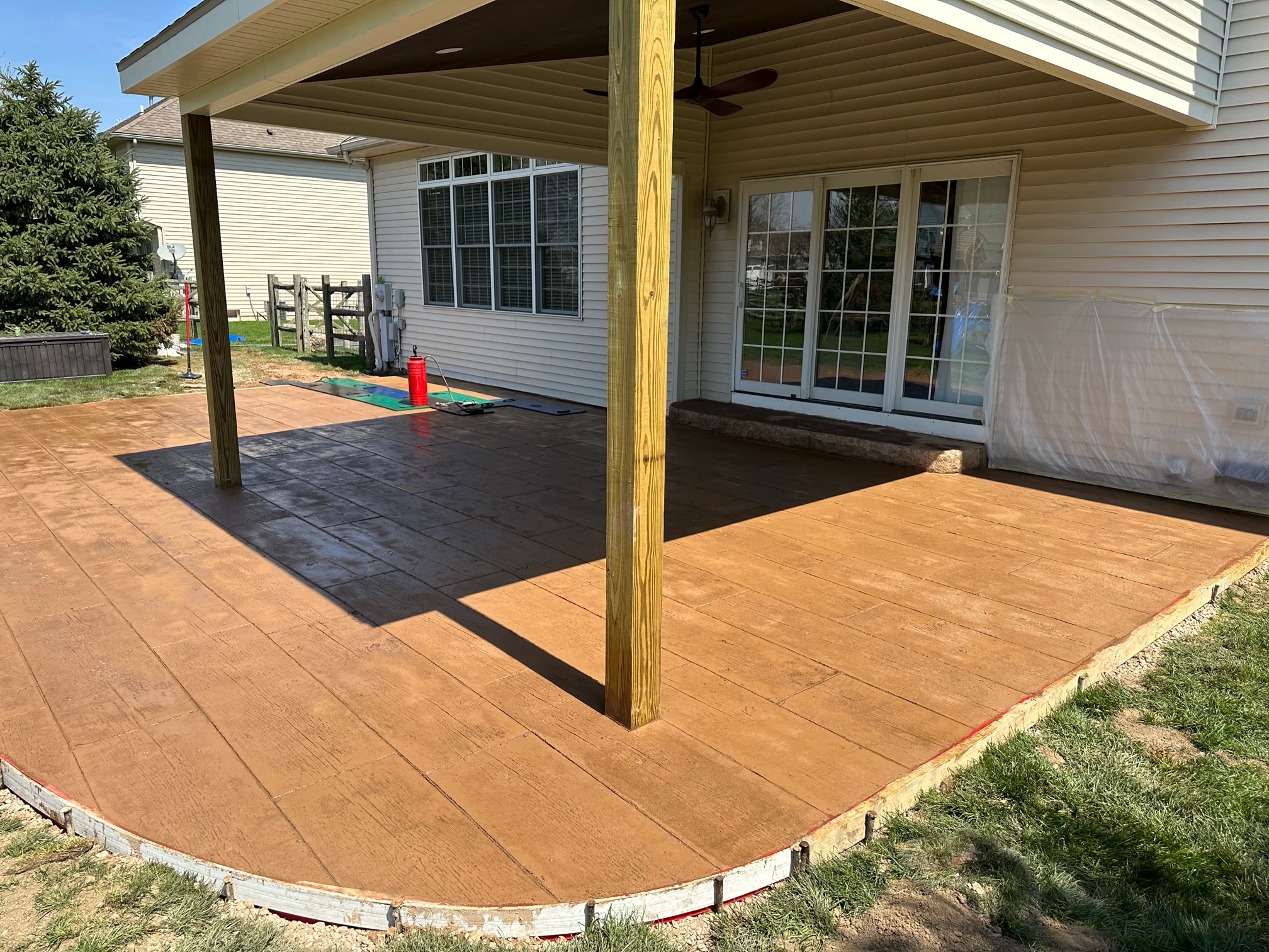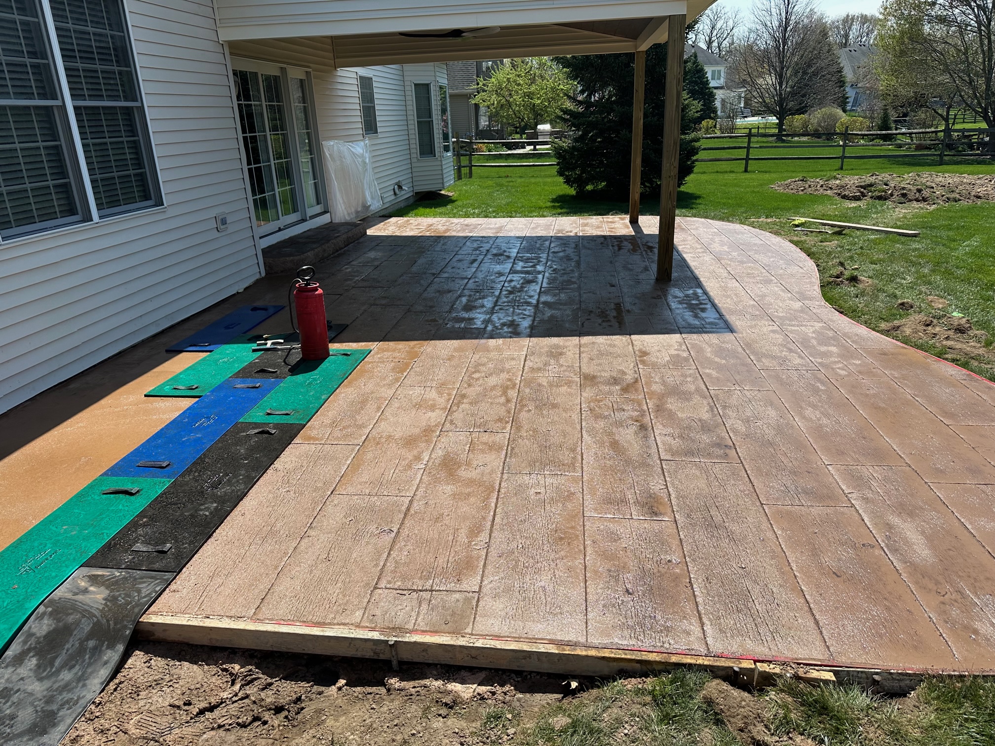 This pictures showcases a wood-look concrete patio. It offers the beauty of wood without the hassle of staining and splinters. There are many more options to choose from as well.