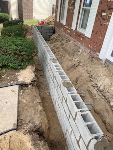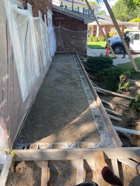 Welcome back, everybody! With spring peaking around the corner, start getting your to-do list put together for your spring projects. We all have those projects that we just ran out of time to tackle last year. Instead of letting it hang over your head, get in line to get it knocked out! This next project presents a perfect example of a project that was long overdue. Over the years, our client’s front porch slab had deteriorated and started to fall towards the home. Not only did it produce an eye sore, but it also acted as a funnel for water to run back toward the foundation. A few pillars stood in our way as obstacles as well. We educated our client on the steps needed to rectify the situation, and got ready to go to work. First up was installing a new foundation for our concrete porch cap.