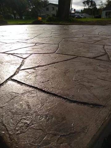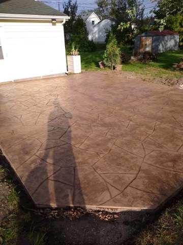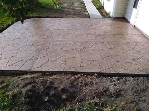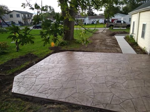 It is that time of year again- time to spruce up the exterior of your home! Spring projects set the tone for a fantastic summer. Many of us have dreams of an outside space for lounging and entertaining. Unfortunately, we often dread the work that goes into creating these spaces. A+ Home improvements wants to help you get these projects out of the way. Our client wanted to to tackle some concrete projects around their home, and we were honored to be chosen to lend a hand. They desired to have a stamped, stained patio poured to provide a space to hang out, but that wasn’t the only need. First came the stamped patio.