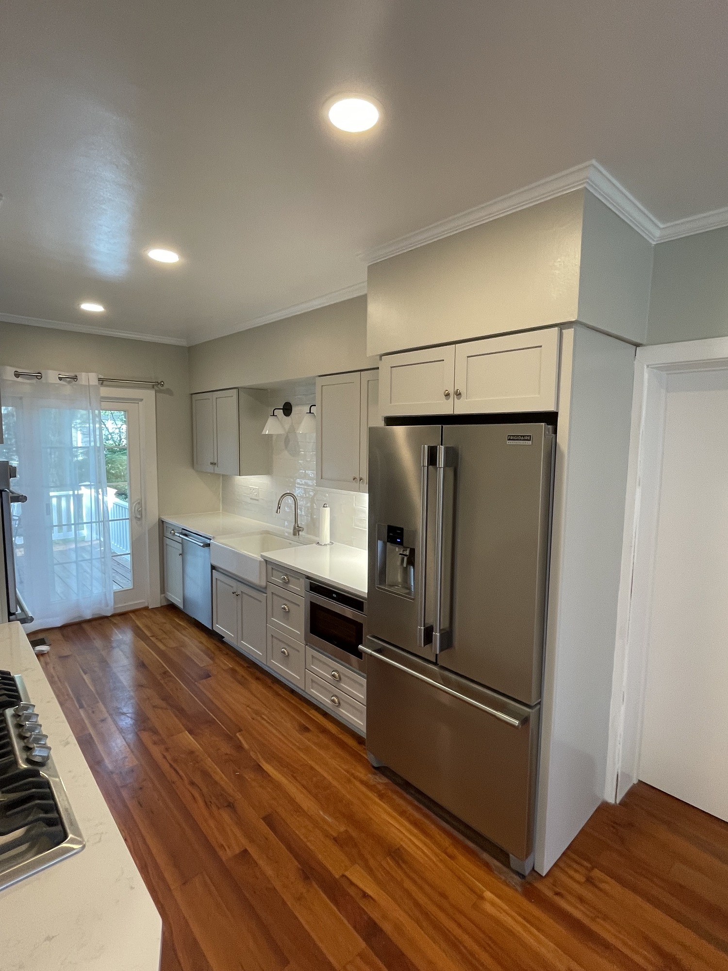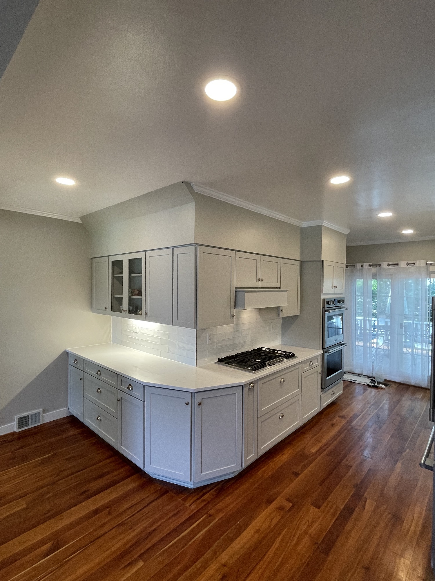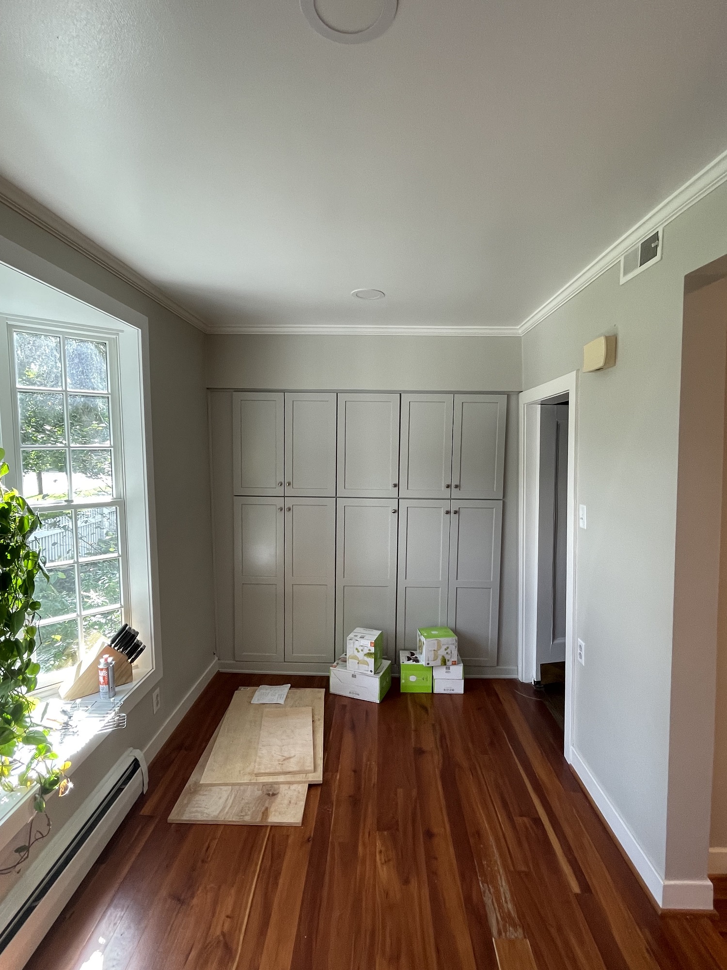 Typically we can provide options to help square up the walls to allow a more straightforward installation, but this wasn’t really an option on this project. The section of the kitchen containing the pantry cabinets had been added at some point in time. Somewhere along the line, the structure settled and caused some uneven walls. To correct the issue, previous home owners had added bracing and support to stop the settling, leaving the unlevel walls in place. Correcting the walls at this point would cause a domino effect to the other additions on the home that were built off of this structure. To accommodate this, we scribed fillers into the wall to allow for a level cabinet installation. Once the products and layout were selected, we ordered the products and got ready for the installation.