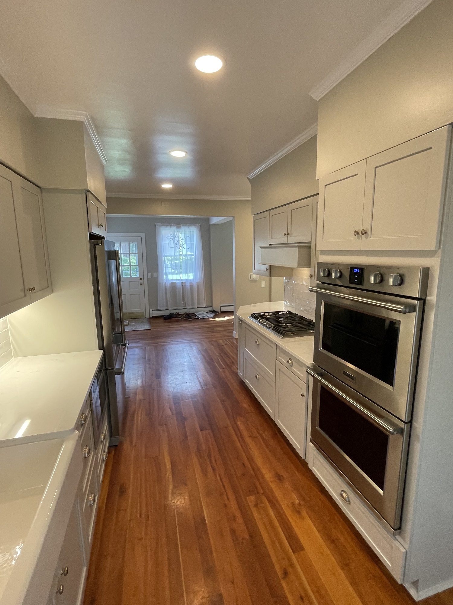 Happy New Year!! Over here at A+ Home Improvements, we worked with a client on their custom kitchen renovation. Our client owned a beautiful, large historical home that had incurred multiple changes throughout its lifespan. While the home offered extremely cool characteristics, it wasn’t the most level thing in the world. The existing kitchen space included unused desk space and outdated cabinets and fixtures. One of the biggest obstacles, however, were the out of square walls.