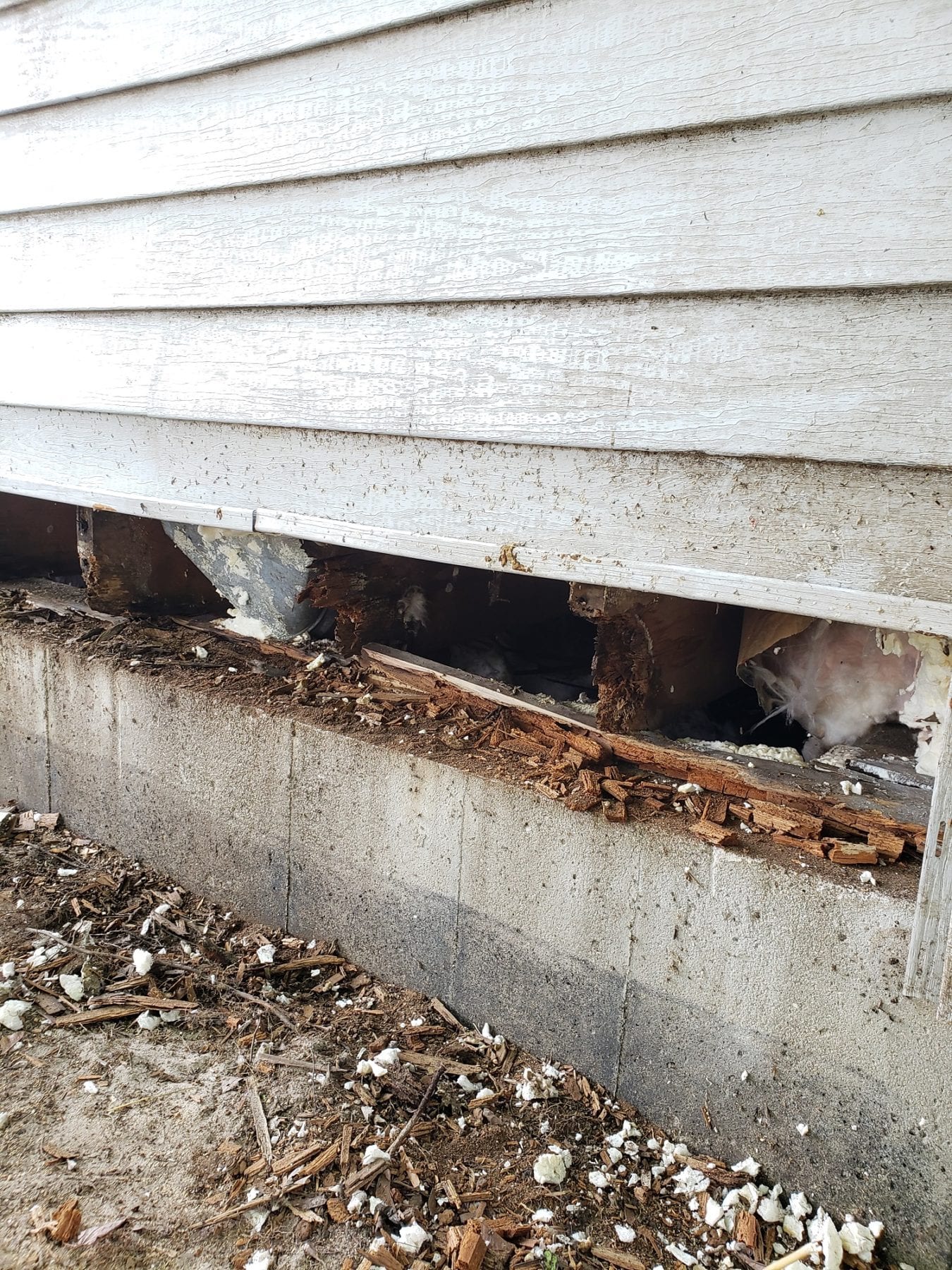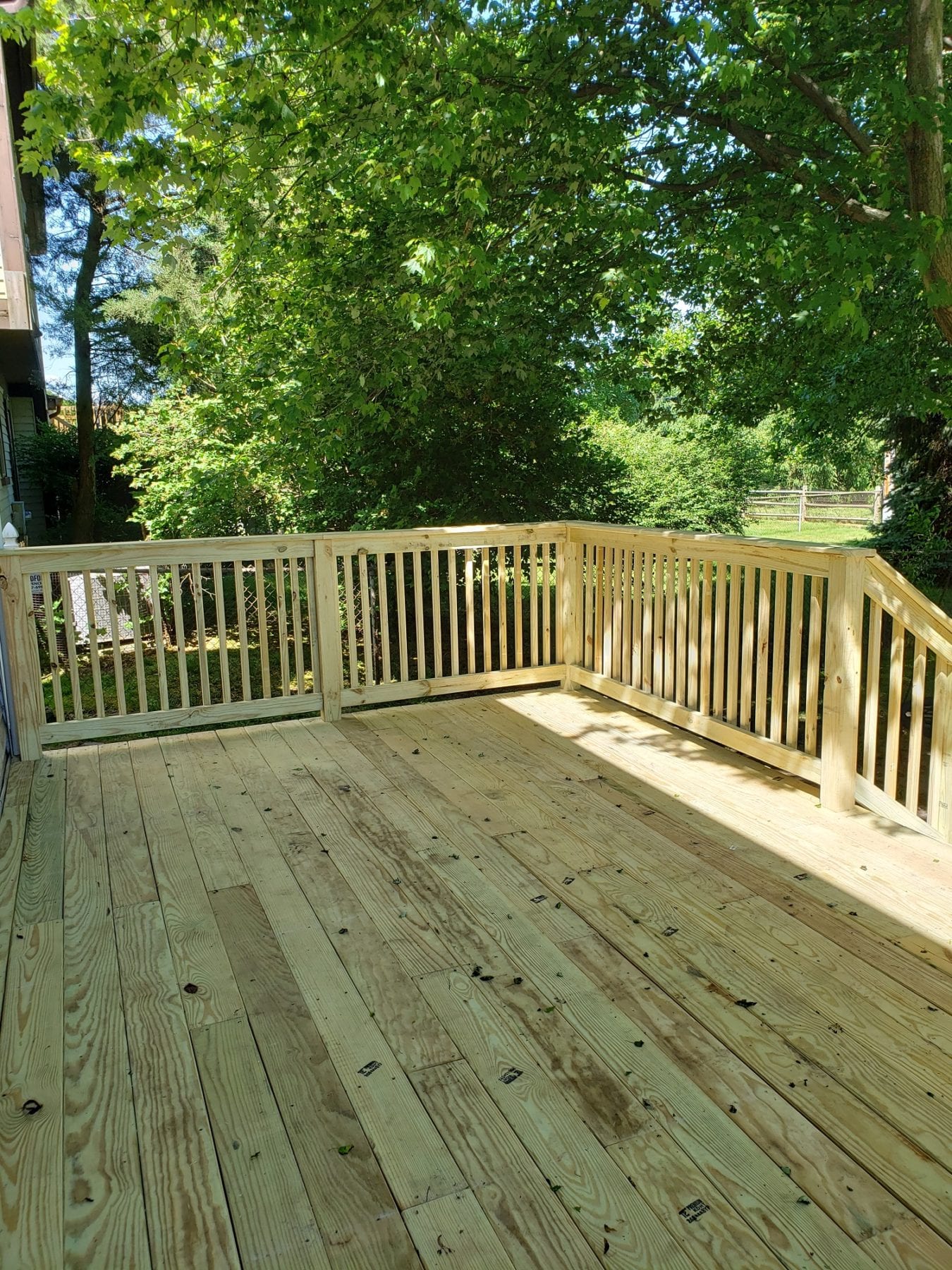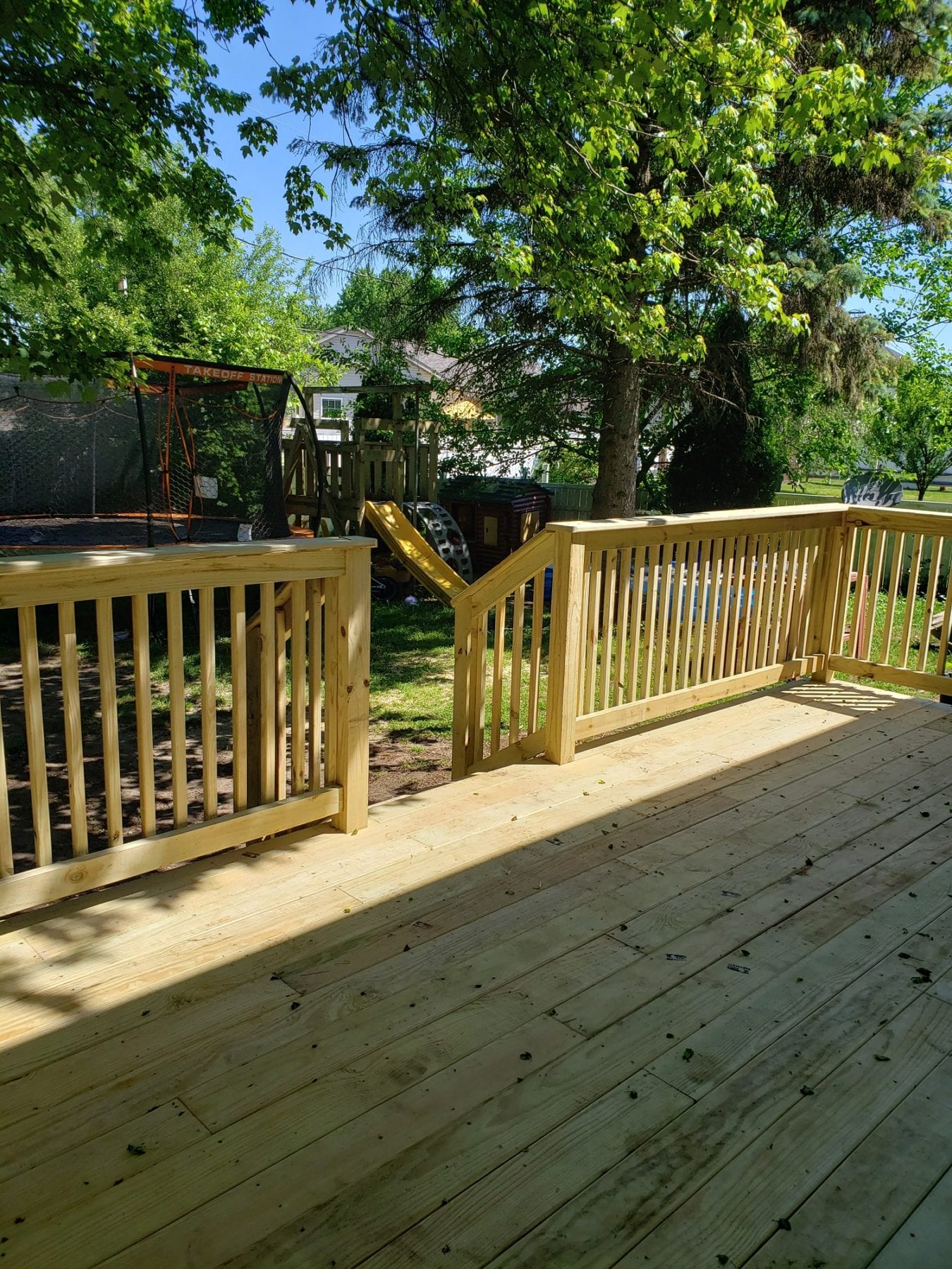 We love building decks, but a complete deck renovation was needed in this instance. While the deck definitely showed signs of wear and tear, the water damage at the rim joist and sill plate were not as obvious. That is, until the deck fell away from the house due to the rot. We removed the old deck and replaced the rim joist and sill plate. Once we sealed up the exterior of the home, it was time to build the new deck.