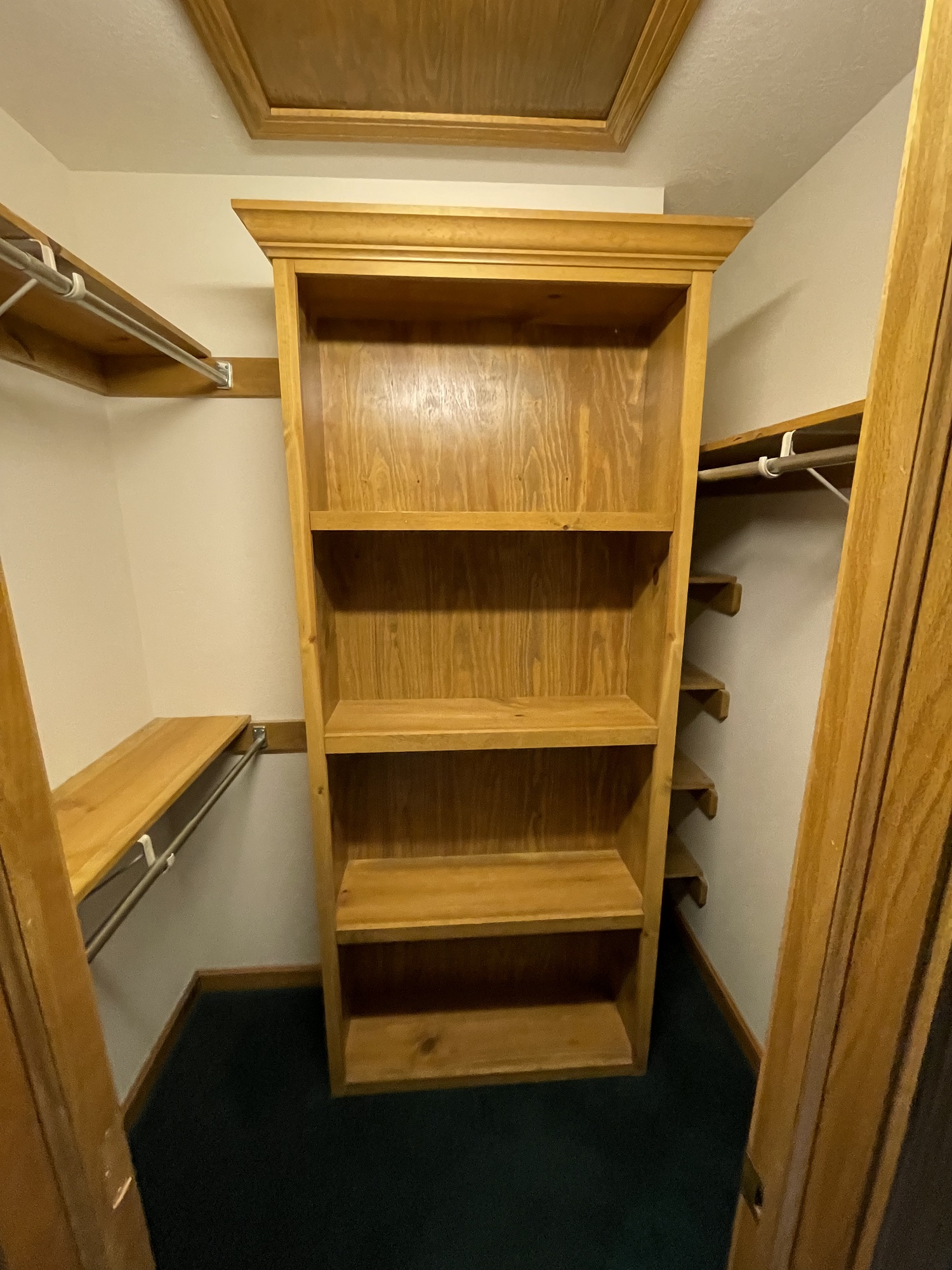The closet was originally sectioned off into 2 rooms with an entrance from not only the bedroom, but also the bathroom. We eliminated this separating to allow a better flow and more storage options. The tub was completed deleted to make room for a longer, more elegant vanity to take its place.
