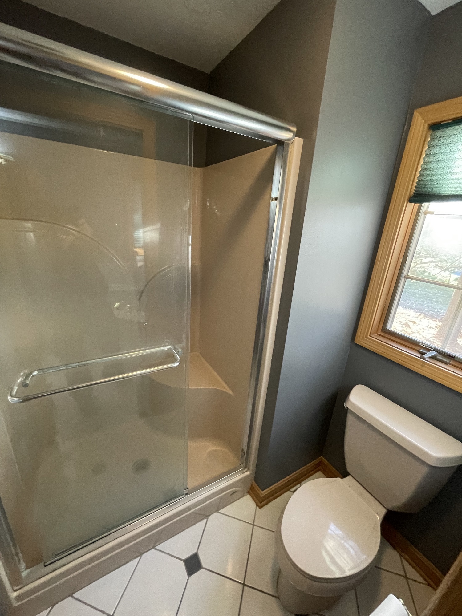 Now this was a fun project! We had the privilege of stopping out to perform a consultation for this client’s bathroom, and what a project it was! The existing bathroom provided plenty of room for a renovation, but the home owner was a little unsure of exactly what they wanted. They presented us with a wish list, and asked for our advice on how to fit everything into their dream master bathroom. The key factor for the hole project centered around the shower. Number one priority was a spacious, luxurious shower of their dreams. We worked hand in hand with them to provide the perfect layout, which included moving the toilet across the bathroom to make room. The old layout included a shower room that housed the toilet. To provide the biggest possible space, we converted the WHOLE room into one large shower. Here was the old shower space: