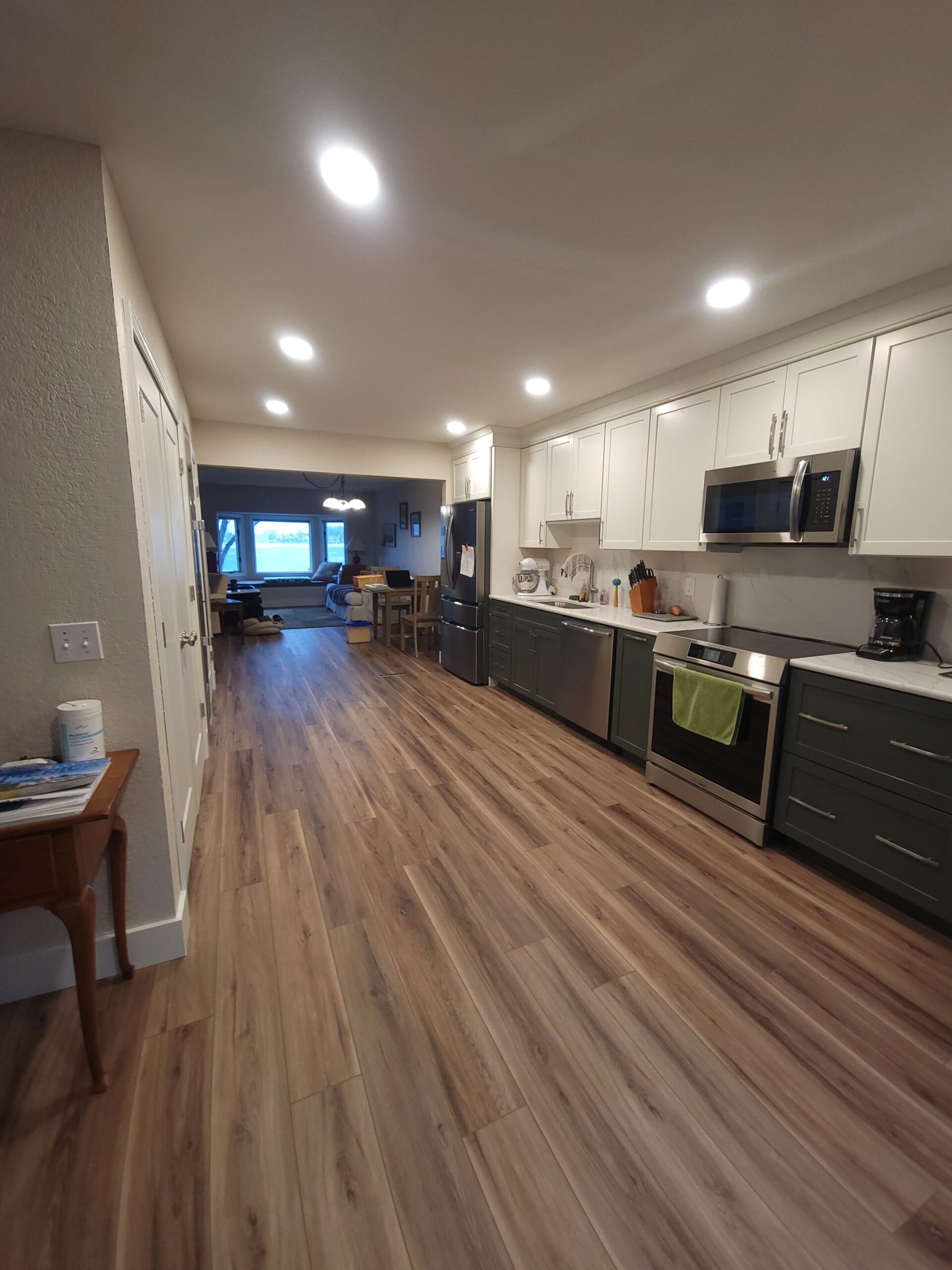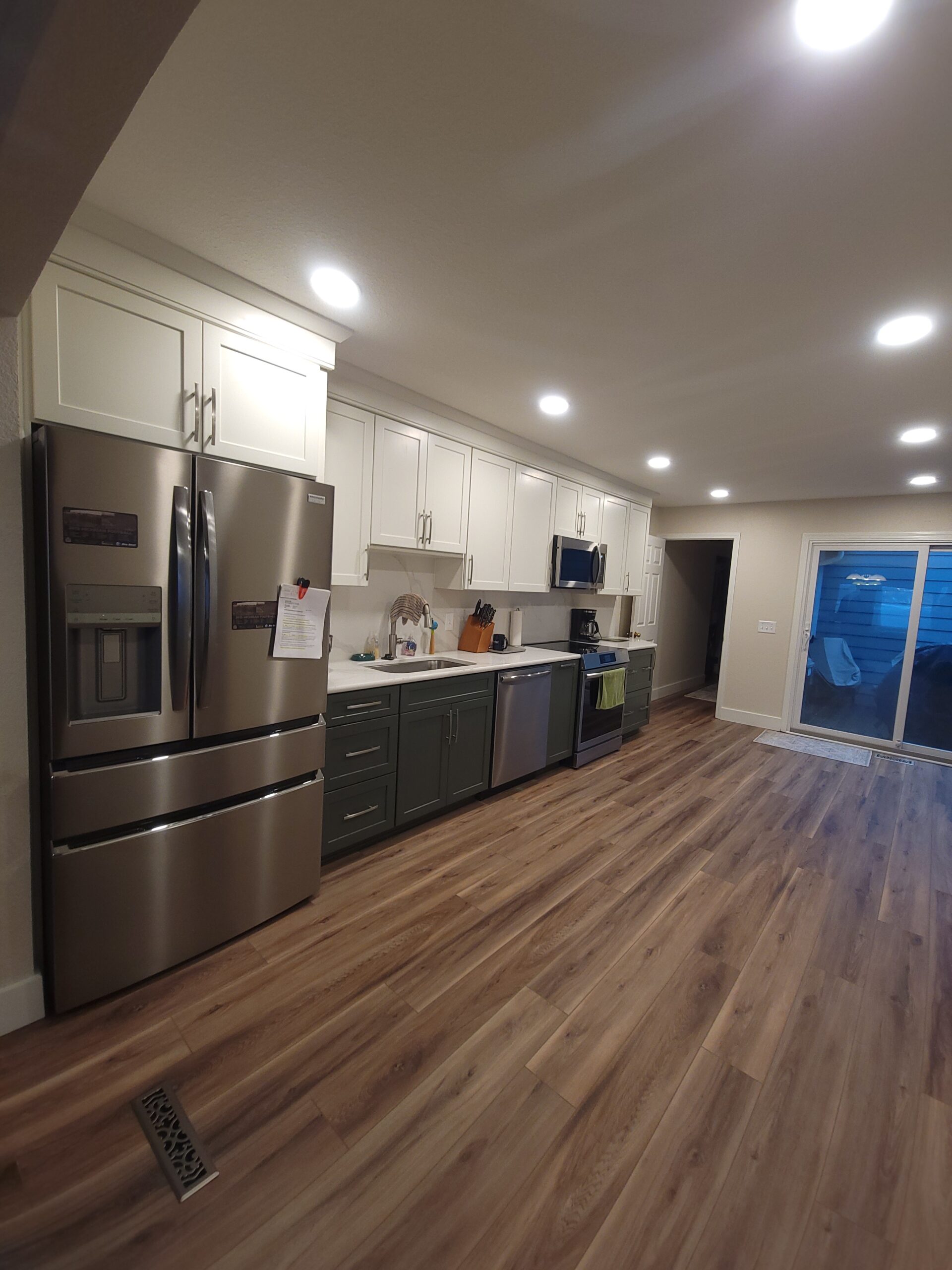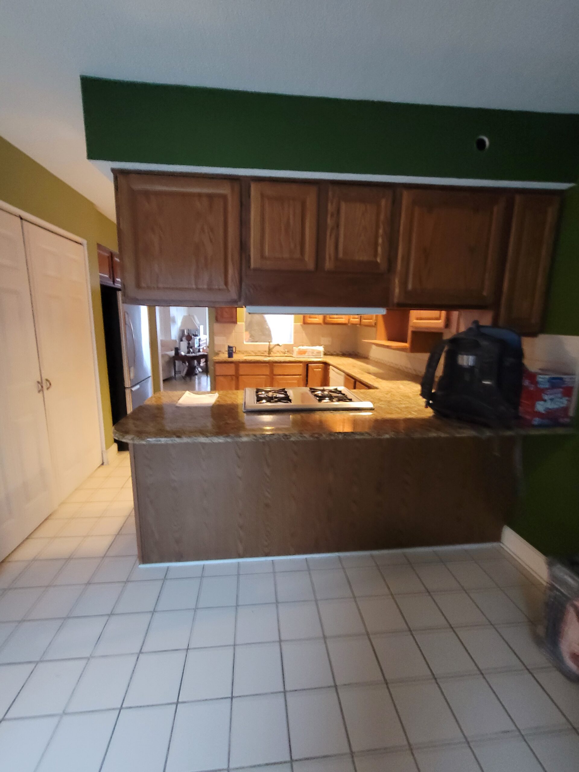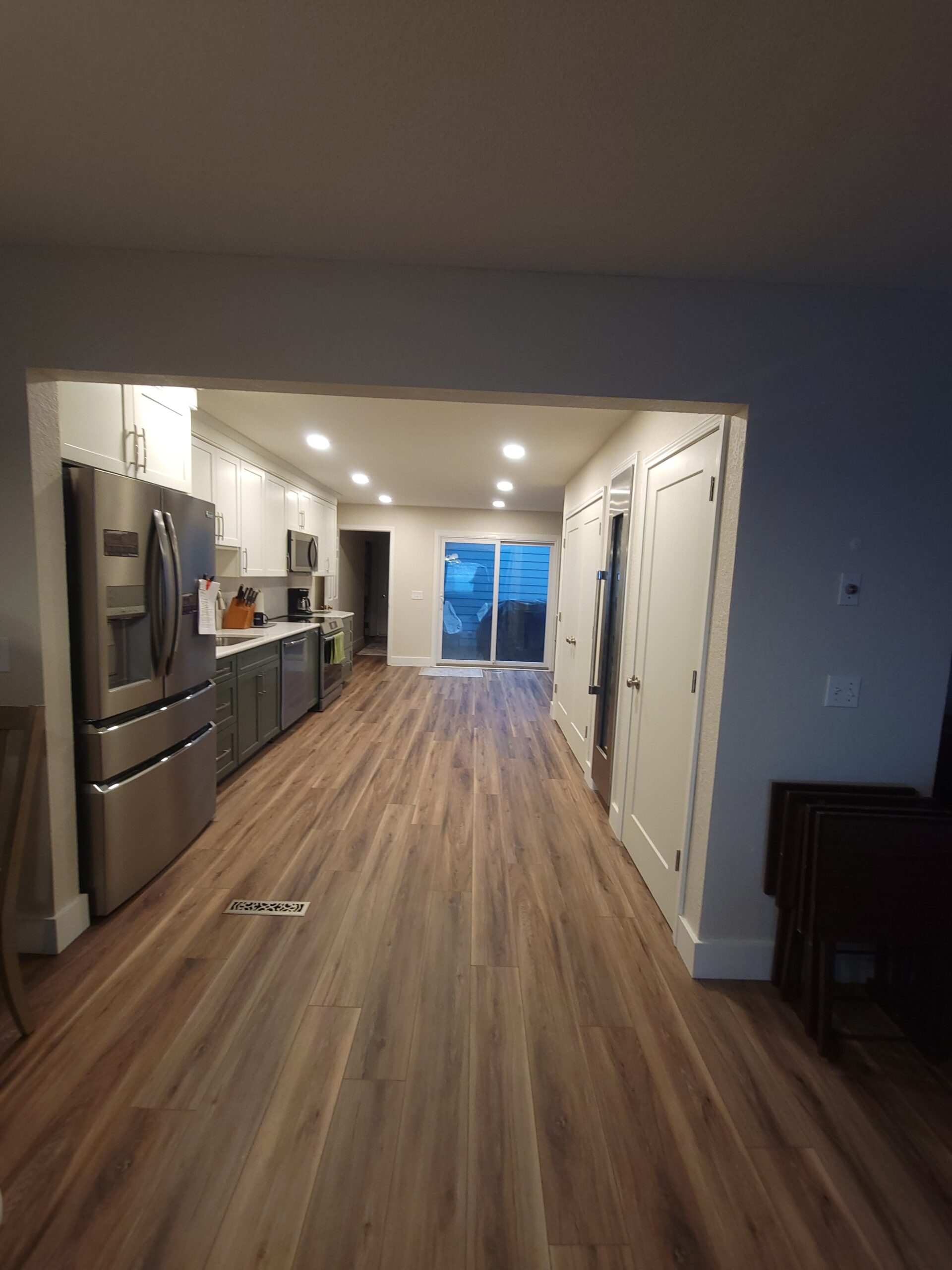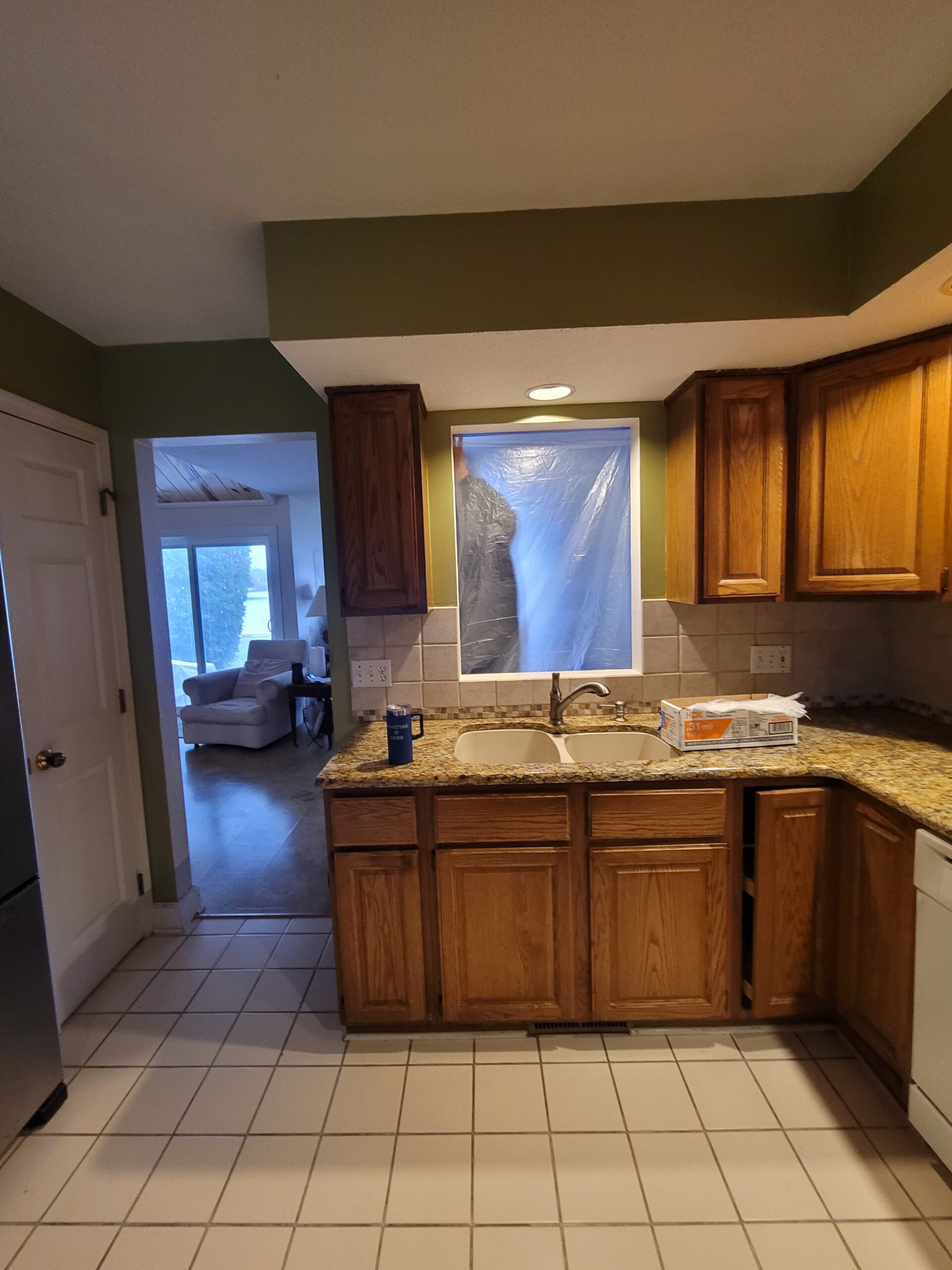 Welcome back to another A+ Home Improvements’ project!! Our year has been full of fantastic clients and projects, and the next one is no different. We replaced a patio door with a window in the past for this homeowner, but this time around they desired a much larger project. They tasked us with a full first floor transformation!! The homeowner viewed this home as their forever home, and it was time to make it work for them. All of the flooring on the first floor – tile and laminate – needed to be replaced. The kitchen provided a cut up, cramped feel that desperately needed to be updated. The lighting left a lot to be desired as well. We worked hand in hand with our client through the product selection process, and geared up to deliver the renovation of their dreams. Let’s take a look at what we started with: