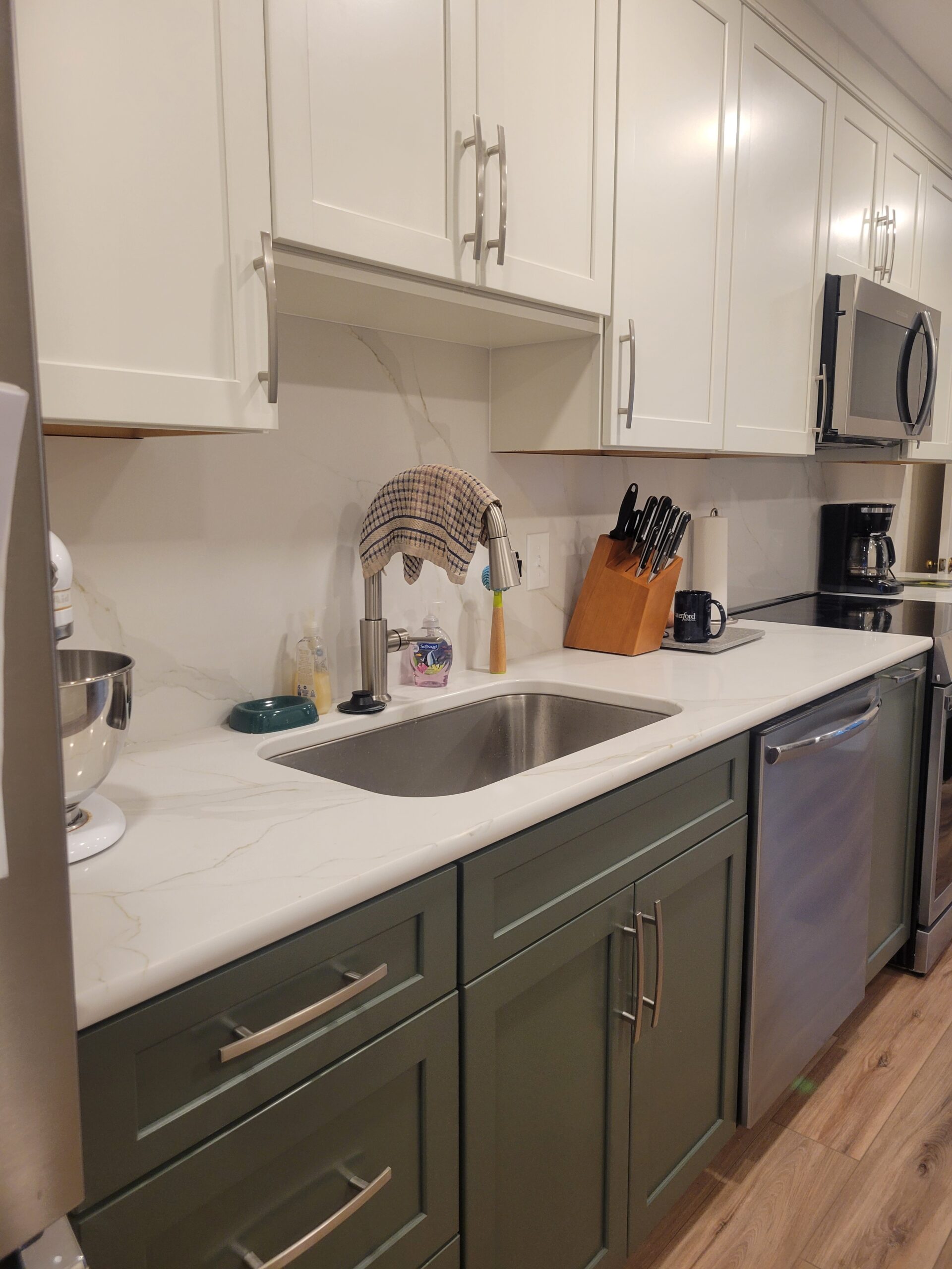 What a difference! Many different items jump out at you when you look a the first floor transformation. The client opted for a backsplash made from the same quartz material for the countertop, and it provided the icing on the cake! Our client loved the results, and looked forward to utilizing the renovated kitchen. What projects to do you have coming up? Give A+ Home Improvements a call to get your project started today. We look forward to hearing from you!!