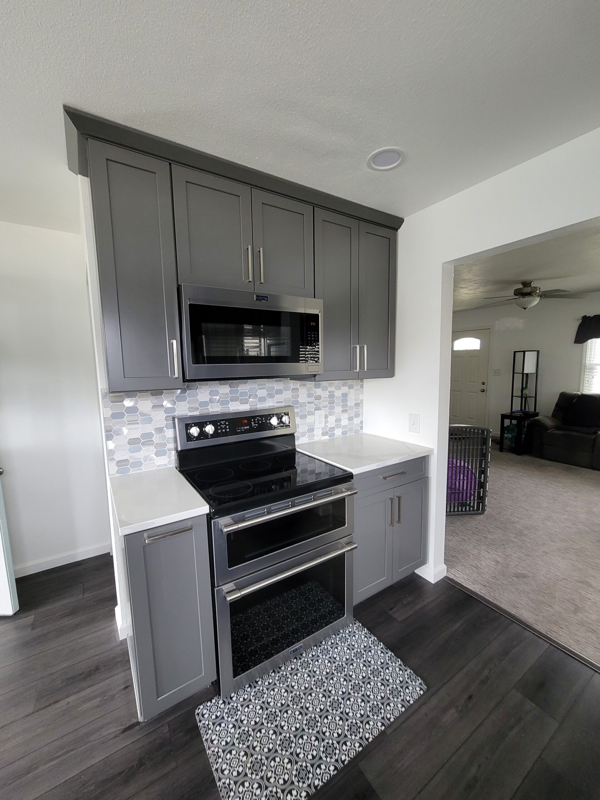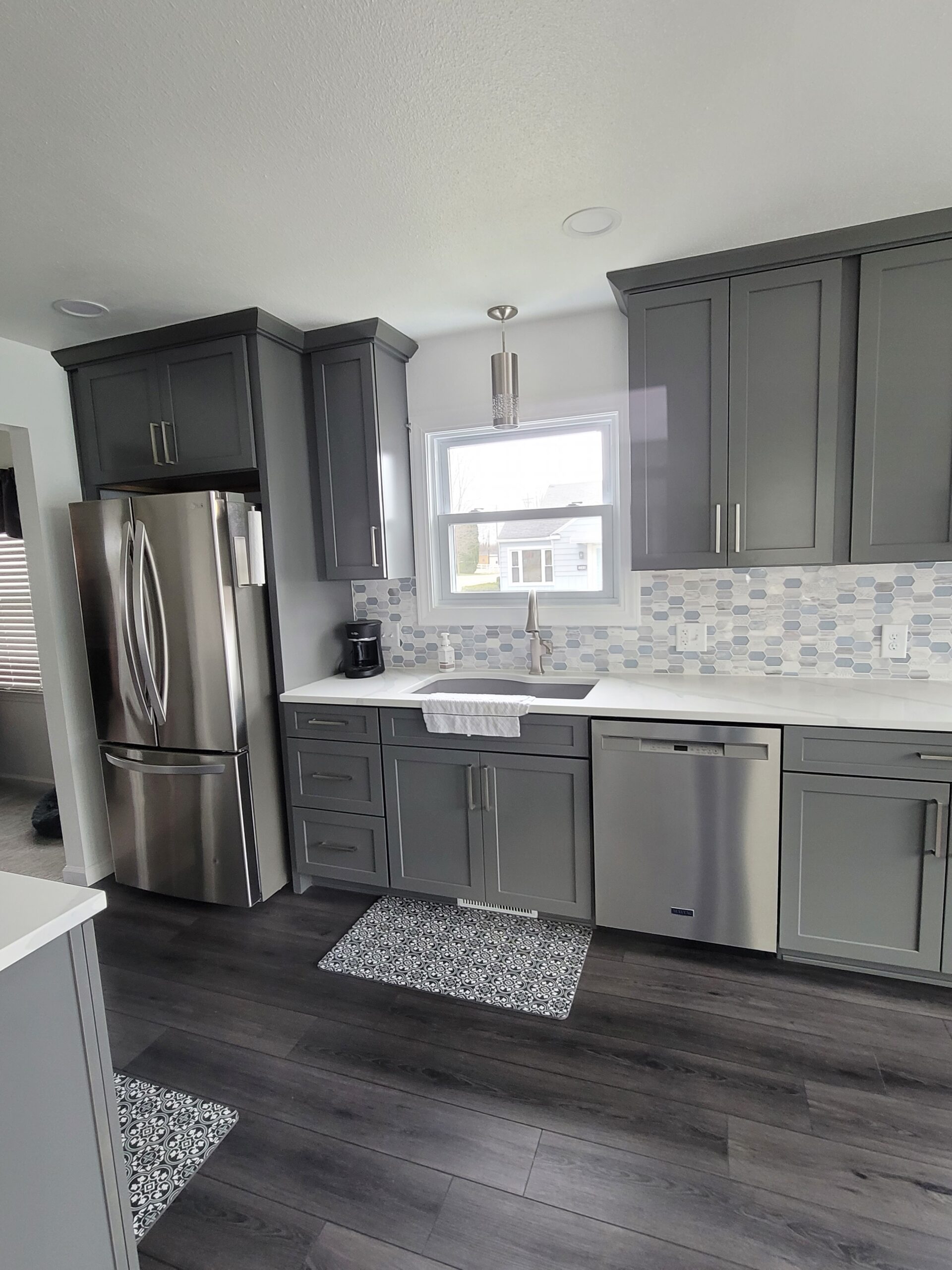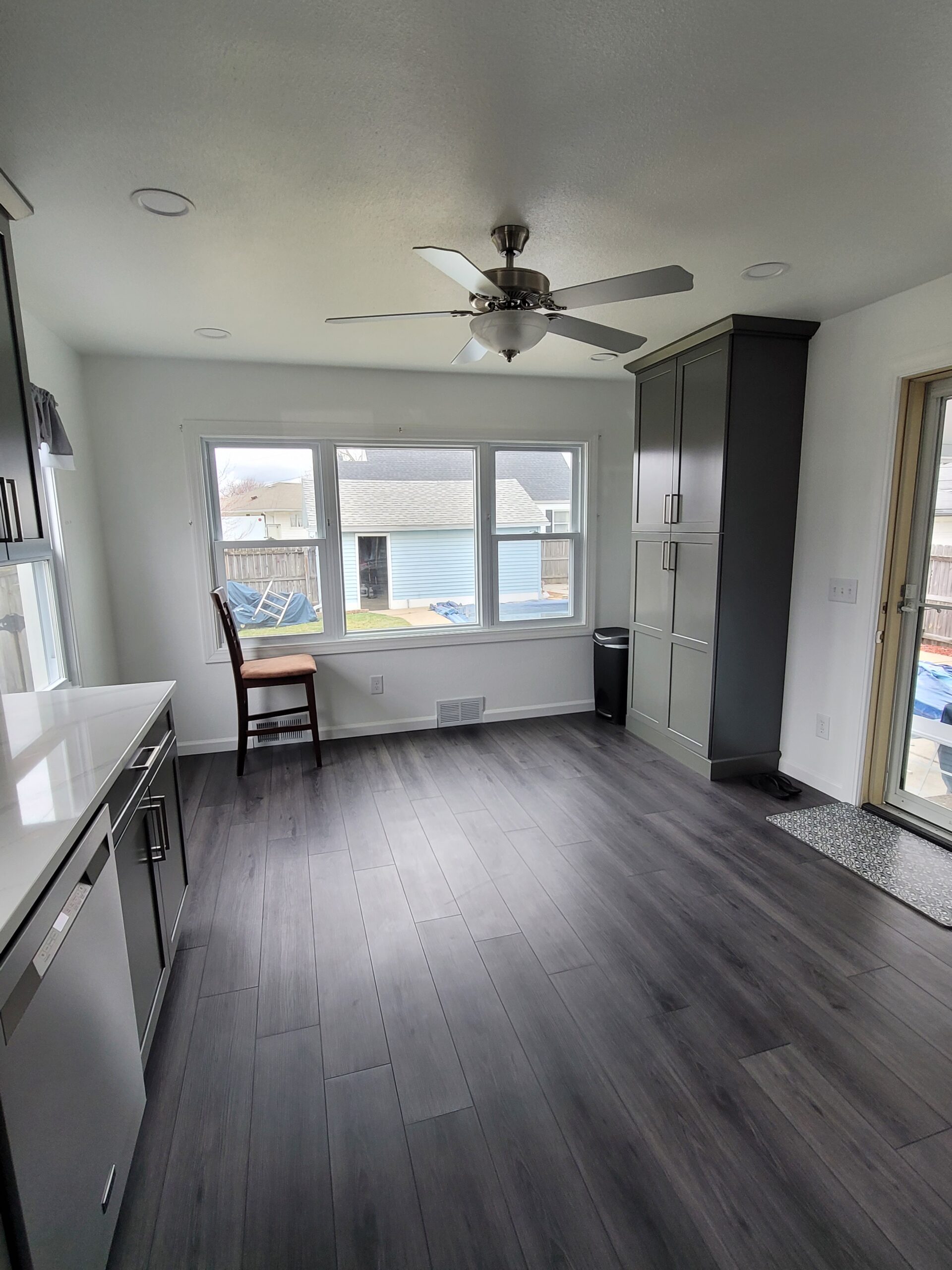 What a difference!! Our client’s selections made it easy to pull this off. The colors and tones worked perfectly together, and the deleted peninsula allow natural sunlight to permeate throughout the room. Once the lighting was updated and the new vinyl plank floor was installed, our client’s had the kitchen they had been longing for.