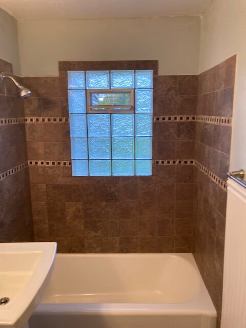 Welcome back to another A+ Home Improvements’ project! We are still chipping away at the projects on our plate, and our next client desired a gray bathroom. The existing shower enclosure contained a window in the center, and the size of the window prohibited the amount of storage that could be incorporated into the surround. Since the bathroom already contained an exhaust fan, we opted to delete the window and frame in the opening. Other aspects of the project included converting the tub into a walk in shower, while also replacing the flooring and fixtures throughout the space. Let’s see what we started with: