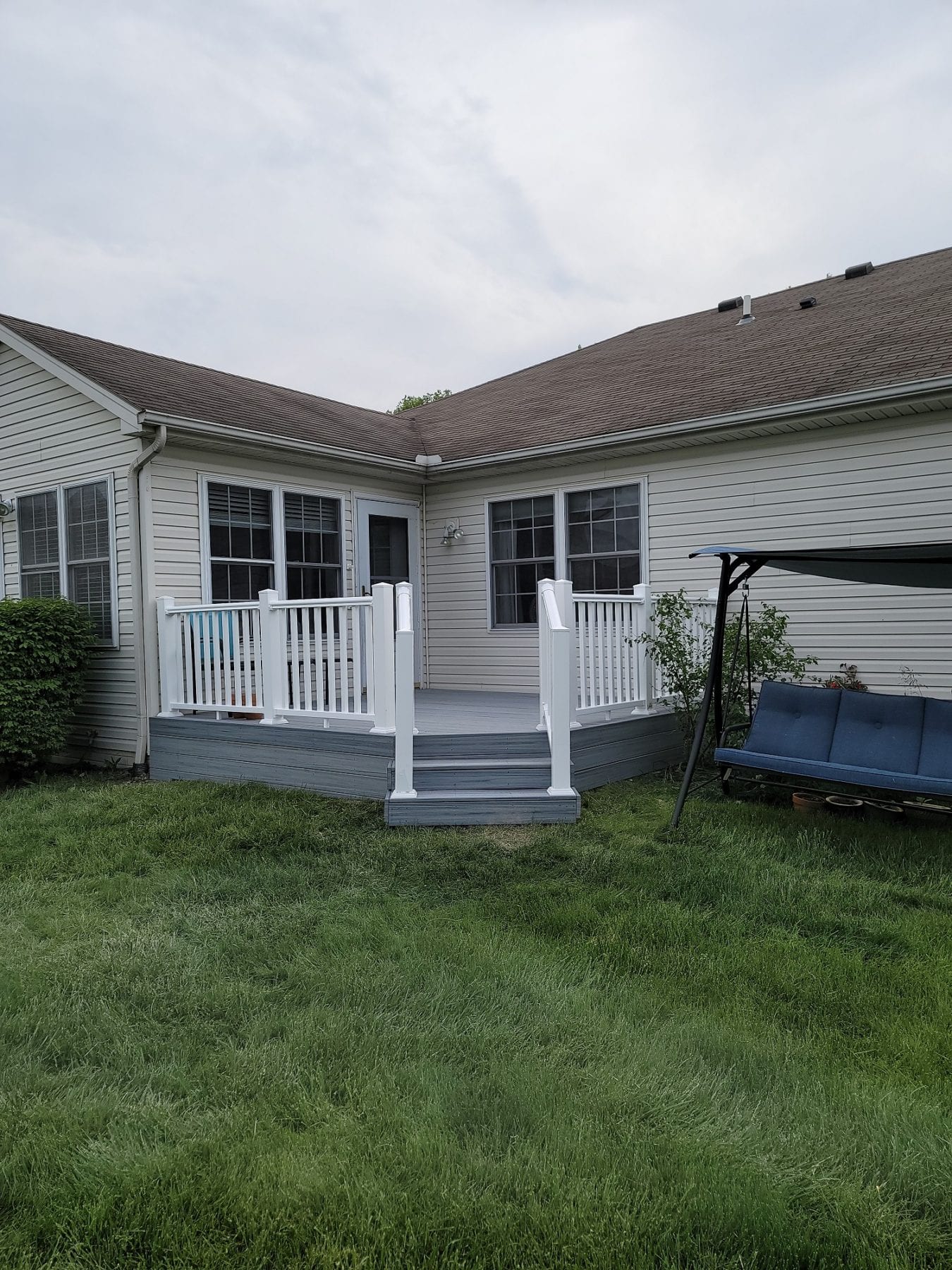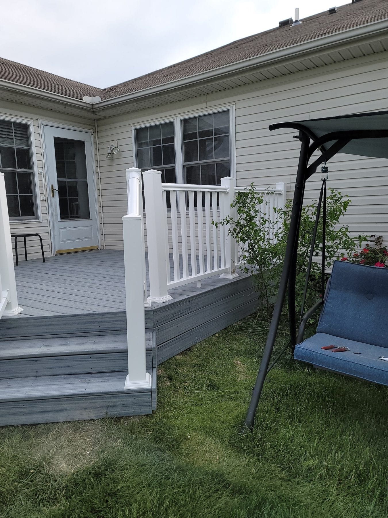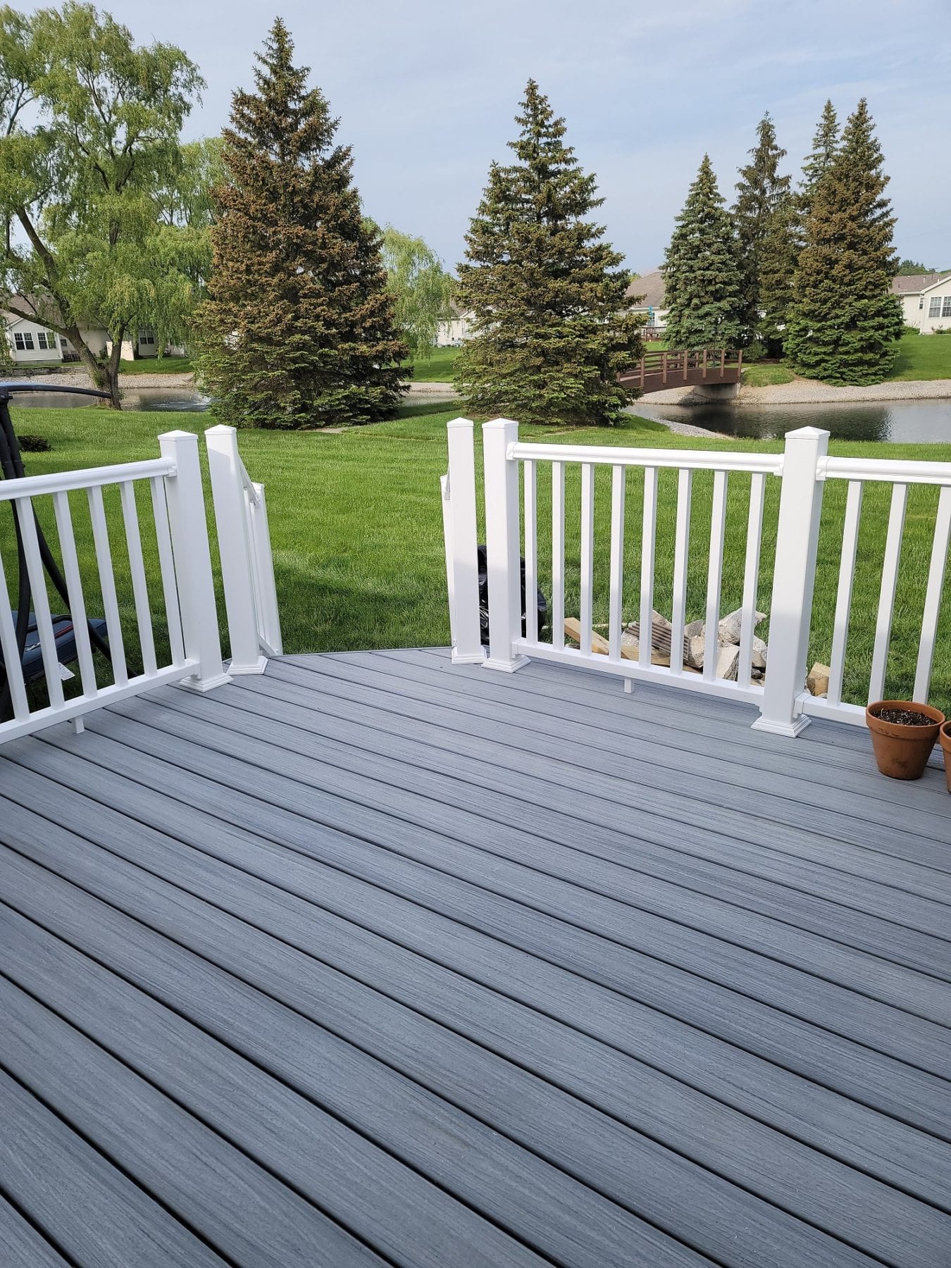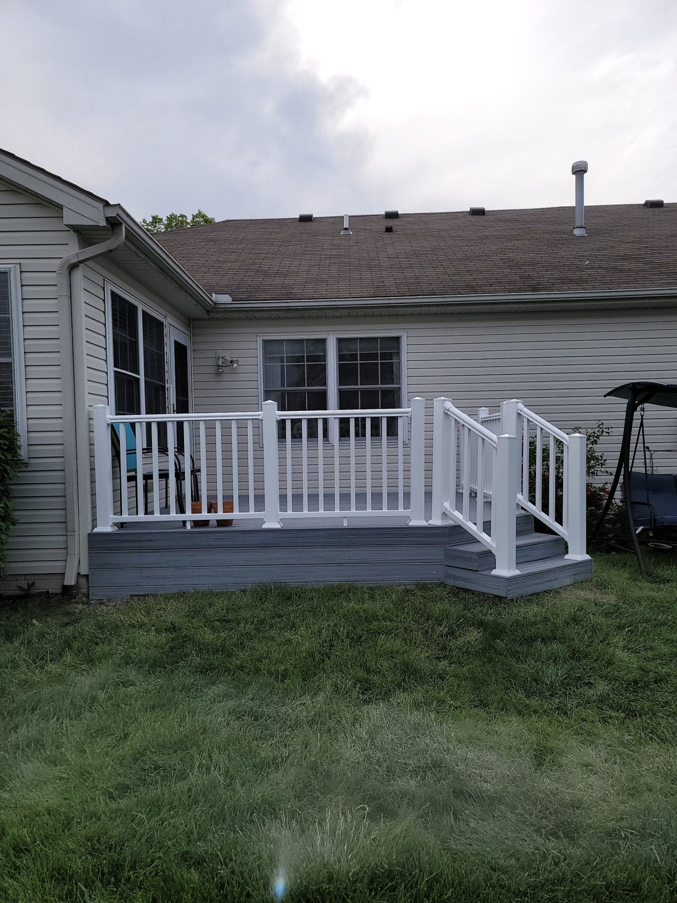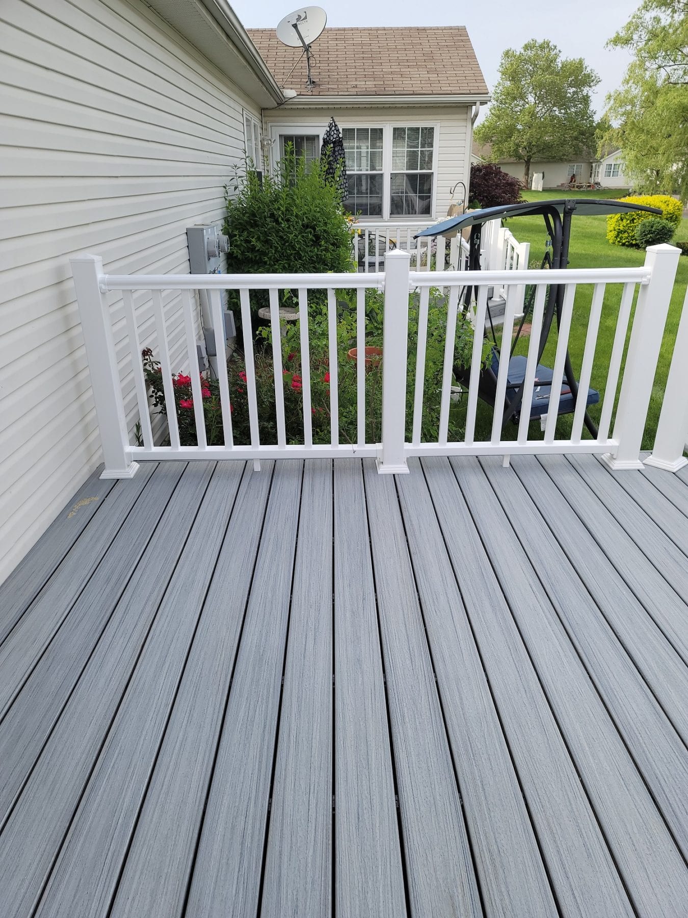 The gray composite deck boards paired perfectly with the white composite handrails. The deck met the exact needs of our client, which was our goal. Different clients always have different needs. Numerous color and design options exist when it comes to composite decking. You can even purchase handrails that match the color of the decking in certain brands. Take some time to browse around and find the perfect look for your home. Let us know what you find and how we can help. Not sure what you are looking for? Give A+ Home Improvements a call! We will help design, source and build your dream space exactly the way you have envisioned it.