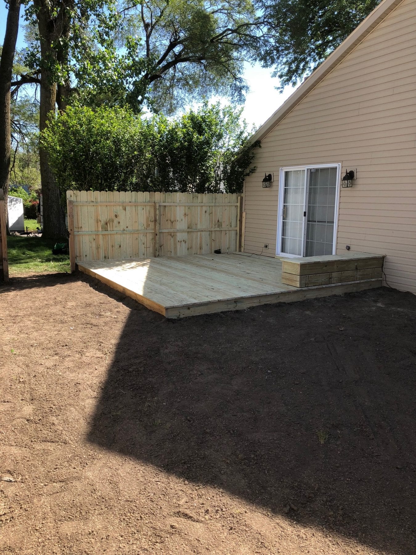 After finishing the installation of the deck, we proceeded to grade the back yard to allow the proper fall away from the home. We also installed a small section of privacy fencing to finish off the new deck. While not a huge space, the deck added a cozy spot for our client to entertain for years to come.