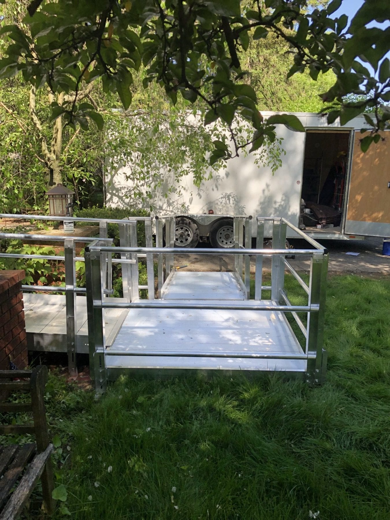 Our client needed a temporary structure to accommodate injuries sustained from a vehicle incident. This aluminum handicap ramp provided the perfect fit for their needs. When installing a ramp, be sure to check with local jurisdictions regarding the available options for construction and zoning. Every locality has their own bylaws that affect what types of structures can be built, and give guidelines to how they are built. A wood permanent ramp can be built in a way to create a stylish, yet functional, addition to your home. Whether you need a ramp, deck or pergola, give A + Home Improvements a call to start planning your project today!
