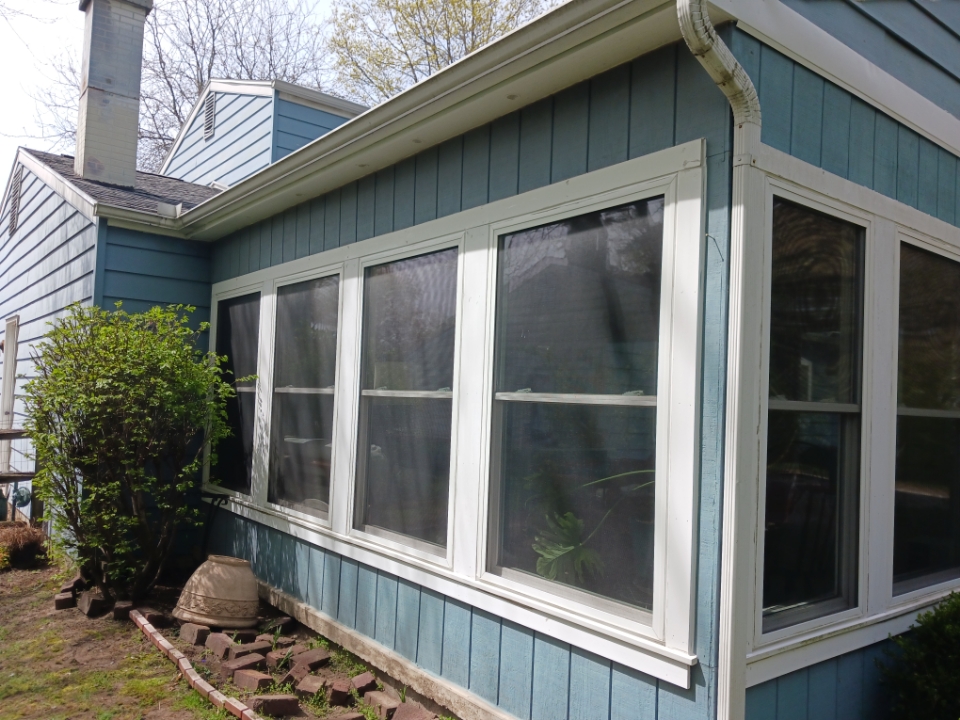 This last project entailed removing old, worn out and cracking sealant around the exterior of windows in the sunroom. Our client wanted to touch up the paint on the unit, but obviously didn’t want to paint over failing caulking. We dug the old stuff out and properly sealed up the exterior.