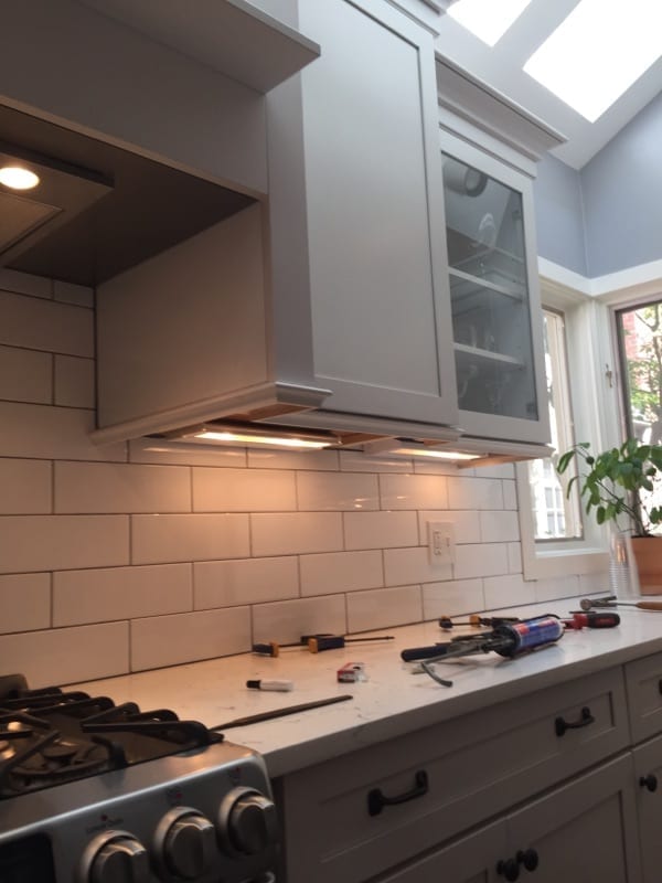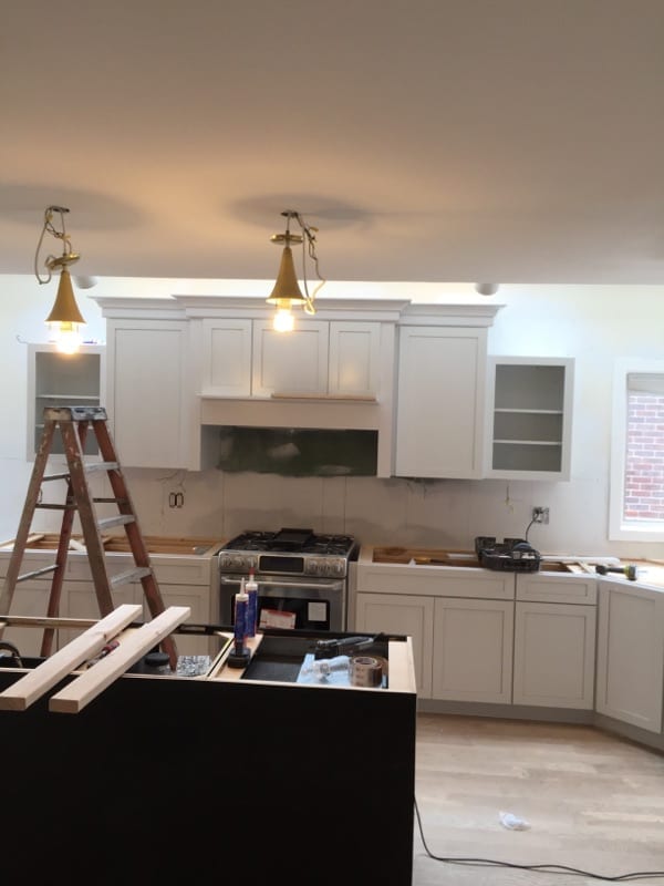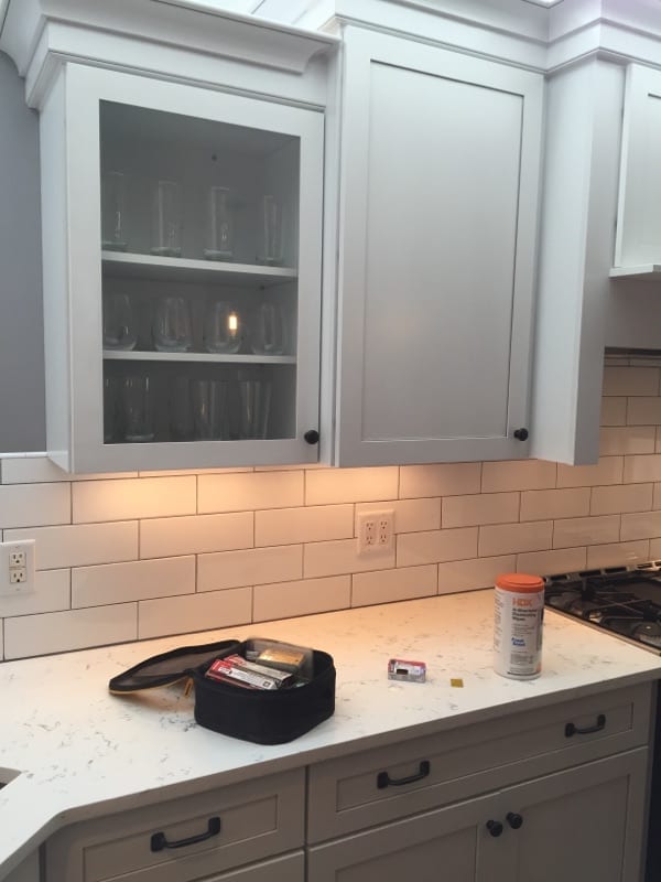 Kitchen transformation in progress!! Anyone that has undertaken a kitchen renovation project knows this stage all too well. These pictures show not only the awesome potential that this kitchen has, but also the steps still needed to bring it all to fruition. Observe how the castled look of the cabinets really makes them jump off the wall. The simple yet elegant subway tile splash pulls it all together!