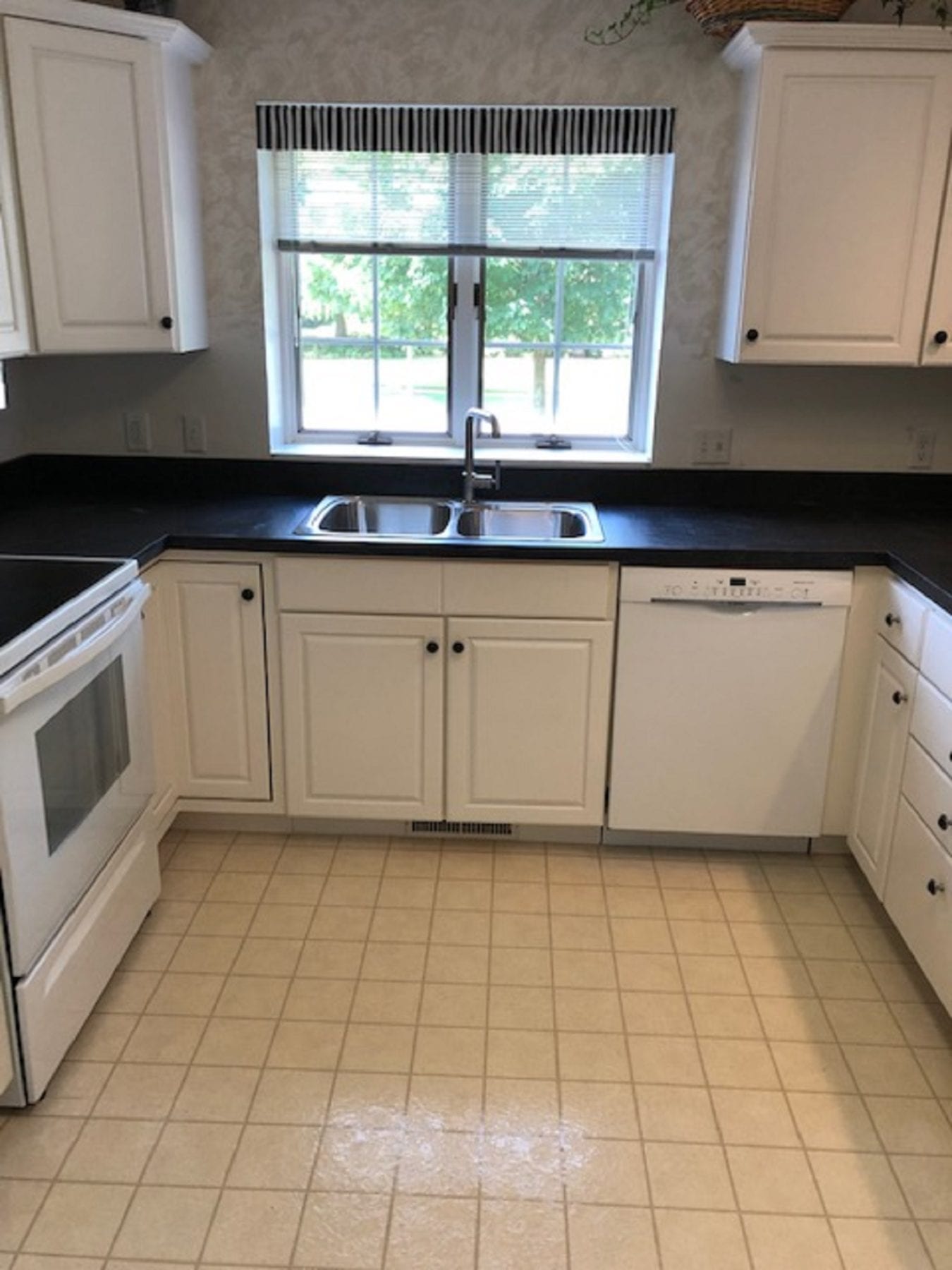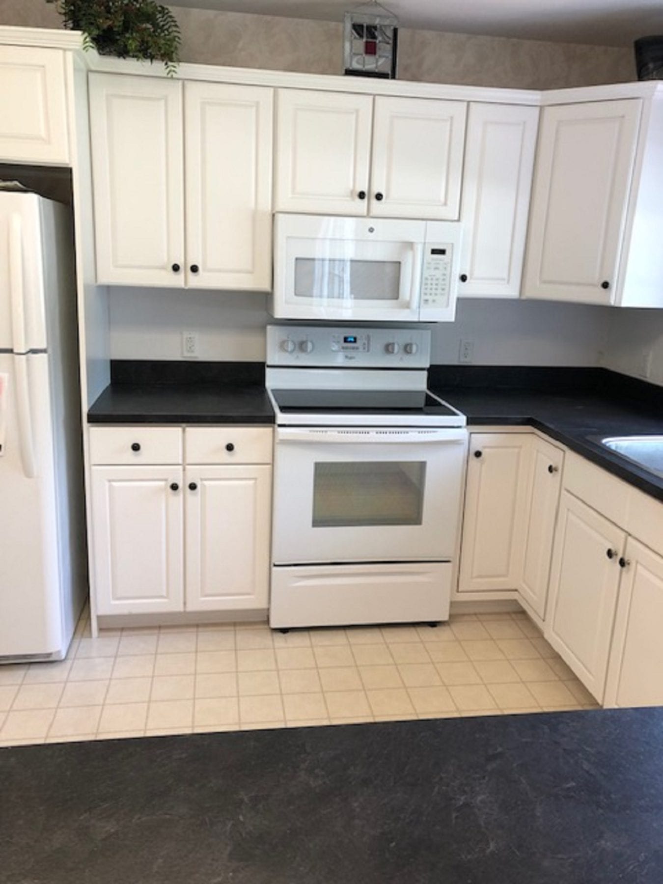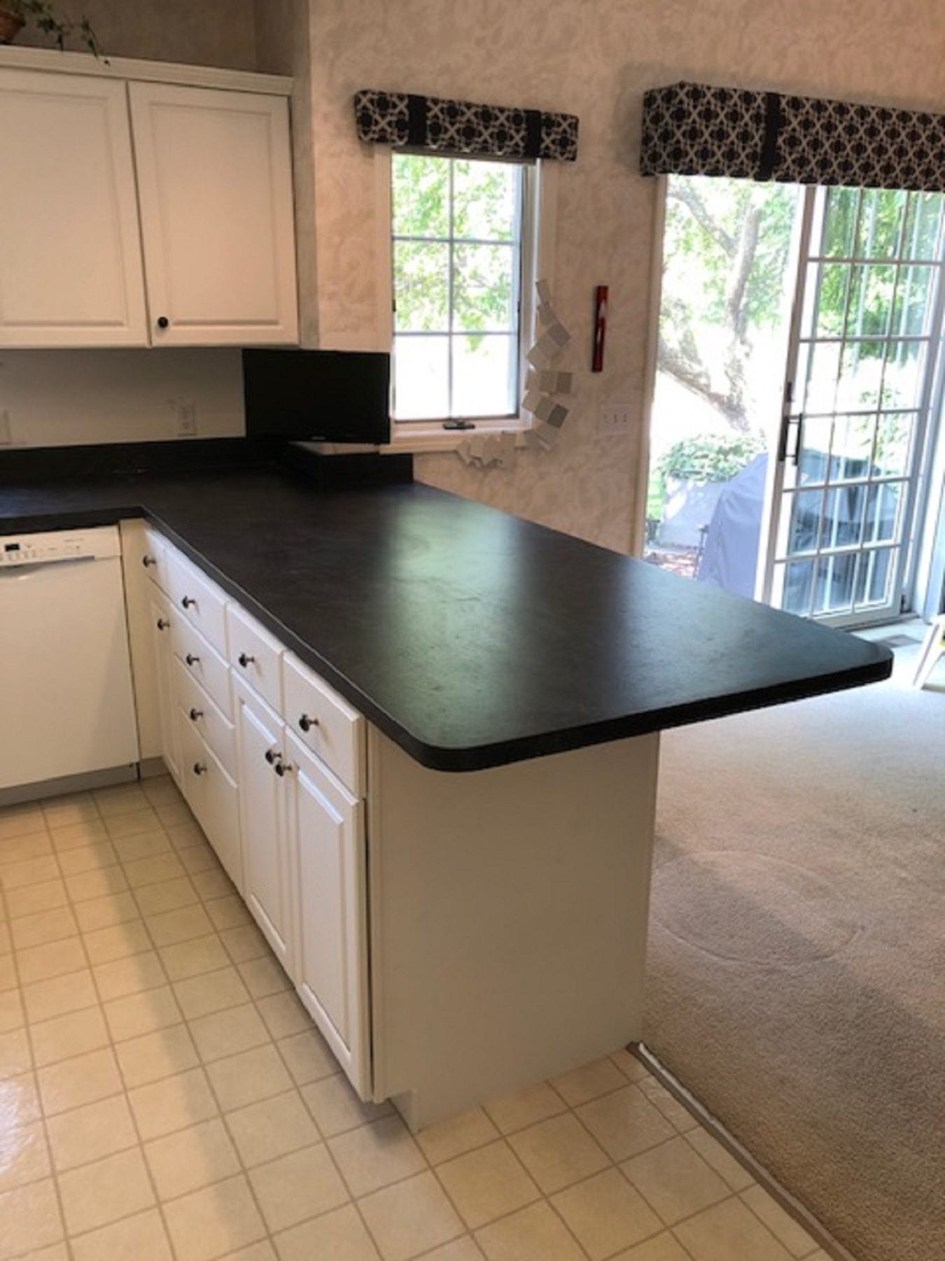 I know, typically the words “laminate tops” brings to mind cheaply built tops that are unattractive. This is no longer the case. Laminate products have come a long way, and provide a viable option for any homeowner. With multiple colors, designs and textures, you are sure to find a winner! Our client wanted to update her counter tops without the cost of quartz or granite. She chose a beautiful dark top that perfectly matched for her kitchen.