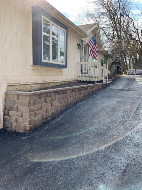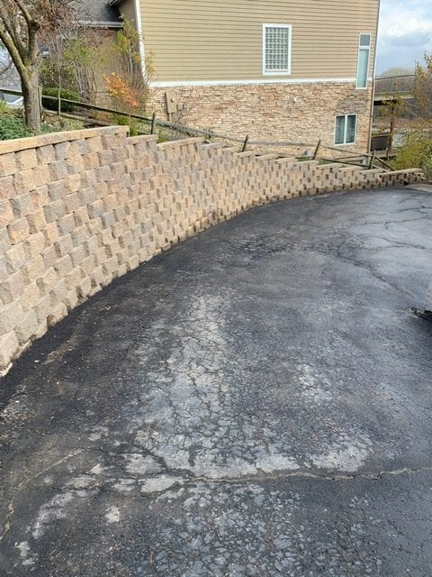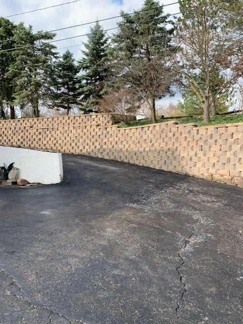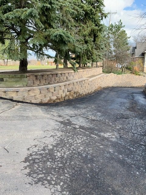 The left side of the driveway contained upper and lower tiers to the wall, while the right side contained only one. To break in up a bit, our client chose to change the block style on either side. The project turned out beautifully, and our client loved their large retaining wall! We enjoyed tackling this project, and working with the client proved to be extremely easy.