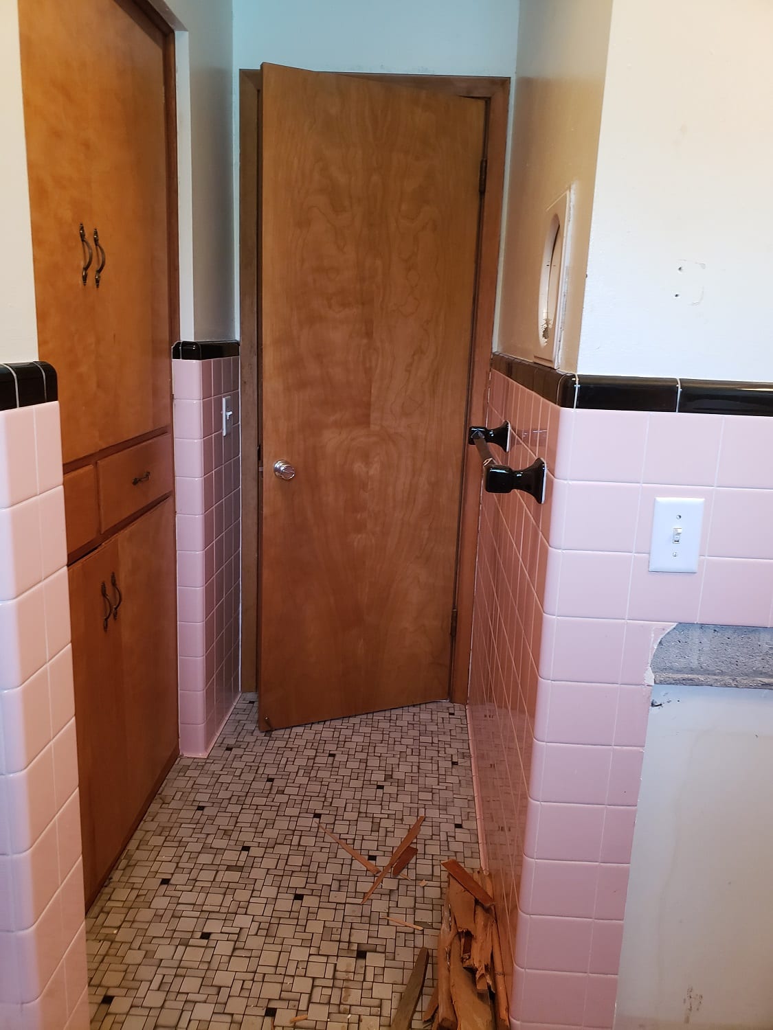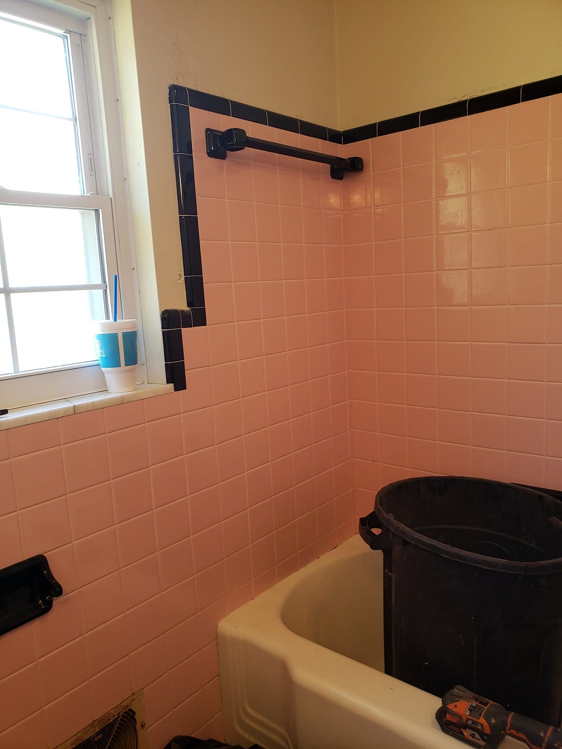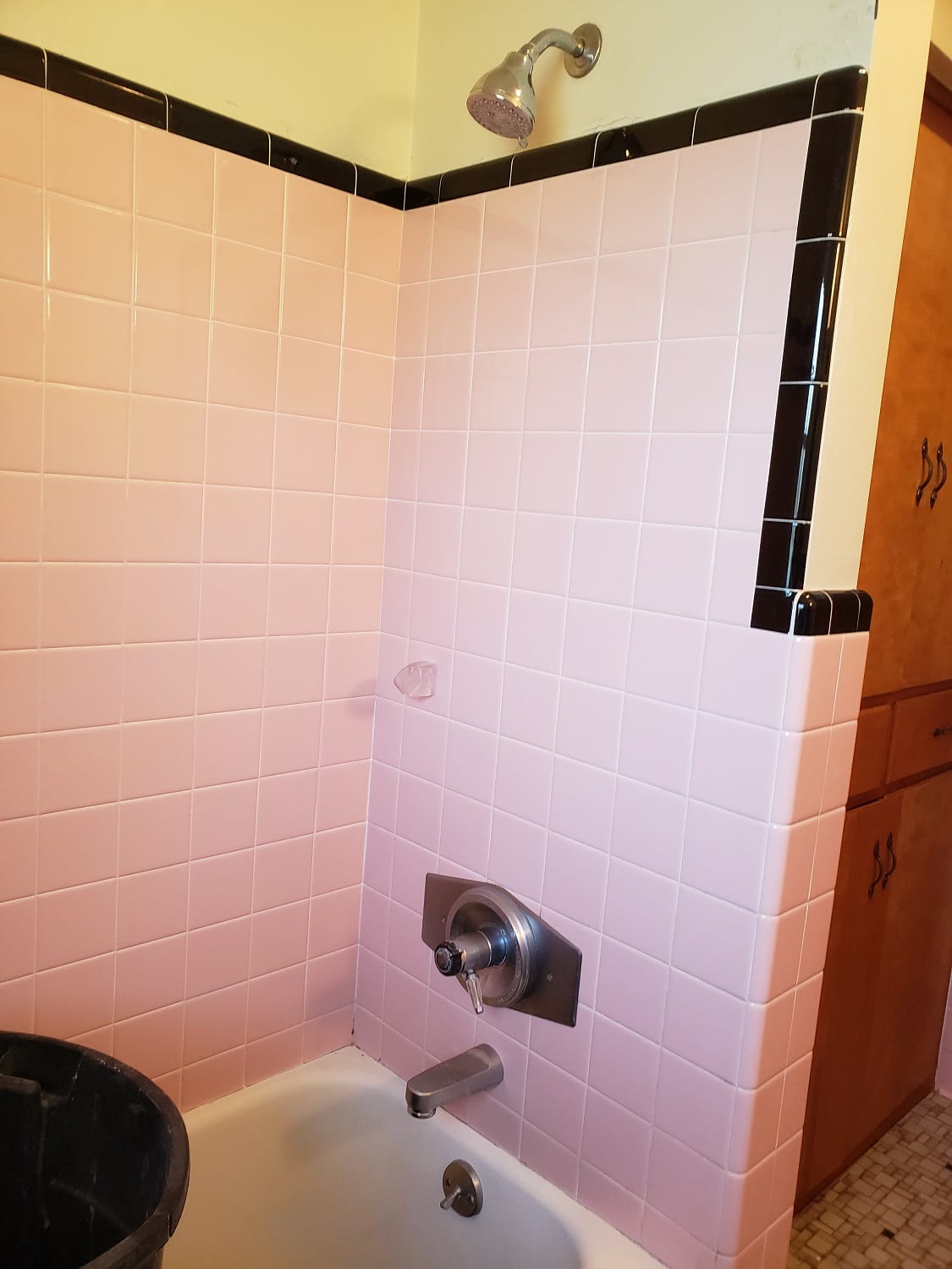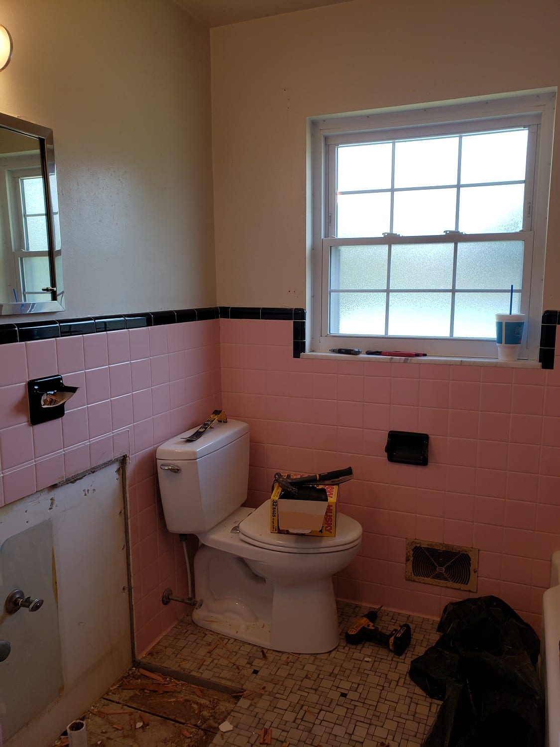 We have all seen dated bathrooms, right? Our client was ready to lose the pink tile! Typically, bathrooms from decades ago with the hints of blue, green, pink and even gold are actually in good shape. The only downfall is that they are typically rough on the eyes. Our client wanted to update the bathroom entirely, and we were more than happy to help out with the task.