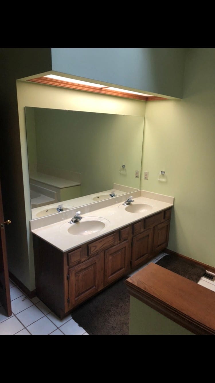 This bath renovation project created a challenge, and it was a blast to tackle!! In the pictures above, you can see old, green space where the original shower used to be. Our client desperately wanted a linen closet, so we deleted the shower and framed in a closet with custom shelves to accommodate everything that they needed. As you can see in the after picture, the closet looks as if it had always been there, which is what we strive for.