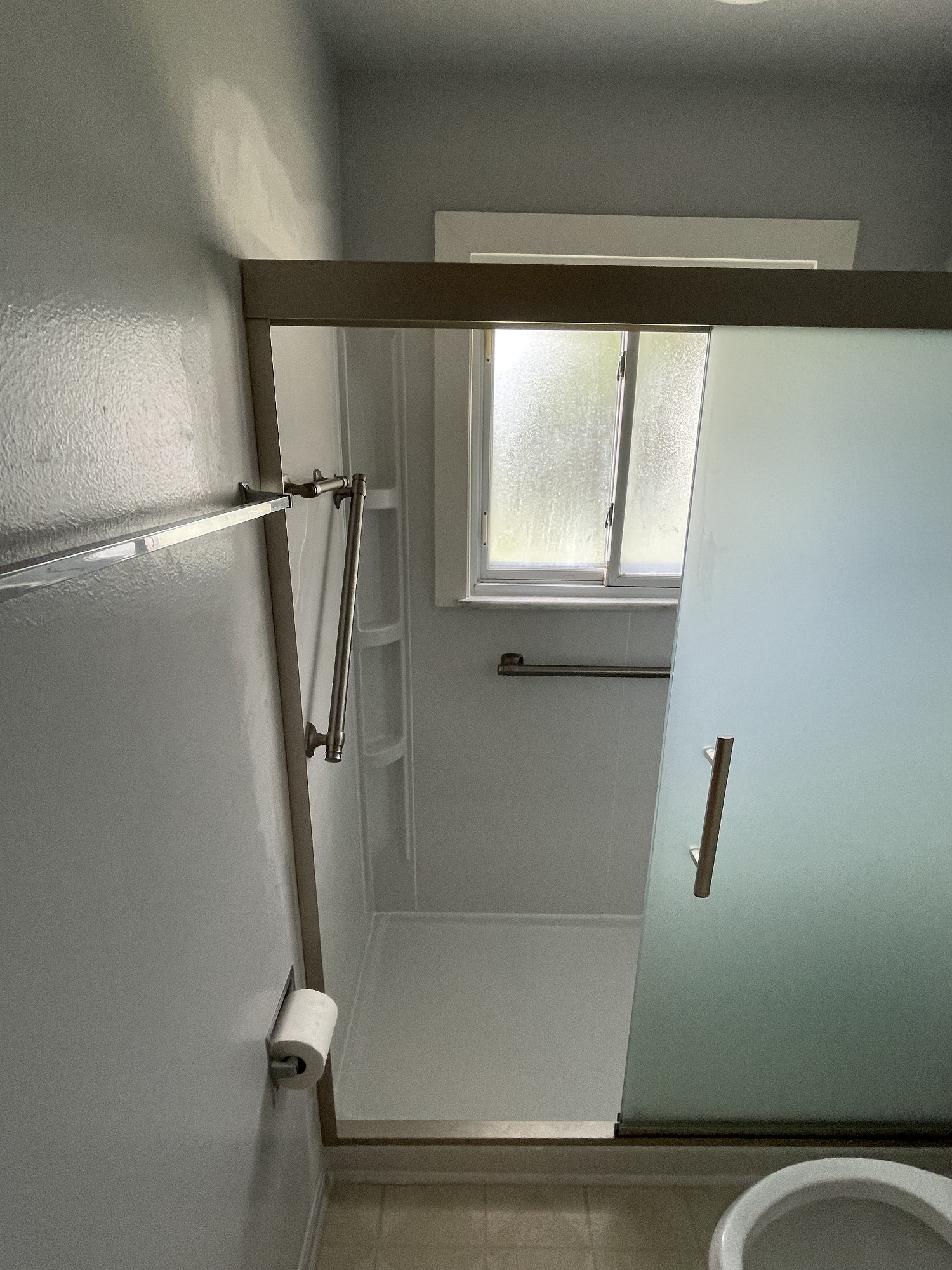 Our client wanted to keep the window, which allowed natural light to permeate throughout the space. To help prevent future moisture and rot issues, we installed composite trim around the interior of the window to finish off the enclosure. Once we completed the project, we cleaned up the job site and left so our client could enjoy their new shower.