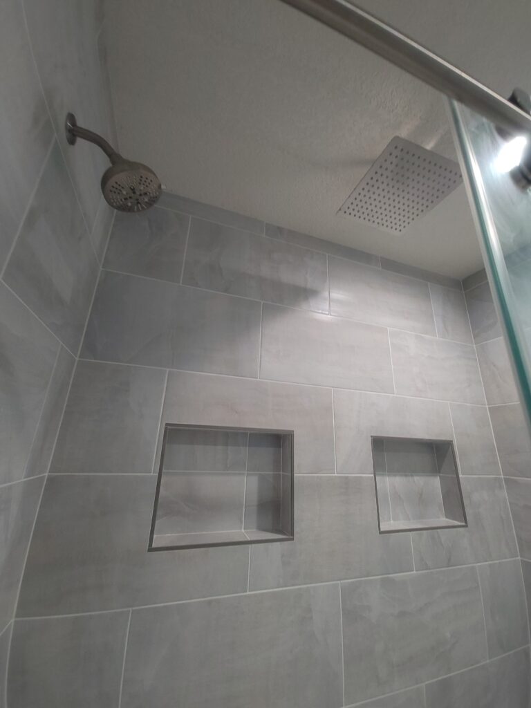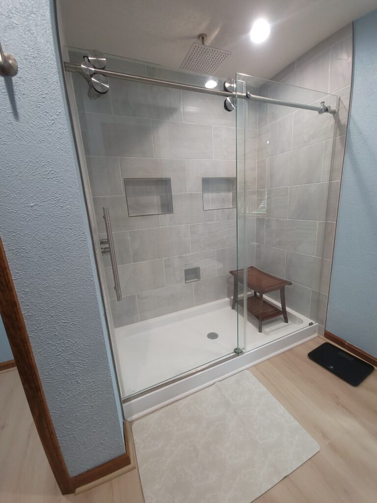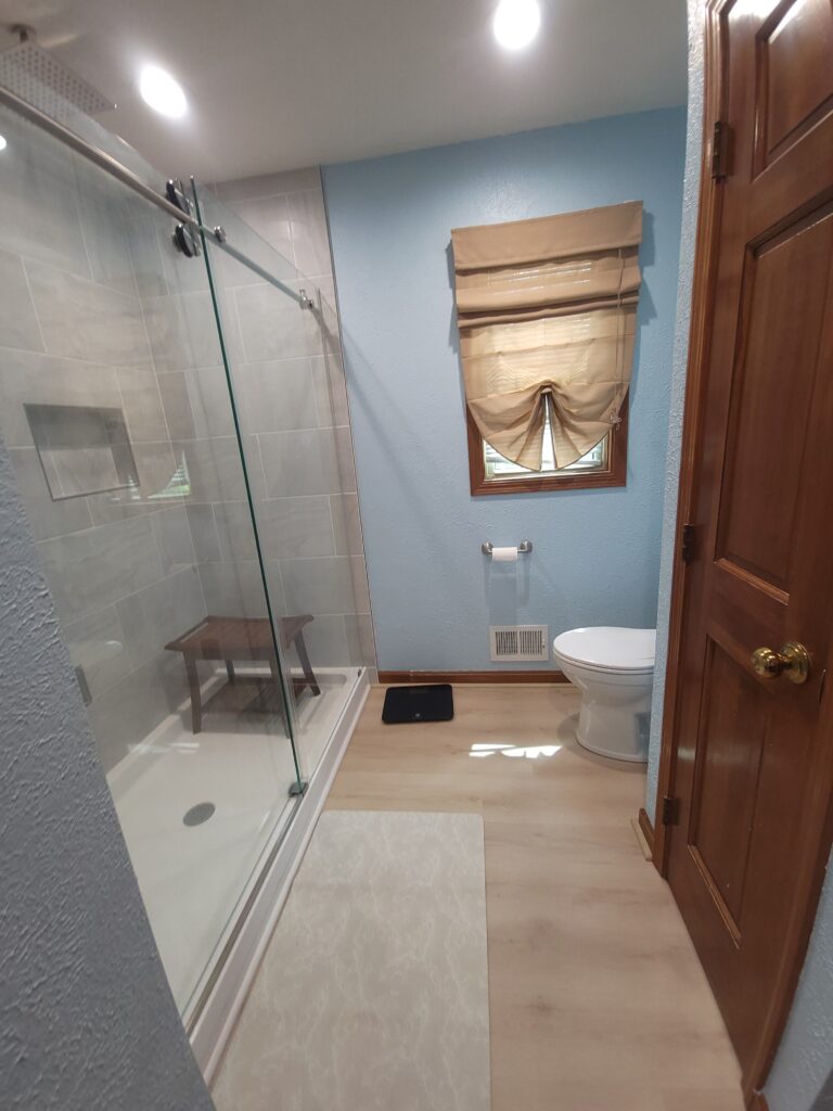 As you can see, the bathroom was fairly unattractive and laid out funny. In addition to the shower and linen closet, we also replaced the flooring in the bathroom, master bedroom and dining room with a beautiful luxury vinyl plank. However, definitely stood out as the focal point of the renovation. In addition to providing much more space, The renovation also brightened the entire master bathroom. Take a look at the results: