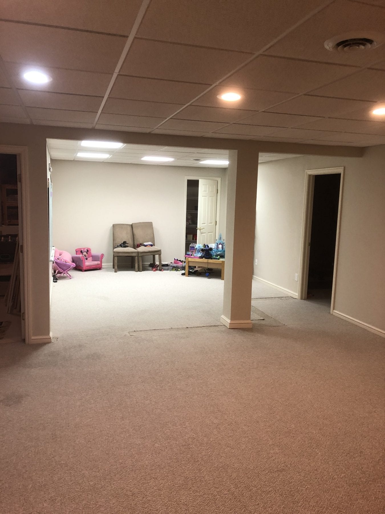 Removing those walls create a much more open feeling in this basement space. The results thrilled our client, and we loved helping out! Give A+ Home improvements a call to get your project started today!
