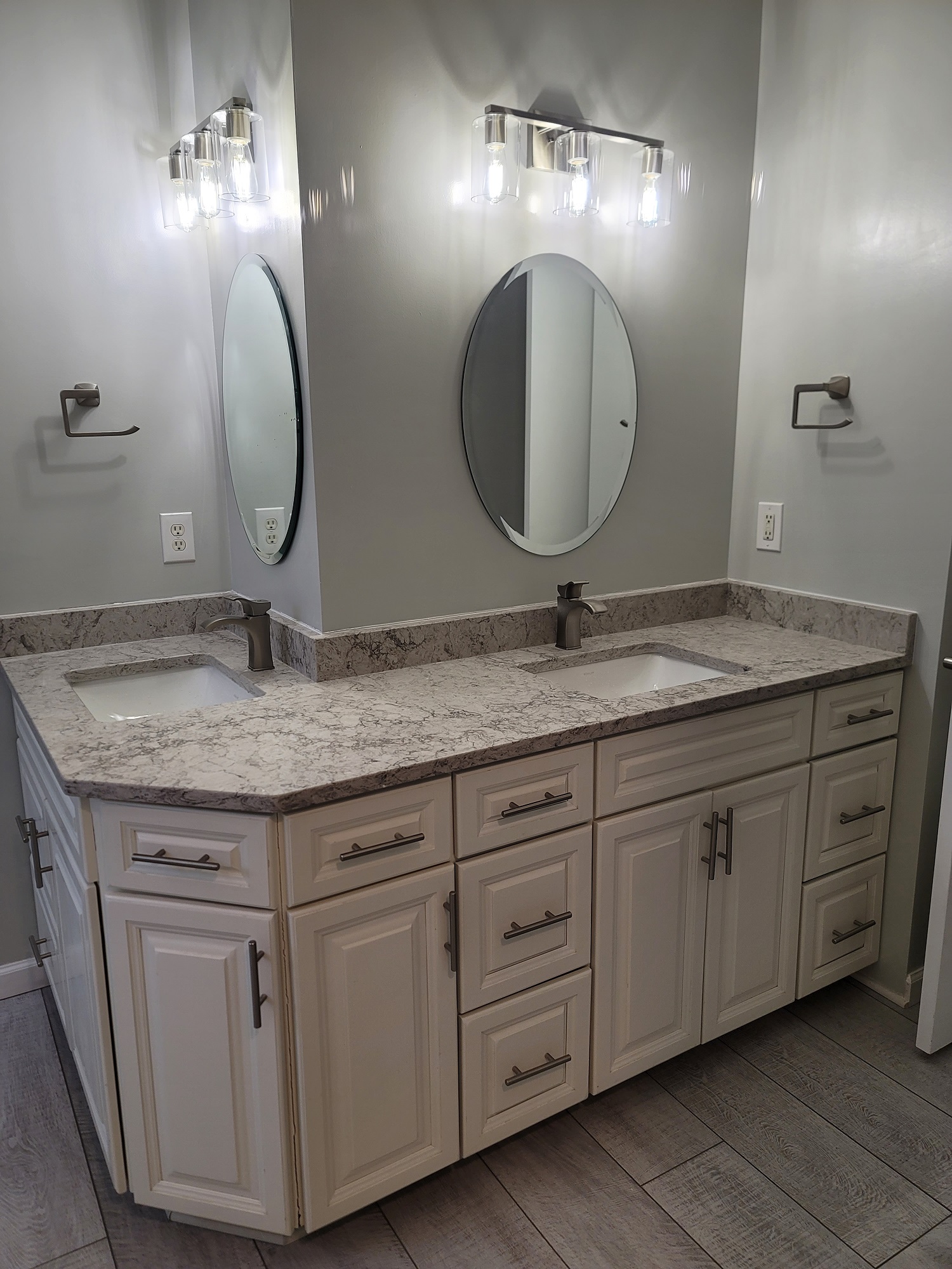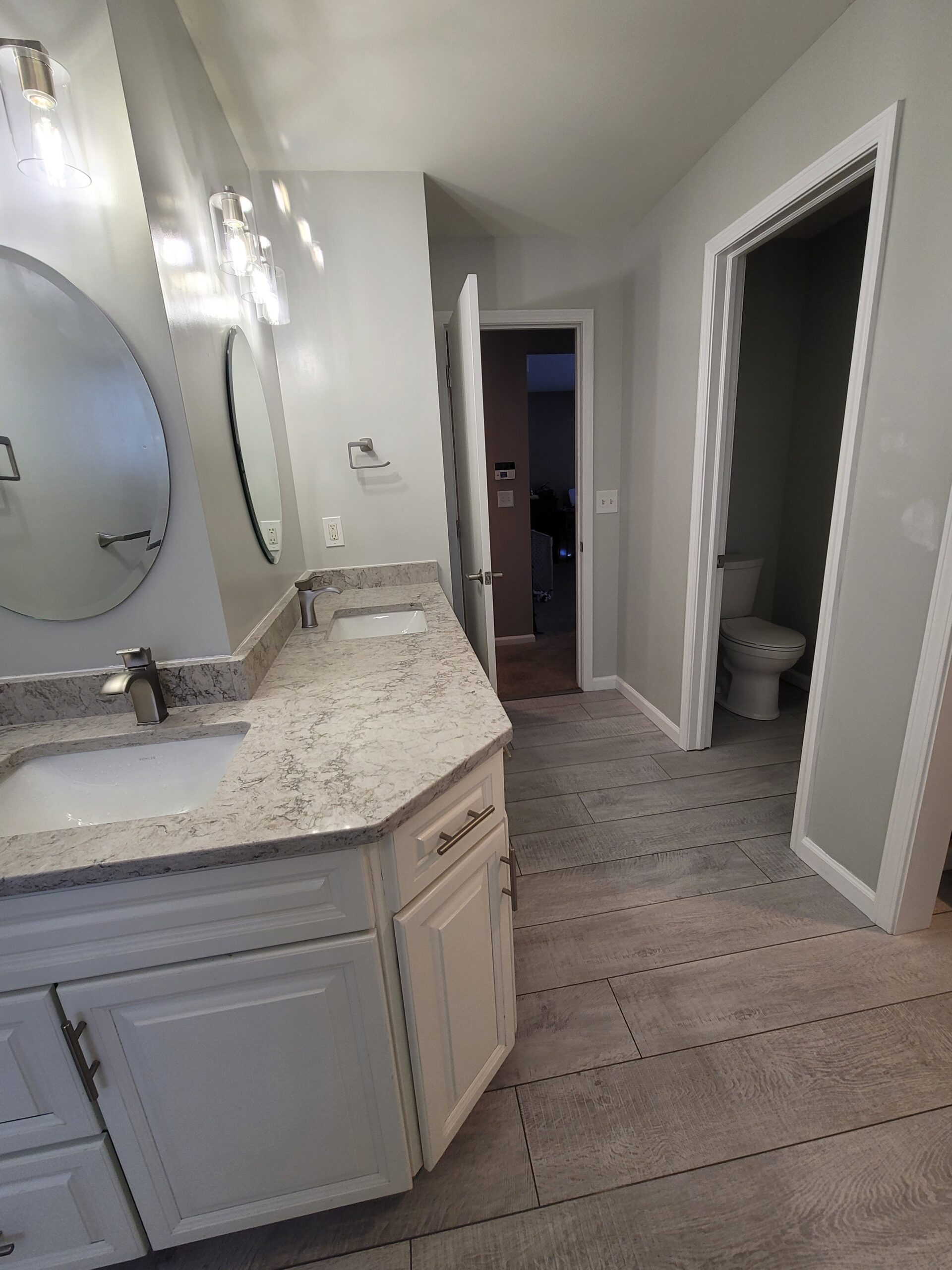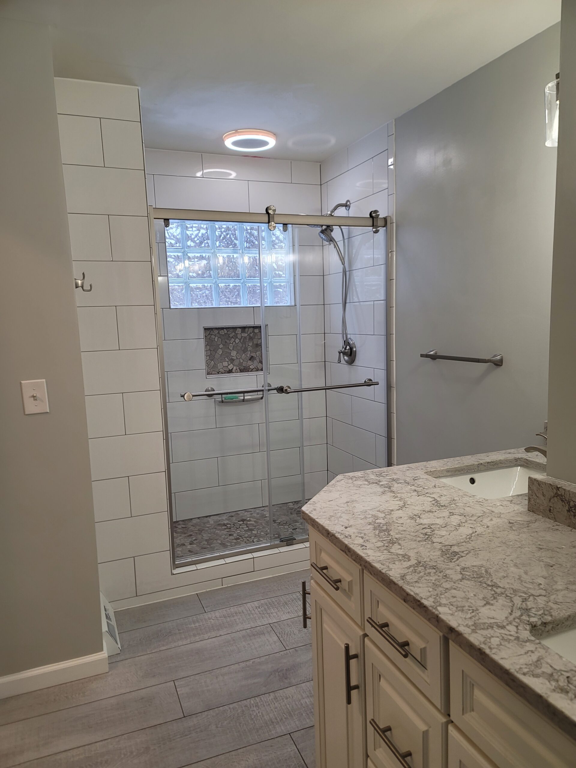 You can barely recognize the old tub area, and the window provided the perfect touch to the new space. The vinyl plank flooring paired seamlessly with the color selection of our client, as did the new vanity top. The renovation thrilled our clients, and we enjoyed helping every step of the way! What project do you want to tackle? Do you want to replace a tub with a tiled shower? Give A+ Home Improvements a call to get your project started today!