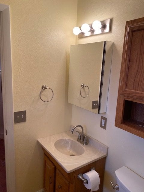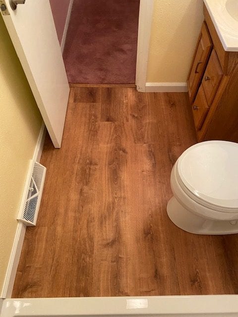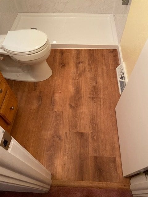 The entire bathroom screamed “Dated!” Our client met with our designer, and they picked out all of the styles and finishes that were perfect for them. For the shower, our client wanted an upscale look without the headache of maintaining tile. We decided to install a solid surface surround called Flexstone, and the results didn’t disappoint. We also updated the flooring with water proof vinyl plank. Last touch was changing out the other dated fixtures in the room.