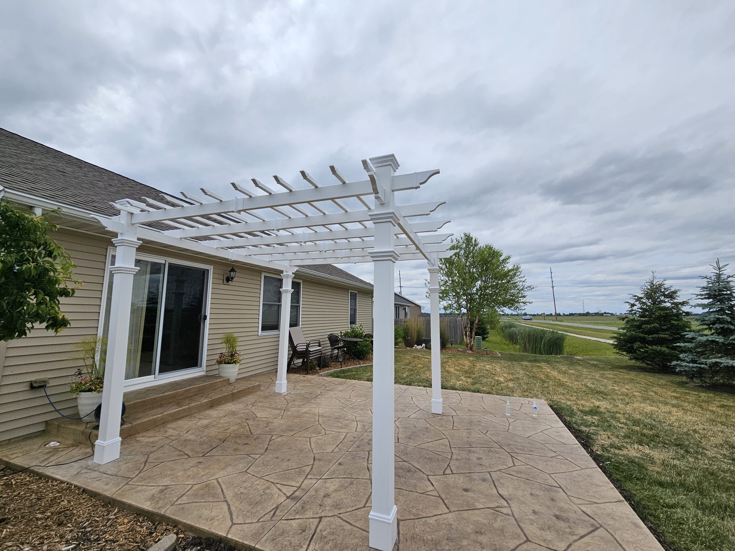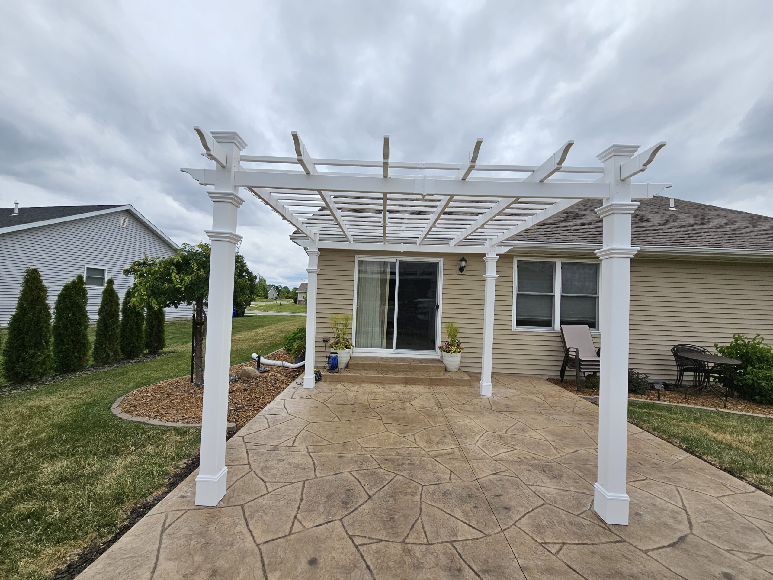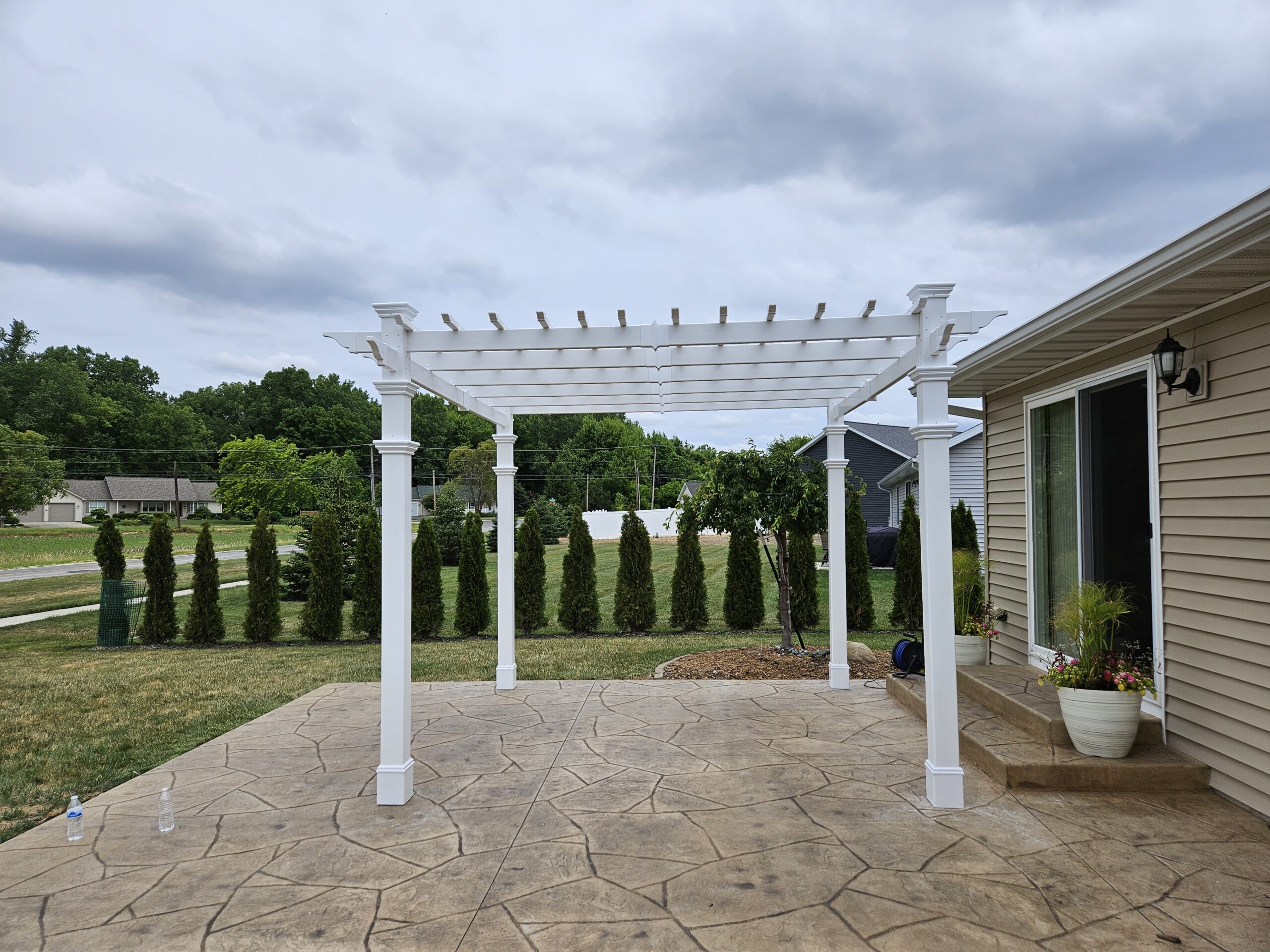 Our client was thrilled with the results. A myriad of options exist when it comes to designing your perfect back yard space. This means you can have your own custom stamped patio with a pergola. The talented crew completing the installations would love to add their expert installations to your back yard. Give A+ Home Improvements a call to go over your options today!