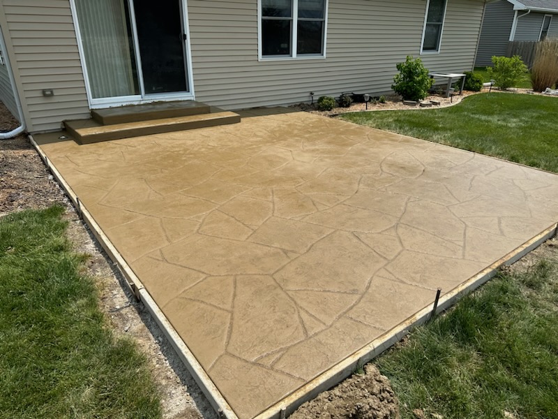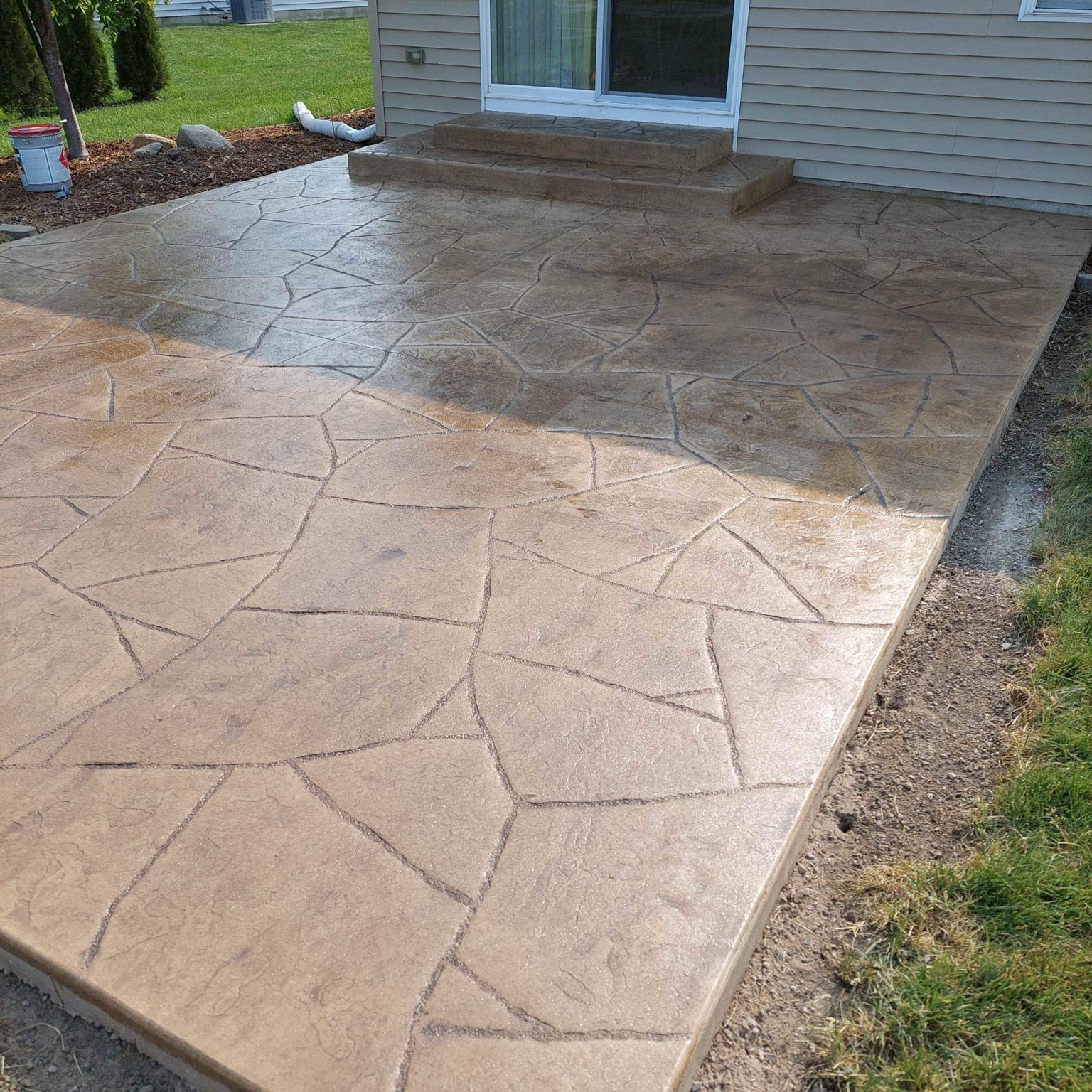 Summer fun continues to roll on! Our client’s have been tackling outdoor projects left and right to add versatility to their back yards. This next client desired to upgrade their space by installing a stamped patio with a pergola. Stamped concrete patios come in all shapes and sizes. We met with our client to go over stamp designs and colors, as well as the new patio layout. Once we had those decisions locked down, we proceeded to go over pergola options to pair with the new patio. Stained wood pergola’s provide a classic appeal, but many clients decide to opt for maintenance free composite options. We honed in on the perfect choice and got ramped up to start the project. First up: THE STAMPED PATIO!