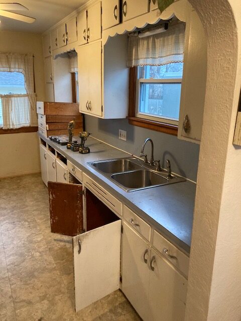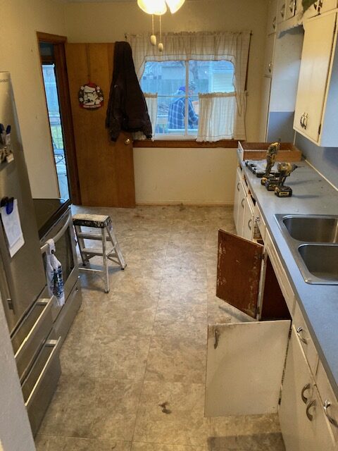 Hey everybody, welcome back to another A+ Home Improvement’s project! This year has seemed to fly by, and we have enjoyed tackling a number of different projects. This time around, our client needed a total kitchen transformation. Cabinets, counter tops and flooring needed to be updated, along with the fixtures. This kitchen space definitely showed its age, and our client desperately desired a kitchen that they looked forward to walking into on a daily basis. Here is what we started with: