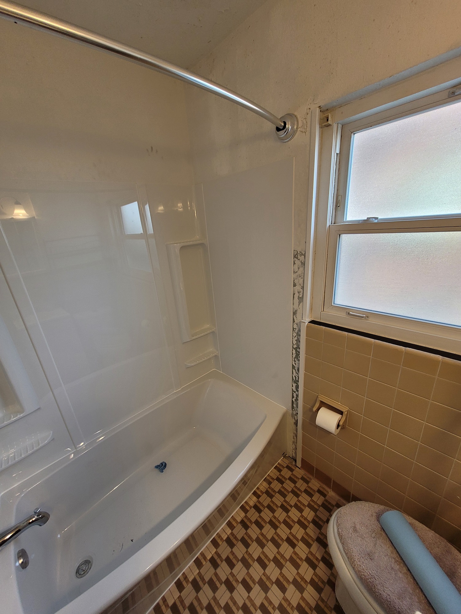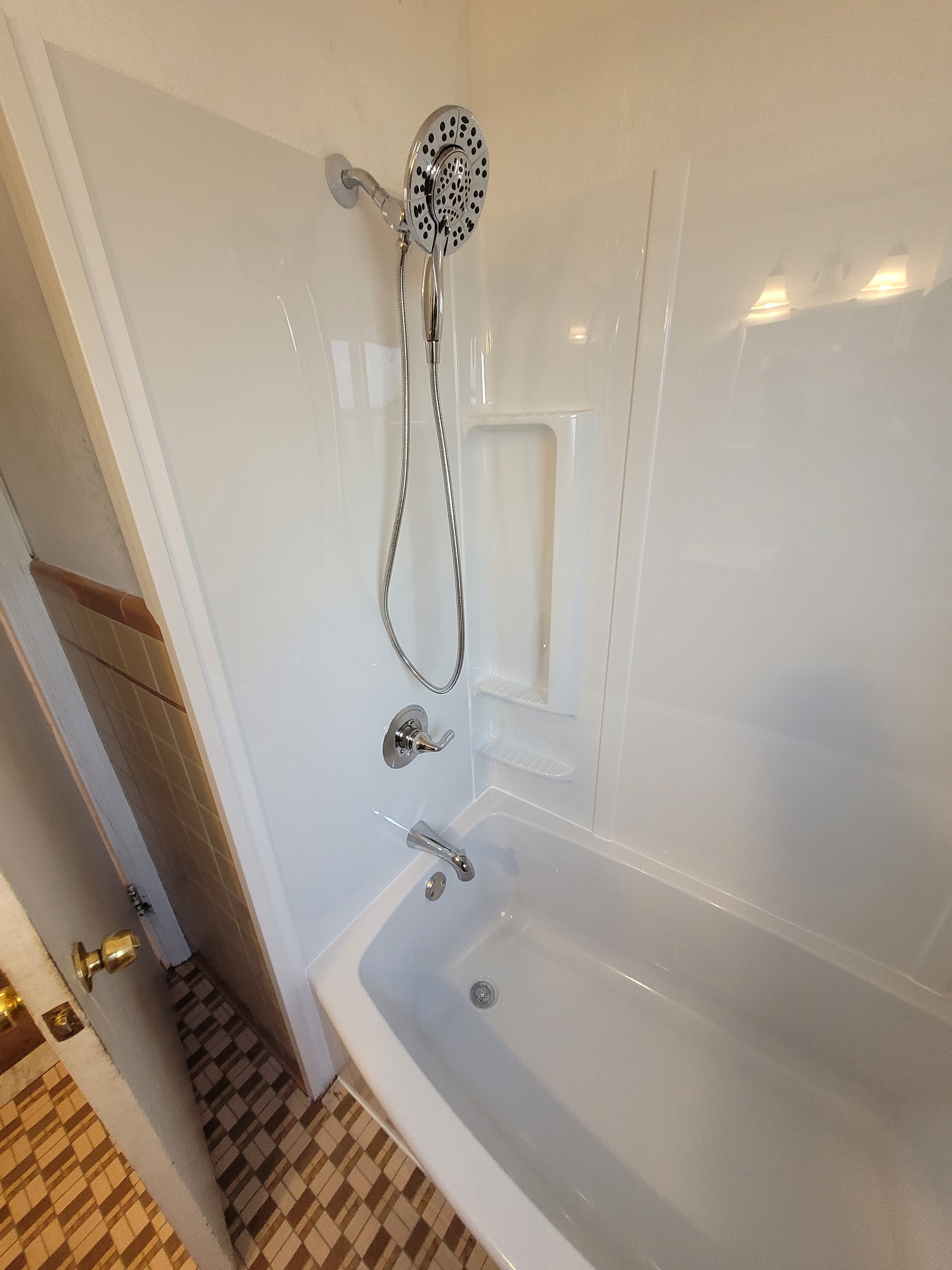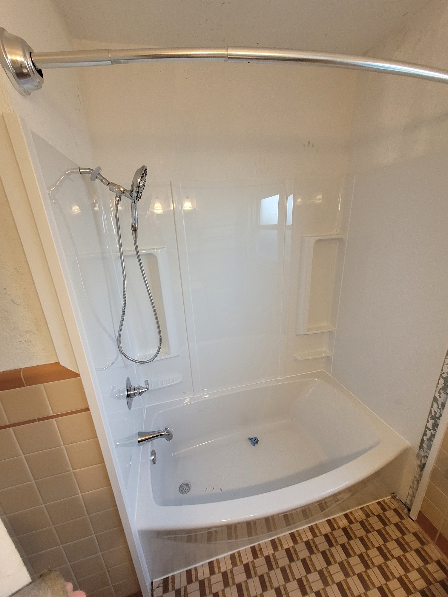 Not all bathroom projects are huge. Many clients desire to simply replace their bath tub enclosure or fixtures in an effort to provide a small facelift. This client’s bathroom provided the obstacle of replacing a tub surrounded with thick set tile. Many bathrooms in our demographic have tile similar to this. When these situations arise, we strive to find the right solutions for our clients. Sometimes budgets just don’t allow for the whole project, which is fine. We replace tub enclosures similar to this situation all the time. The goal is to complete the installation in a fashion that allows for further renovation down the line without affecting the new tub installation. Once out client selected the products they wanted installed, we went to work on the tub installation.