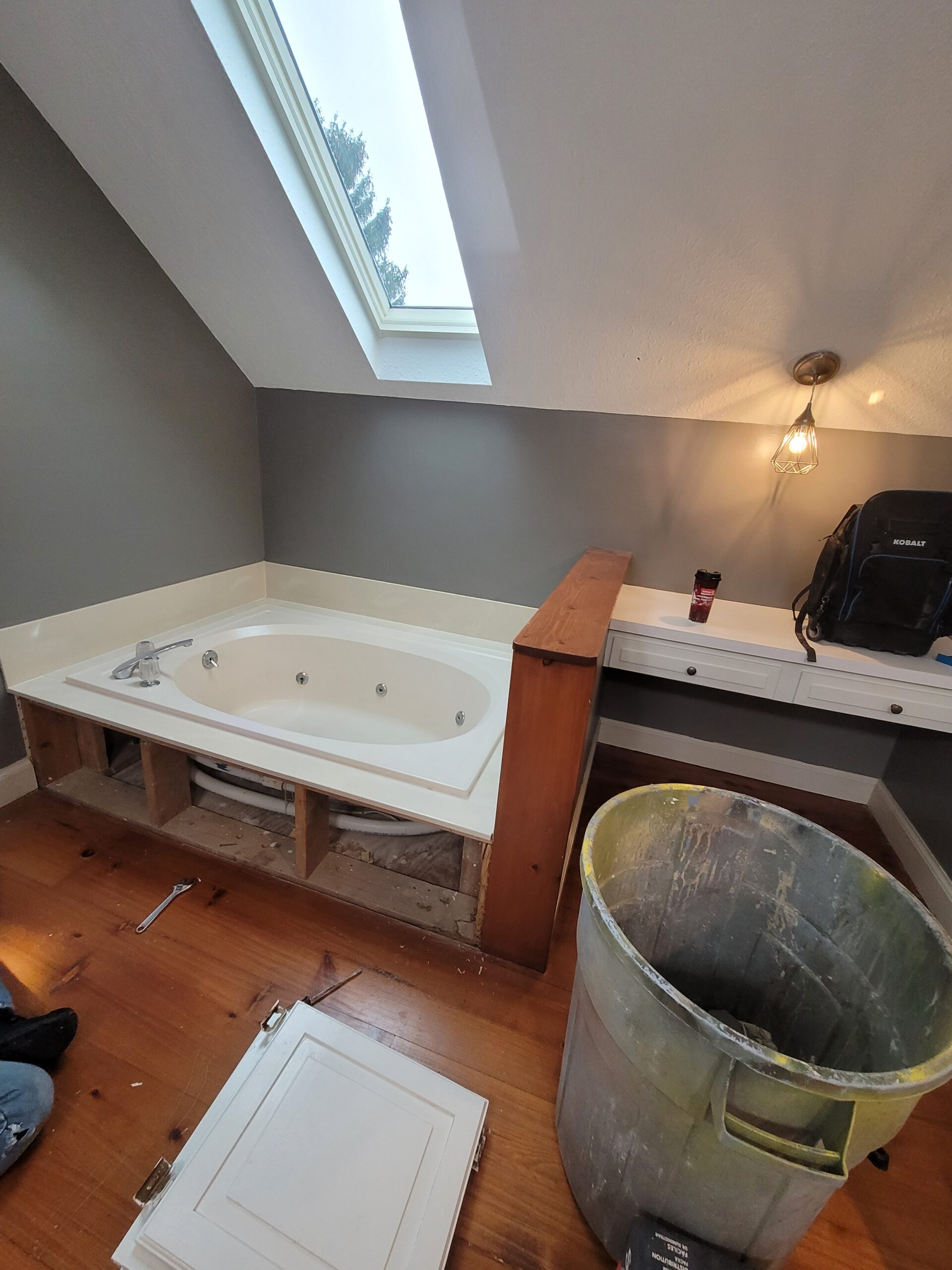 A+ Home Improvements tackled another awesome project recently. This time we helped a client renovate a uniquely shaped space in their master bathroom. The bathroom lacked storage space and featured an old jetted tub that needed to go. To accommodate a larger shower space, our client desired to change the tub to a custom tiled shower. The existing toilet room had a shower enclosure that was small and dated, so we deleted the shower and turned it into a functional linen closet space. While we updated the vanities and fixtures as well, the tiled shower remained the focal point of our project. Take a look at what we started with: