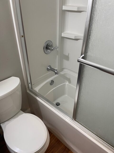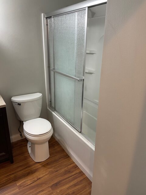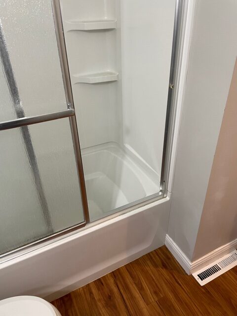Welcome back to another A+ Home Improvement project, everybody! This time around, our client needed a tub to shower transformation. While their existing bathroom space was perfectly functional, it did not cater to their everyday needs. Creating an easy to access bathroom space provides peace of mind for clients in these situations. Our client not only desired accessibility, but also wanted to transform the bathroom into a beautiful area that better represented their tastes. The first item that needed addressed was the current tub enclosure. Our client wanted a walk in shower with bench seating, and we knew exactly the perfect design. We helped the home owner with the product selection process, and prepared to turn their dreams into a reality. Let’s see what we started with: