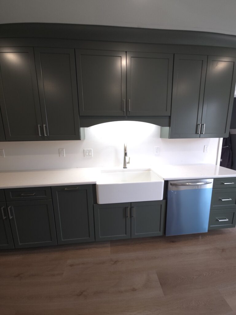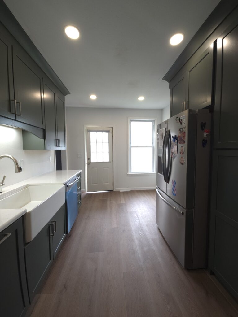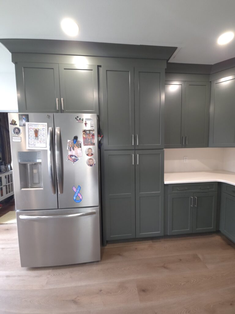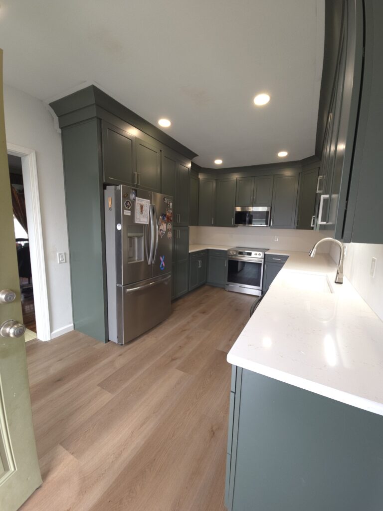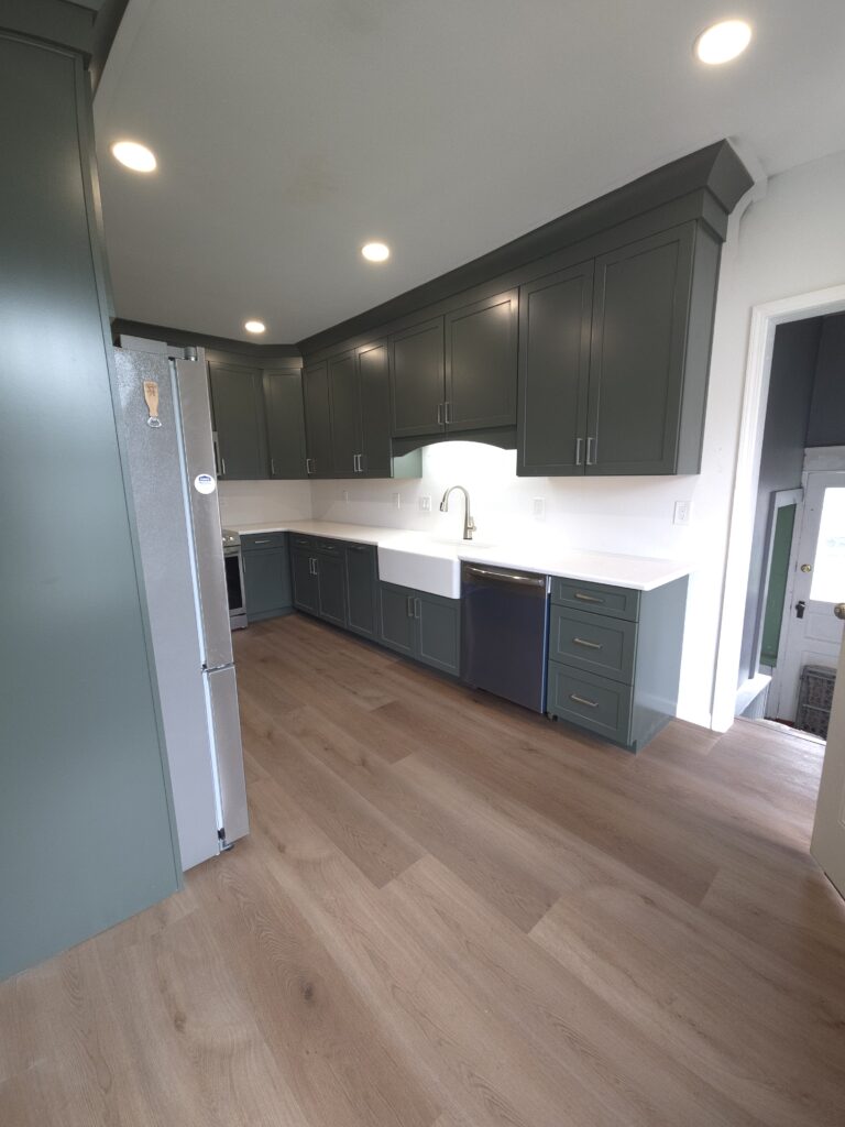 What a transformation! This literally does not look like the same kitchen. We installed a waterproof vinyl plank flooring that paired perfectly with the beautiful color of cabinets that our client selected. Remember that old chimney enclosure? Our new design made it disappear. We work with amazing designers and installers that strive to deliver the ultimate results for our clients. Do you need to update an old kitchen? Give us a call and put our team to work for you. We look forward to the challenge!