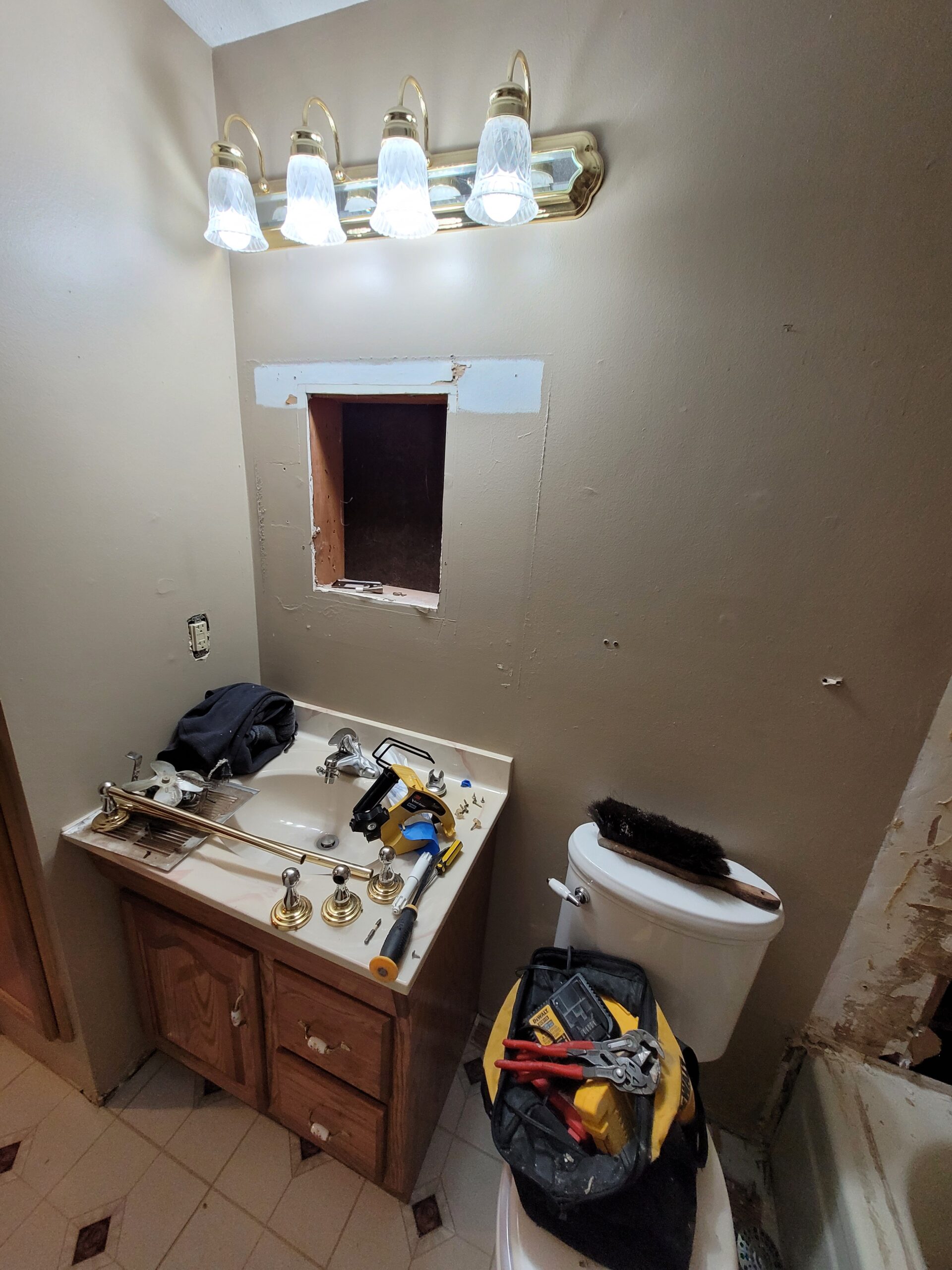 All homeowners have had a bathroom at some point in time that really needed a facelift. Bathrooms need to be maintained, but there comes a point when standard maintenance will no longer do the trick. Sometimes, you simply just need to update your bathroom. Our client desired to renovate their bathroom to modernize it some. While there was nothing necessarily wrong with the space, it had become difficult to clean and was showing its age. We renovated this client’s kitchen a few years ago, so they were well aware of how much the bathroom was about to change. We made it through the design and product selection phase, and were ready to rock and roll. The existing bathroom had to go!