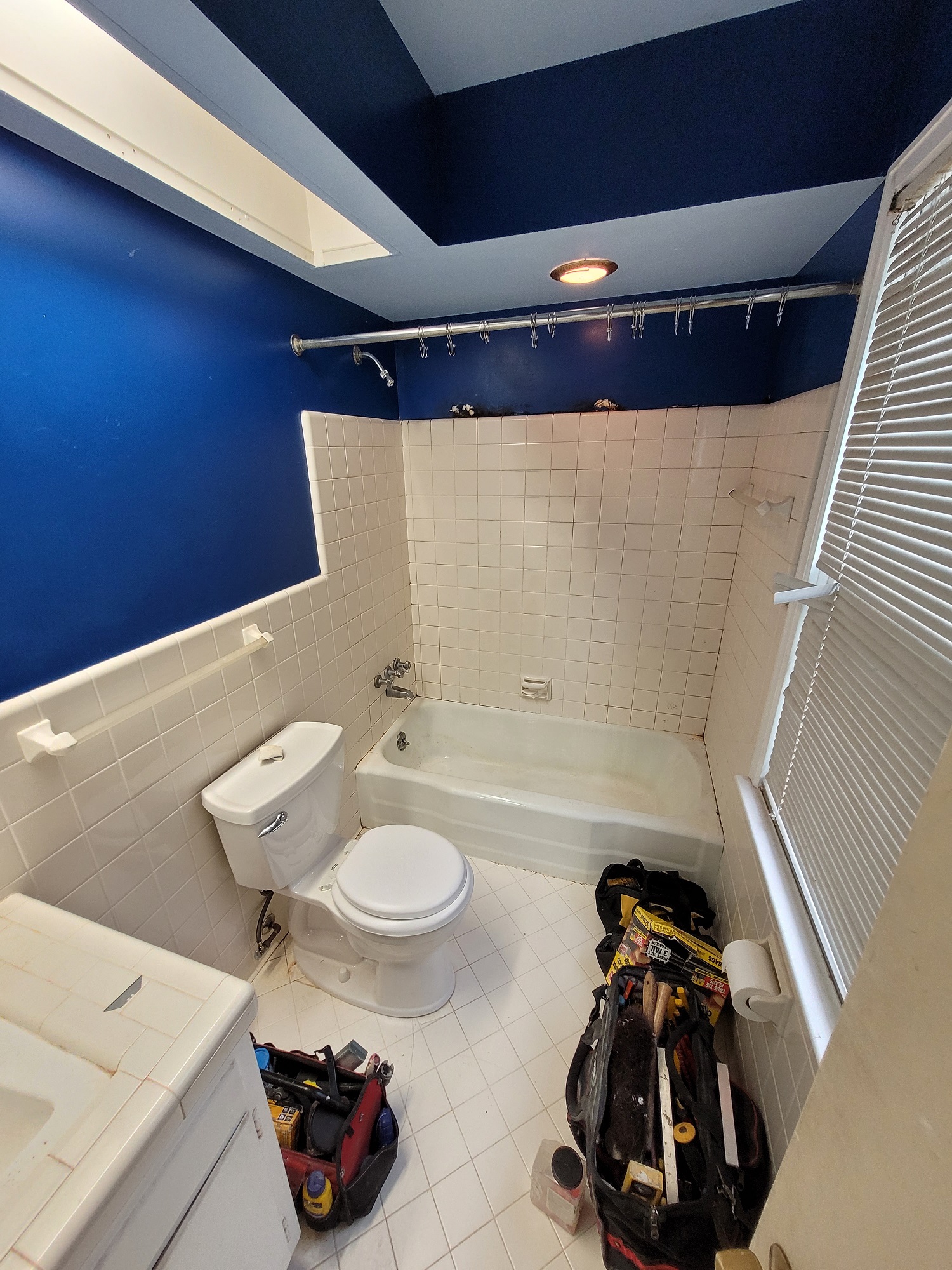 A+ Home Improvements is back at it again! We continue to provide elite renovation services, and this project fits that mold perfectly! Our next client contacted us about upgrading a dated bathroom which desperately needed some help. The failing tile and lack-luster fixtures dragged down the entire look of the master bathroom. Let’s take a look at what we walked into: