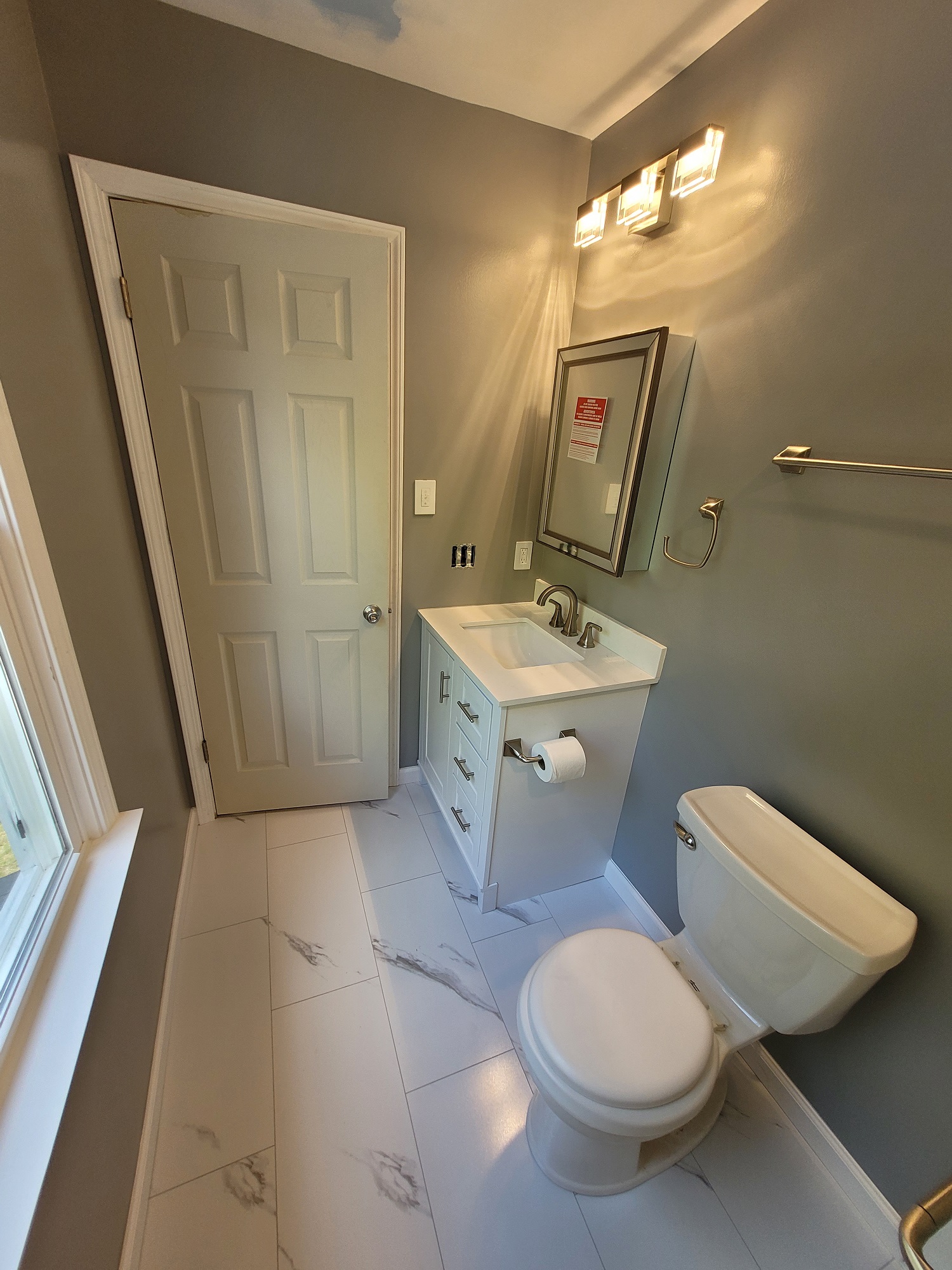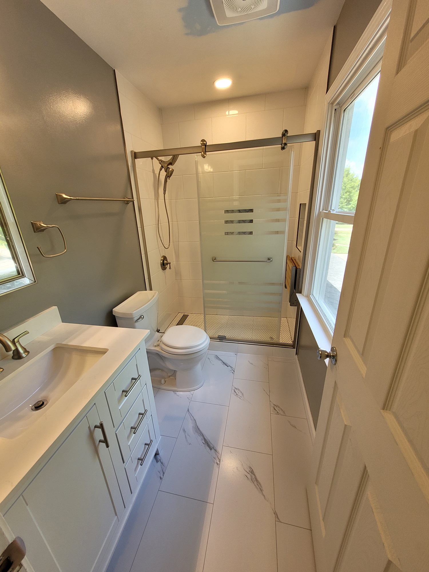 Look familiar? We constantly renovate bathroom spaces that initially have this tired look. Our clients had a good idea of the look they desired, but need a little direction with the selection process. We took their wish list into consideration, and formulated a game plan to deliver their perfect master bathroom. They wanted to run with a gray and white theme for a sleek, clean feel. While nothing extravagant was needed, a modern look remained a must! Our client believed that we hit the nail directly on the head: