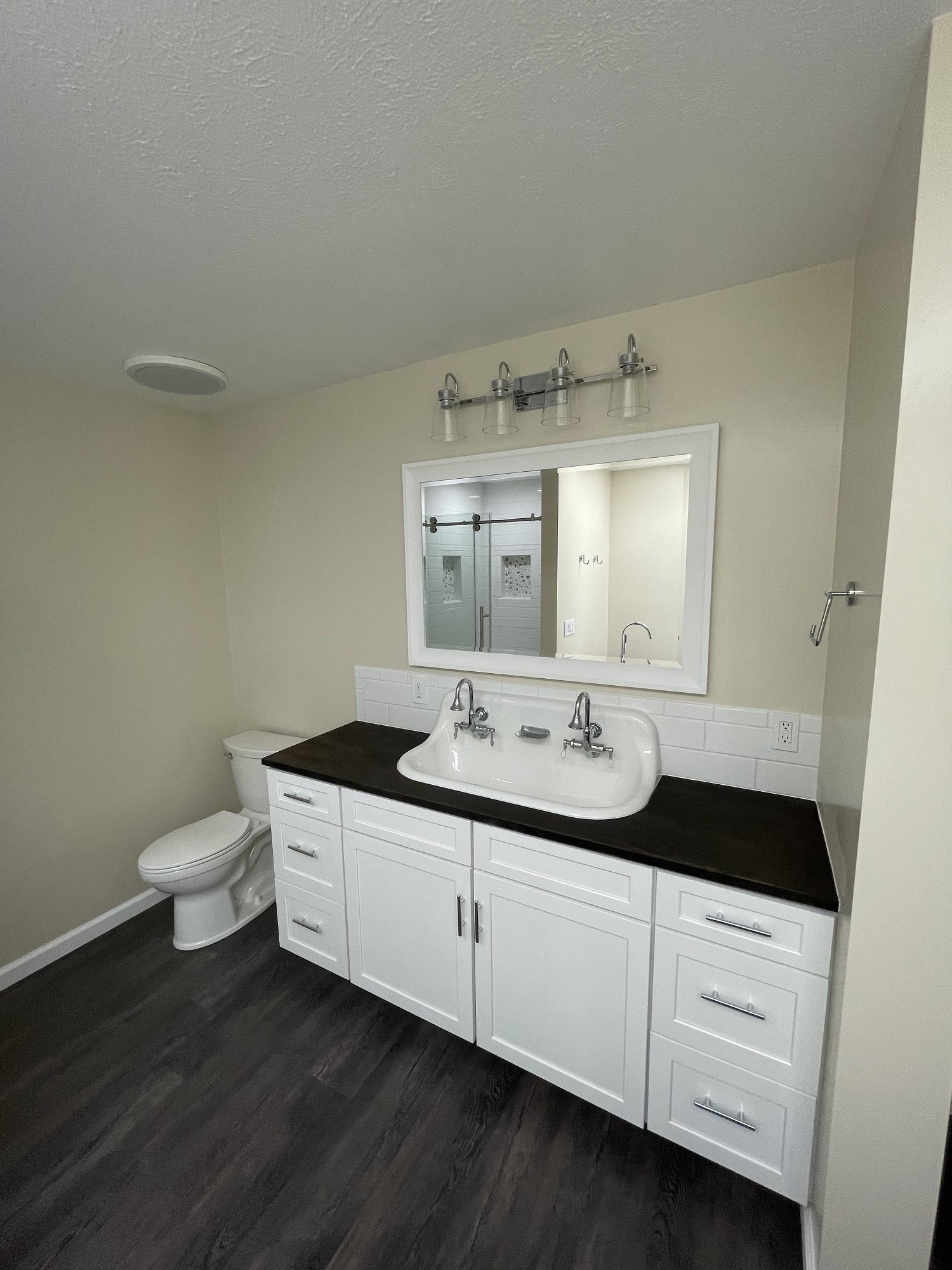 Major difference! Our client was absolutely thrilled with the end product. The old, confined bathroom now had an inviting, open feel. The custom vanity consisted of a cast iron wall mount sink with a custom water proof butcher block top that definitely provided a one-of-a-kind look. Do you want a whole new bathroom? Give A+ Home Improvements a call to get your project started today!